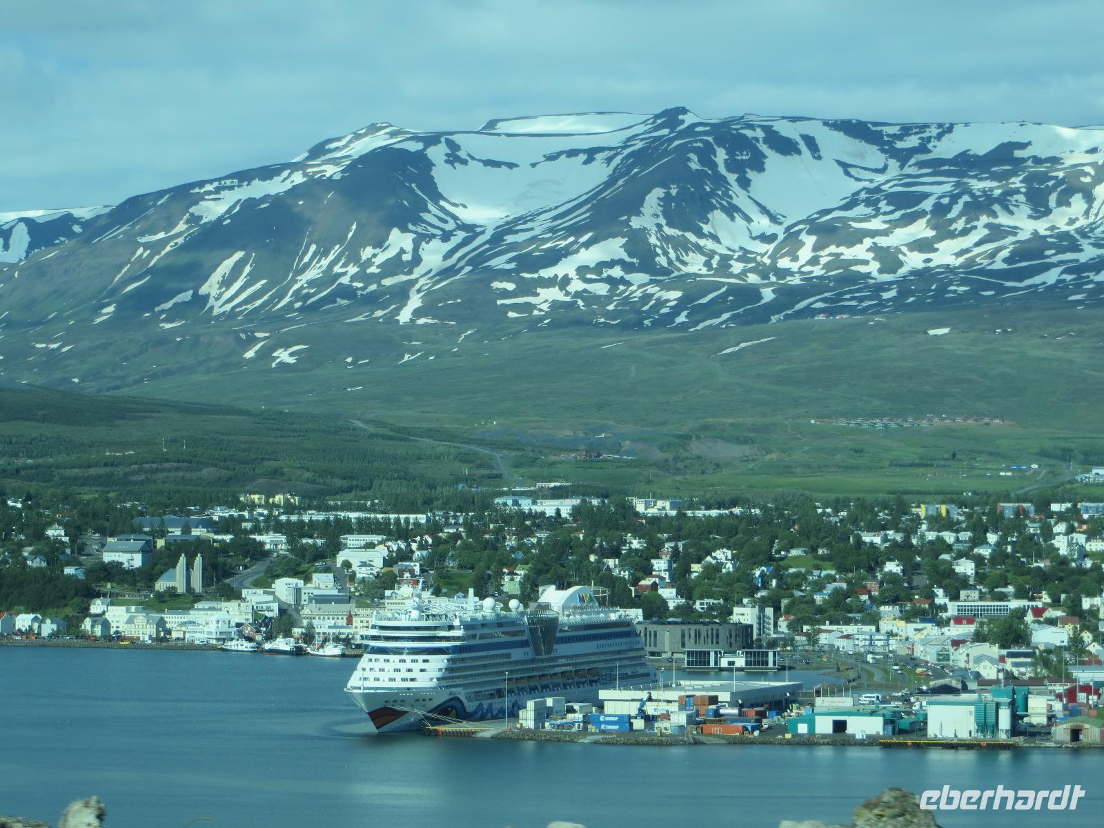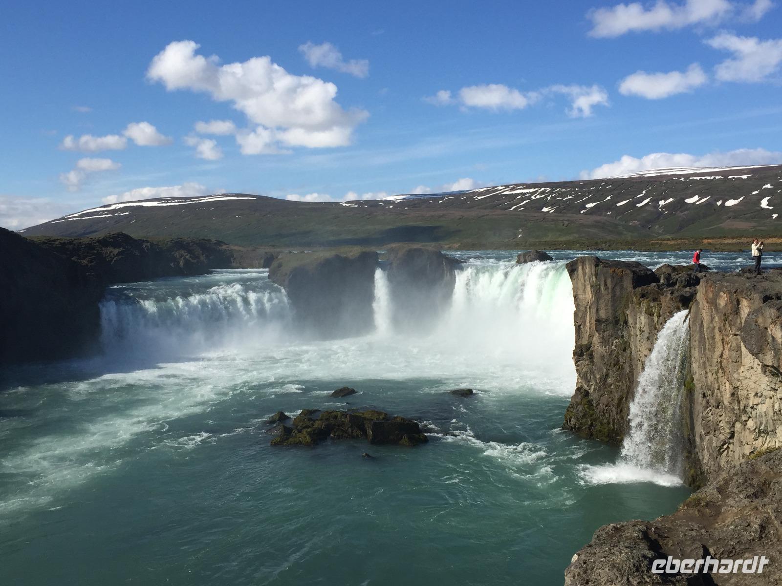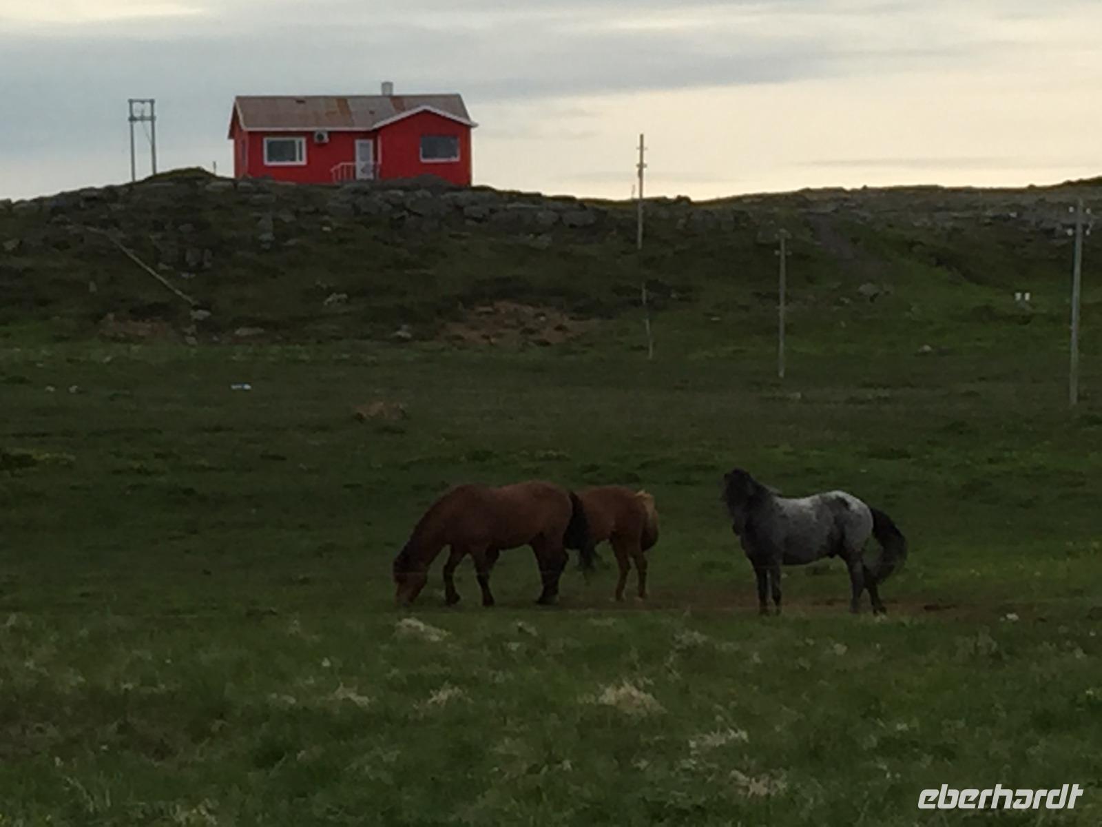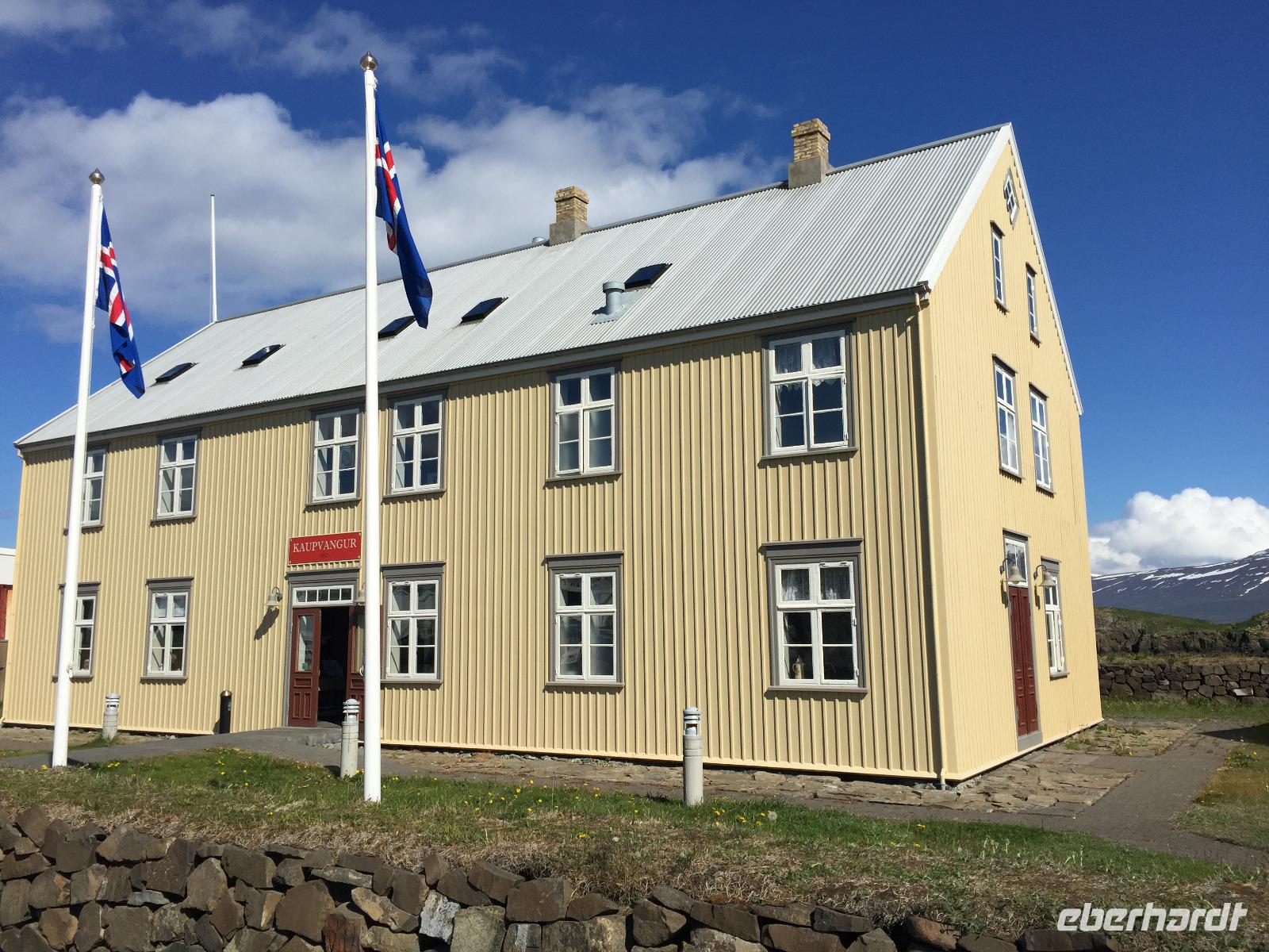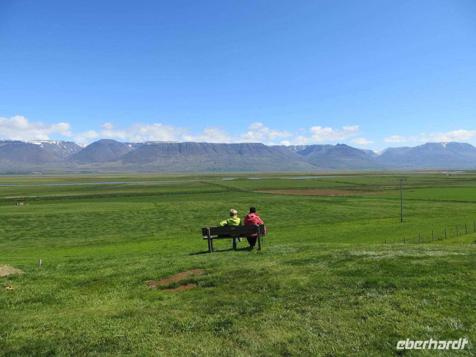 Nach etwas Aufregung, da am Morgen kurzzeitig der Strom und damit das warme Duschwasser ausgefallen war, verließen wir die Halbinsel Porsnes, umrundeten einen malerischen Fjord, sahen Schnee am Straßenrand und wie immer auch unzählige Wasserfälle, machten eine kleine Pause in Blönduos und erreichten gegen Mittag Skagafjördur. Hier besuchten wir Glaumbaer, einen eindrucksvollen Museumshof mit den typischen Grassodenhäusern aus dem 18. Jahrhundert. Das Bemerkenswerte hier ist, dass die 13 Räume der insgesamt 6 Häuser mit Gängen verbunden sind. Wir besichtigten alle Wohn- und Wirtschaftsräume ausführlich, auch die kleine Kirche und bestaunten die Bauweise der Häuser, deren Wandfüllungen und Dächer aus aufgestapelten Grassoden bestehen. Nach einem weiteren kurzen Stopp zum Mittagessen erreichten wir Akureyri, mit reichlich 18.000 Einwohnern immerhin die zweitgrößte Stadt Islands. Wir checkten im EDDA Hotel ein und begaben uns zu Fuß auf Stadterkundung. Einige von uns nutzten die Möglichkeit zum angebotenen Reitausflug mit den berühmten Islandpferden. Zum Abendessen genießen wir ein leckeres Buffet im Hotel.