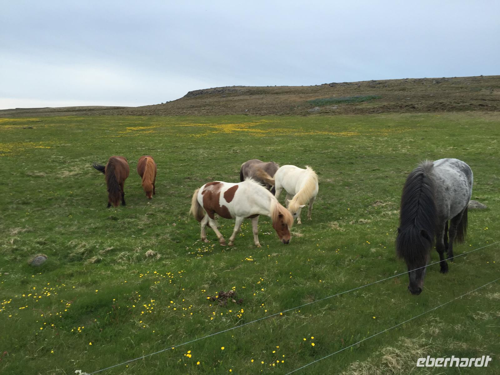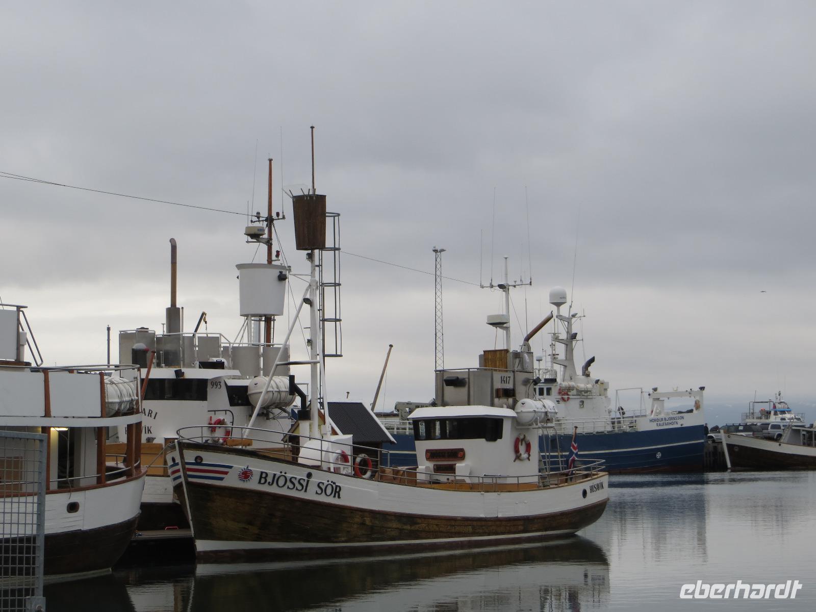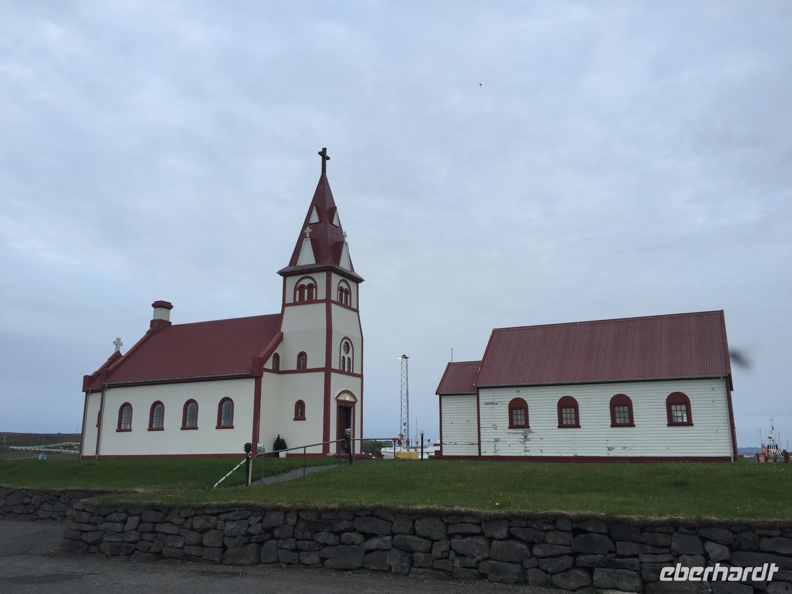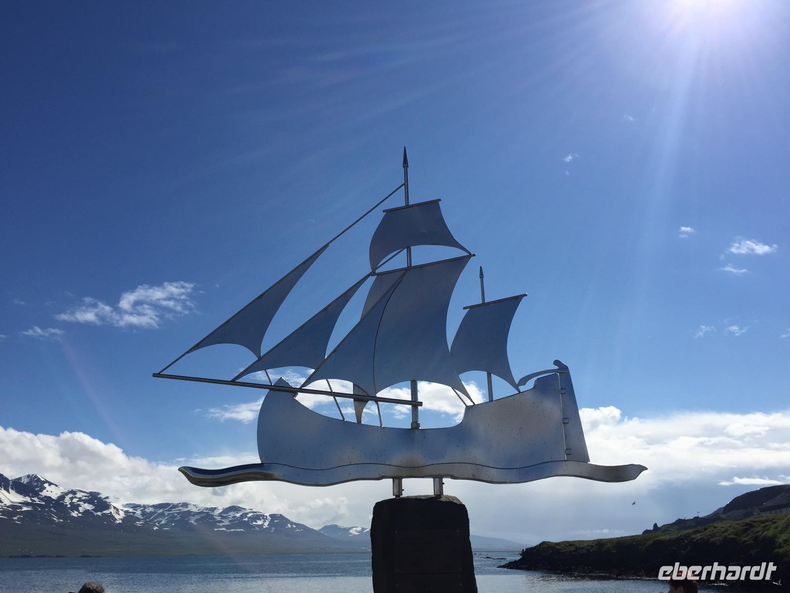Nach etwas Aufregung, da am Morgen kurzzeitig der Strom und damit das warme Duschwasser ausgefallen war, verließen wir die Halbinsel Porsnes, umrundeten einen malerischen Fjord, sahen Schnee am Straßenrand und wie immer auch unzählige Wasserfälle, machten eine kleine Pause in Blönduos und erreichten gegen Mittag Skagafjördur. Hier besuchten wir Glaumbaer, einen eindrucksvollen Museumshof mit den typischen Grassodenhäusern aus dem 18. Jahrhundert. Das Bemerkenswerte hier ist, dass die 13 Räume der insgesamt 6 Häuser mit Gängen verbunden sind. Wir besichtigten alle Wohn- und Wirtschaftsräume ausführlich, auch die kleine Kirche und bestaunten die Bauweise der Häuser, deren Wandfüllungen und Dächer aus aufgestapelten Grassoden bestehen. Nach einem weiteren kurzen Stopp zum Mittagessen erreichten wir Akureyri, mit reichlich 18.000 Einwohnern immerhin die zweitgrößte Stadt Islands. Wir checkten im EDDA Hotel ein und begaben uns zu Fuß auf Stadterkundung. Einige von uns nutzten die Möglichkeit zum angebotenen Reitausflug mit den berühmten Islandpferden. Zum Abendessen genießen wir ein leckeres Buffet im Hotel.