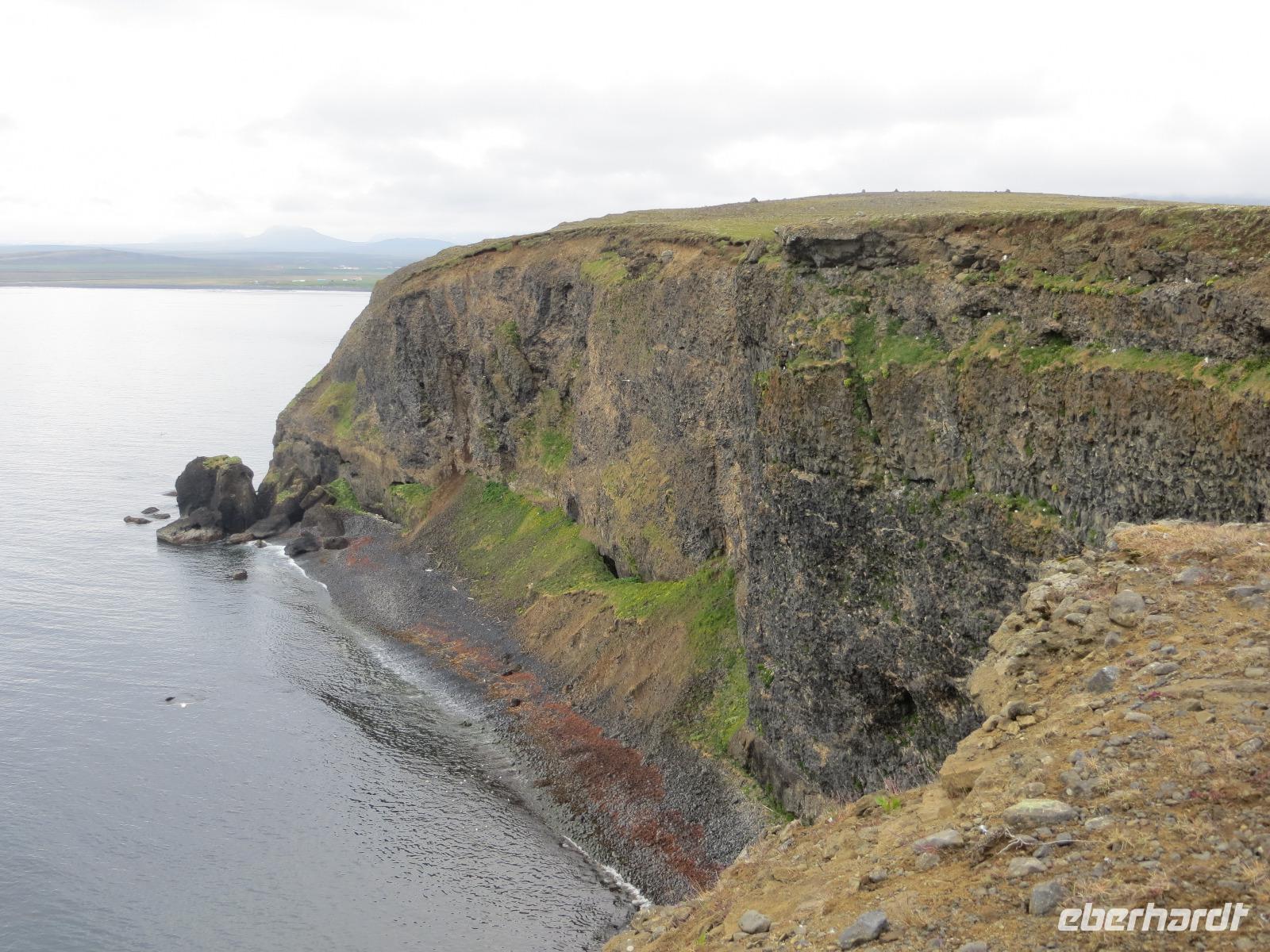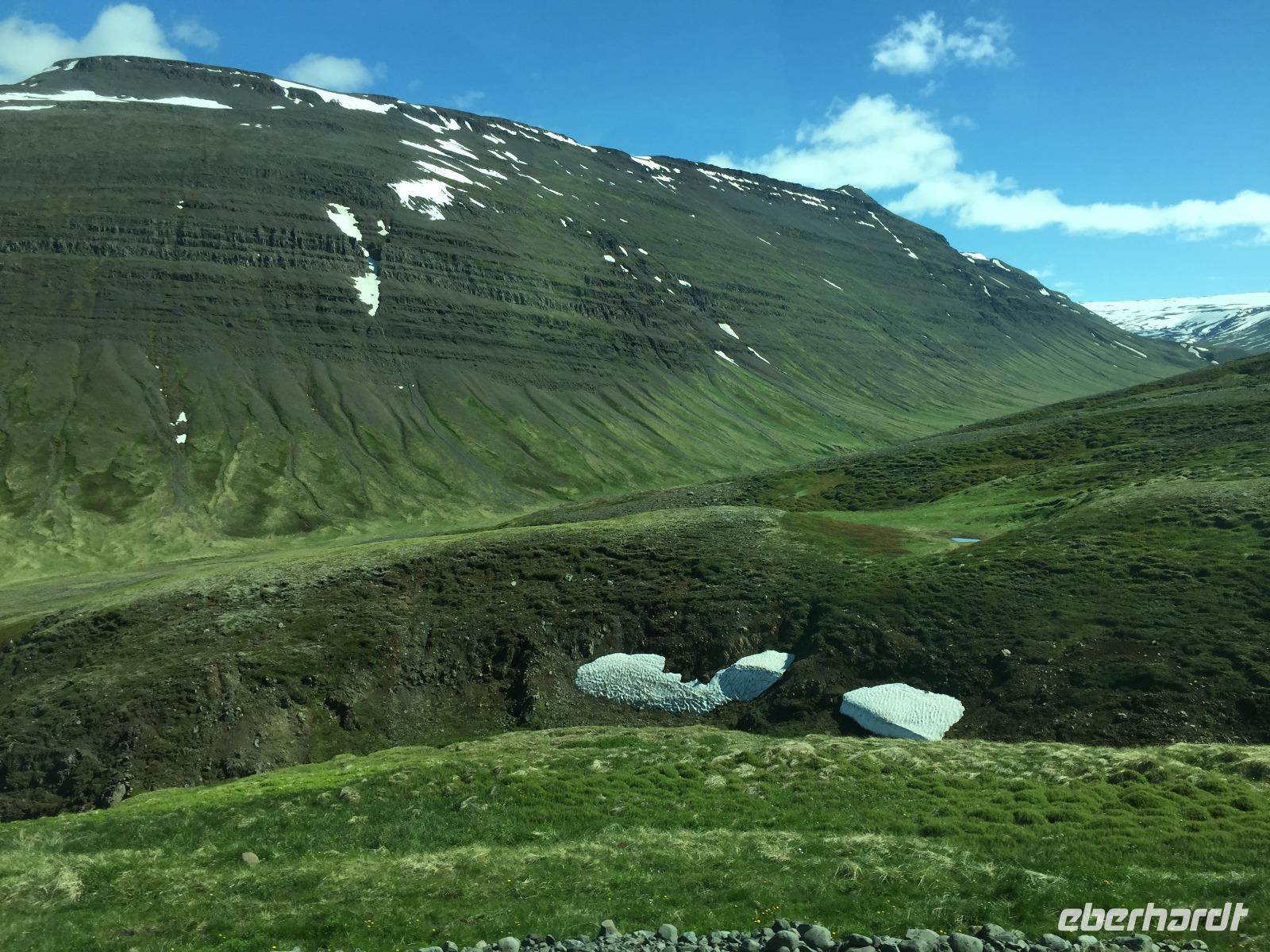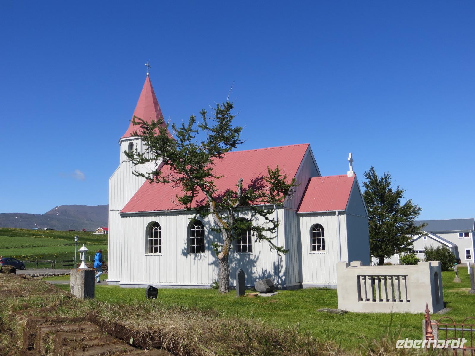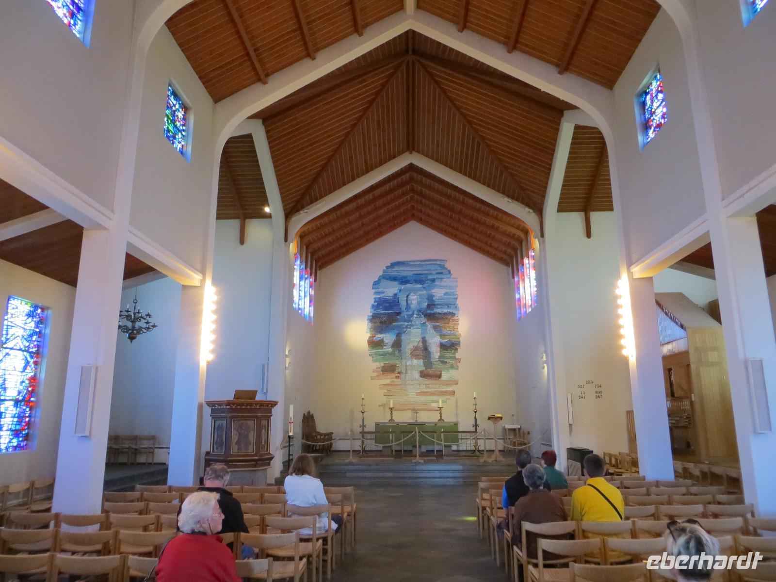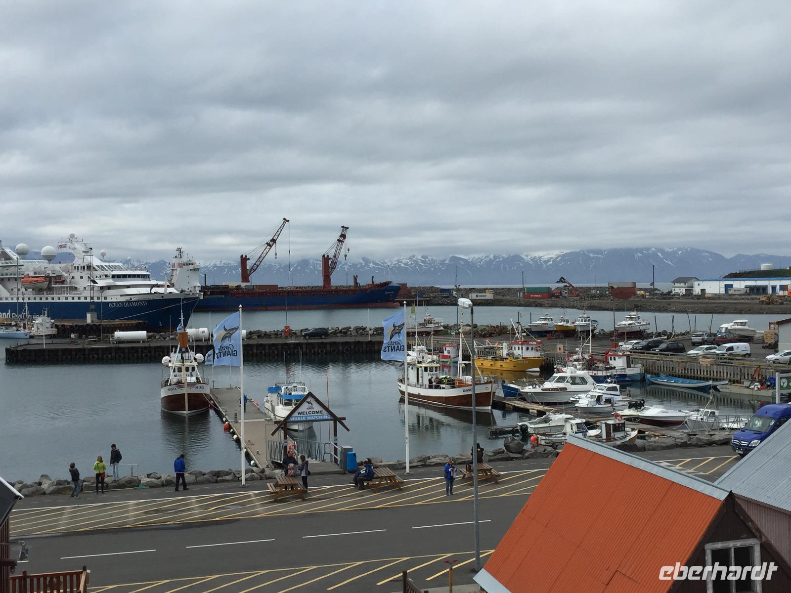 Nach etwas Aufregung, da am Morgen kurzzeitig der Strom und damit das warme Duschwasser ausgefallen war, verließen wir die Halbinsel Porsnes, umrundeten einen malerischen Fjord, sahen Schnee am Straßenrand und wie immer auch unzählige Wasserfälle, machten eine kleine Pause in Blönduos und erreichten gegen Mittag Skagafjördur. Hier besuchten wir Glaumbaer, einen eindrucksvollen Museumshof mit den typischen Grassodenhäusern aus dem 18. Jahrhundert. Das Bemerkenswerte hier ist, dass die 13 Räume der insgesamt 6 Häuser mit Gängen verbunden sind. Wir besichtigten alle Wohn- und Wirtschaftsräume ausführlich, auch die kleine Kirche und bestaunten die Bauweise der Häuser, deren Wandfüllungen und Dächer aus aufgestapelten Grassoden bestehen. Nach einem weiteren kurzen Stopp zum Mittagessen erreichten wir Akureyri, mit reichlich 18.000 Einwohnern immerhin die zweitgrößte Stadt Islands. Wir checkten im EDDA Hotel ein und begaben uns zu Fuß auf Stadterkundung. Einige von uns nutzten die Möglichkeit zum angebotenen Reitausflug mit den berühmten Islandpferden. Zum Abendessen genießen wir ein leckeres Buffet im Hotel.