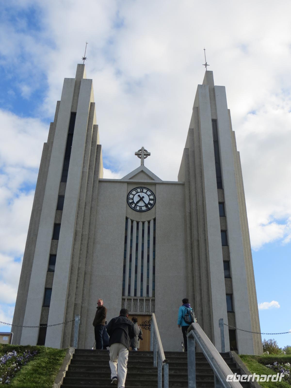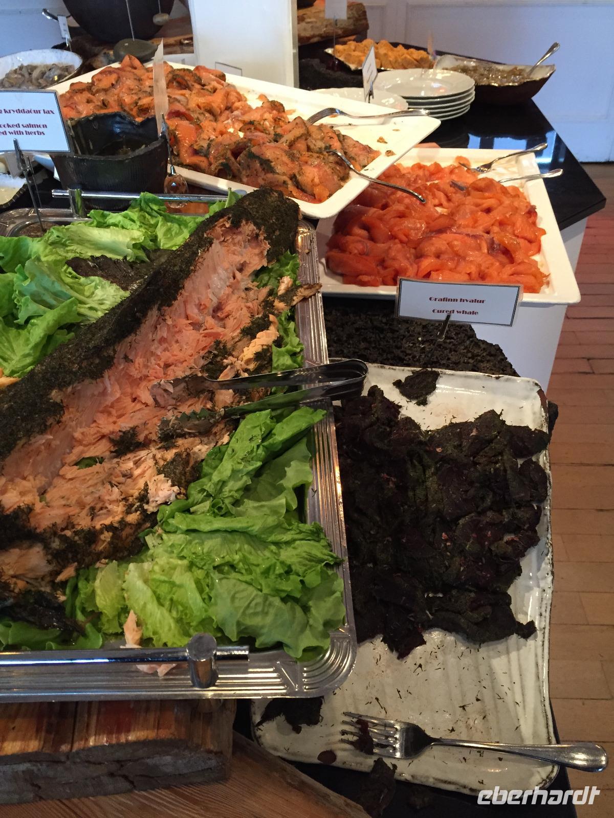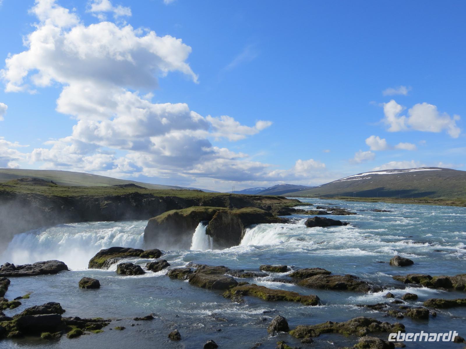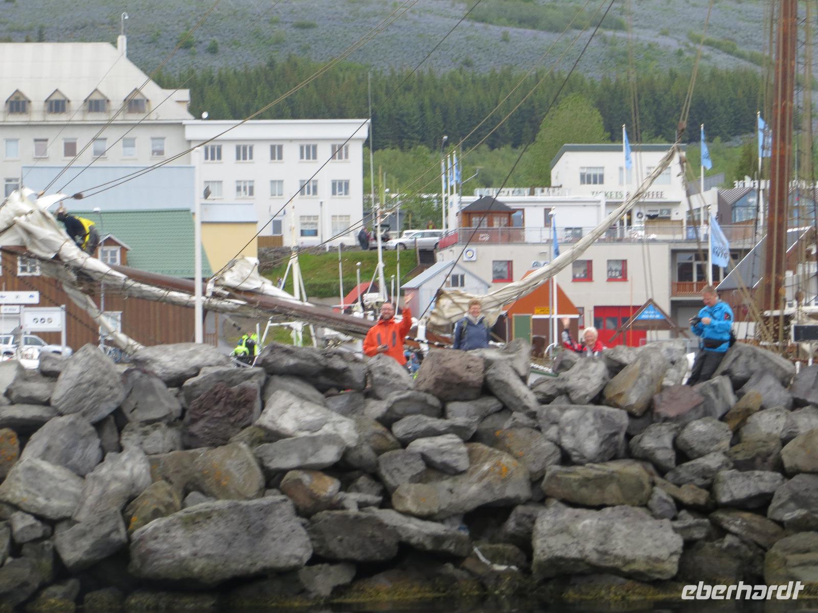 Nach etwas Aufregung, da am Morgen kurzzeitig der Strom und damit das warme Duschwasser ausgefallen war, verließen wir die Halbinsel Porsnes, umrundeten einen malerischen Fjord, sahen Schnee am Straßenrand und wie immer auch unzählige Wasserfälle, machten eine kleine Pause in Blönduos und erreichten gegen Mittag Skagafjördur. Hier besuchten wir Glaumbaer, einen eindrucksvollen Museumshof mit den typischen Grassodenhäusern aus dem 18. Jahrhundert. Das Bemerkenswerte hier ist, dass die 13 Räume der insgesamt 6 Häuser mit Gängen verbunden sind. Wir besichtigten alle Wohn- und Wirtschaftsräume ausführlich, auch die kleine Kirche und bestaunten die Bauweise der Häuser, deren Wandfüllungen und Dächer aus aufgestapelten Grassoden bestehen. Nach einem weiteren kurzen Stopp zum Mittagessen erreichten wir Akureyri, mit reichlich 18.000 Einwohnern immerhin die zweitgrößte Stadt Islands. Wir checkten im EDDA Hotel ein und begaben uns zu Fuß auf Stadterkundung. Einige von uns nutzten die Möglichkeit zum angebotenen Reitausflug mit den berühmten Islandpferden. Zum Abendessen genießen wir ein leckeres Buffet im Hotel.