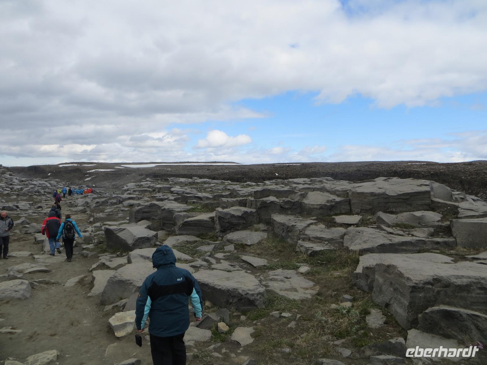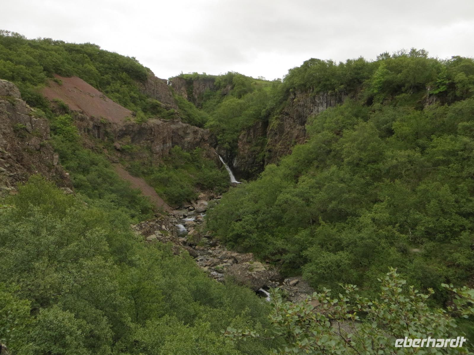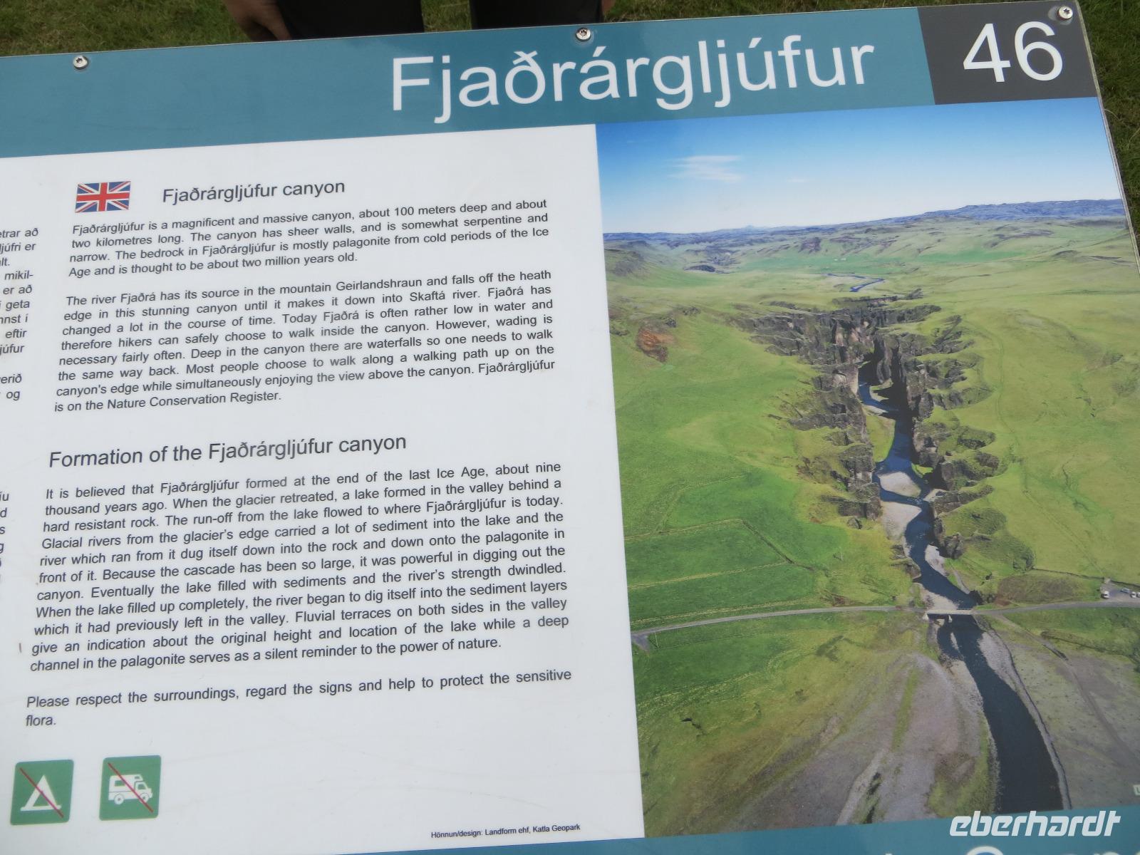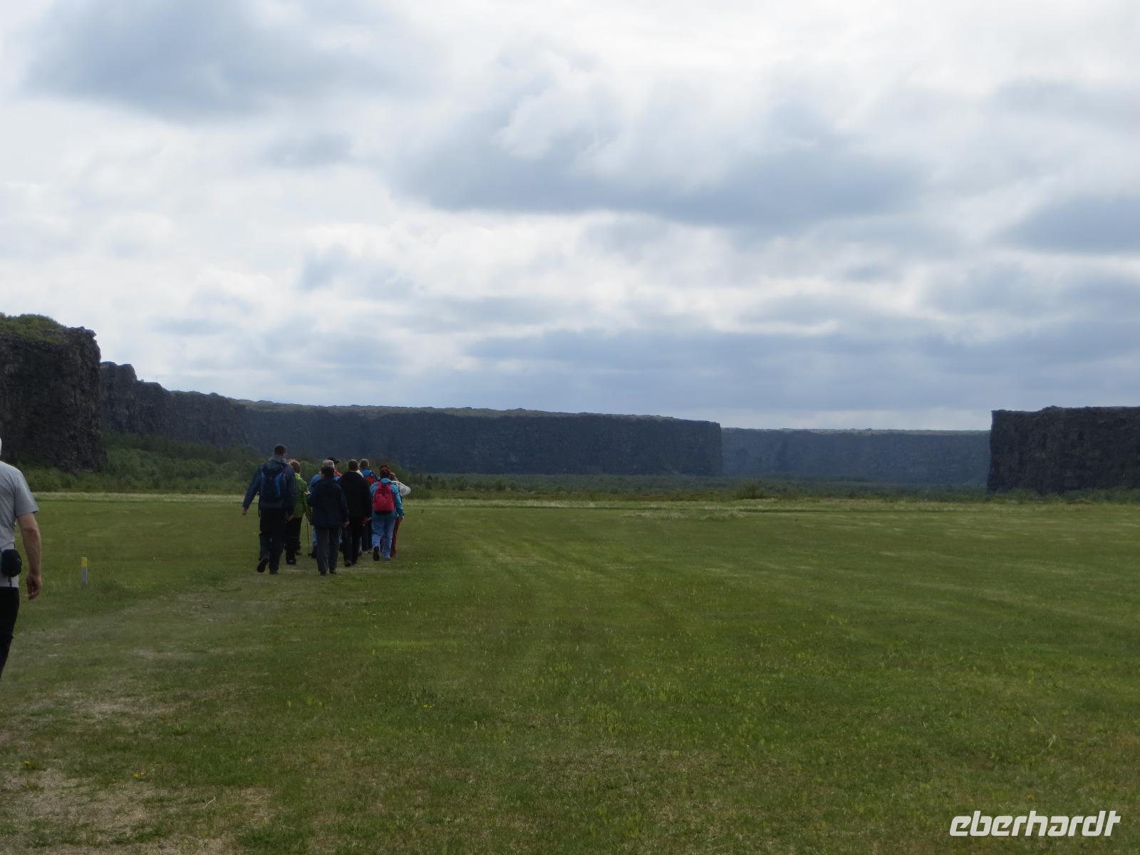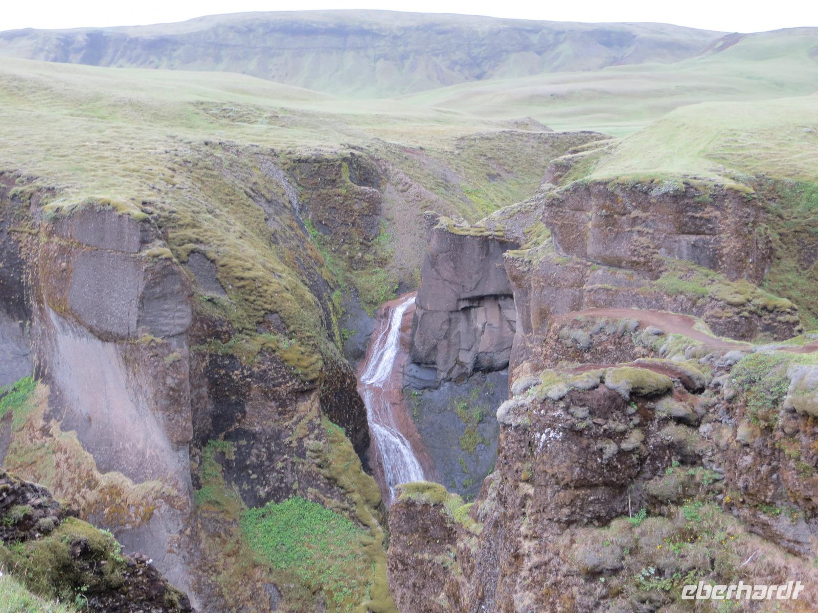 Nach dem Frühstück hält der Sturm sich noch in Grenzen, so fahren wir zum Ausgangspunkt unserer kleinen Wanderung im Katla Geopark. Wir wandern oberhalb der Schlucht Fjadrargljufur und genießen immer wieder die Blicke hinab.
