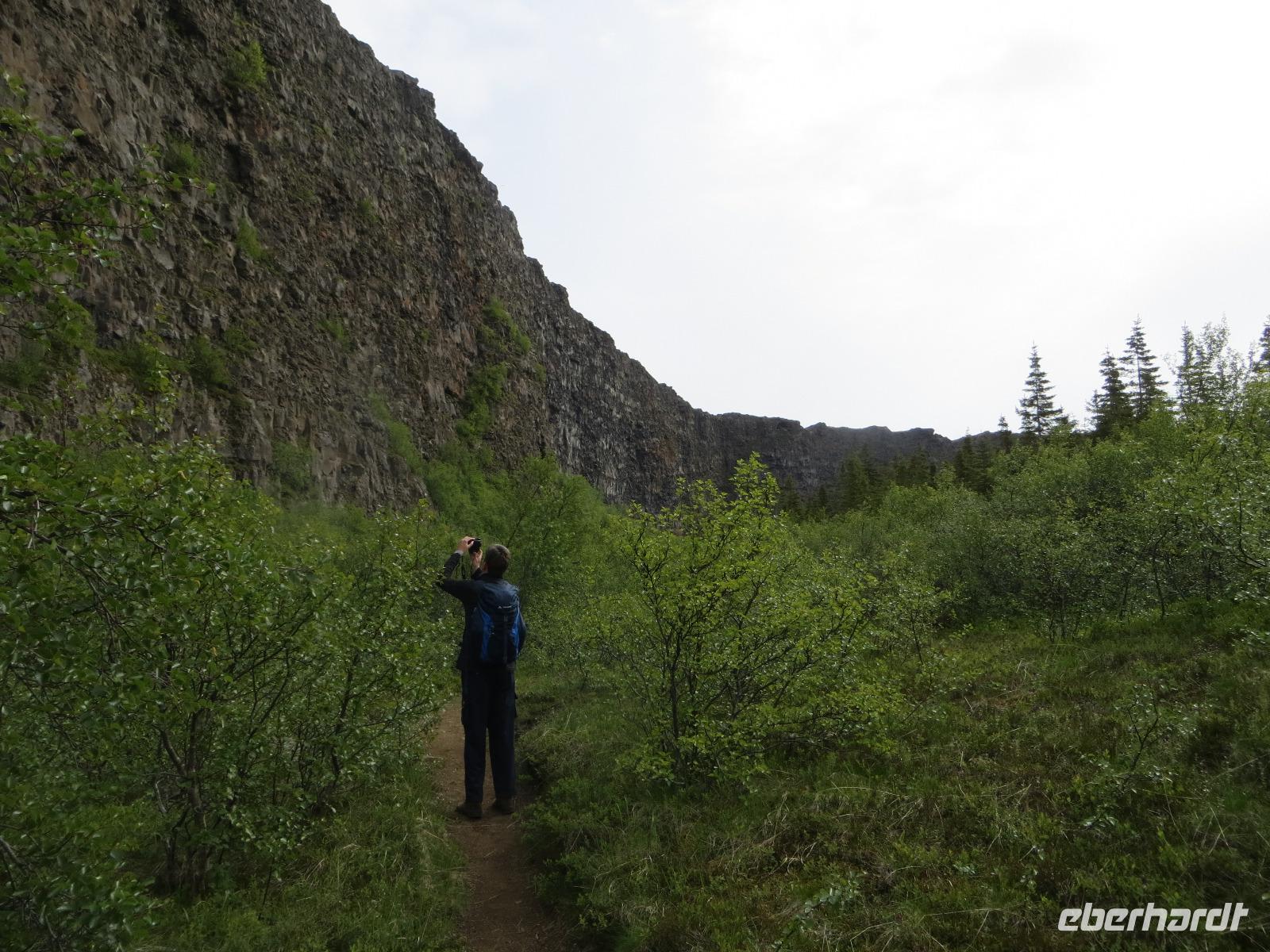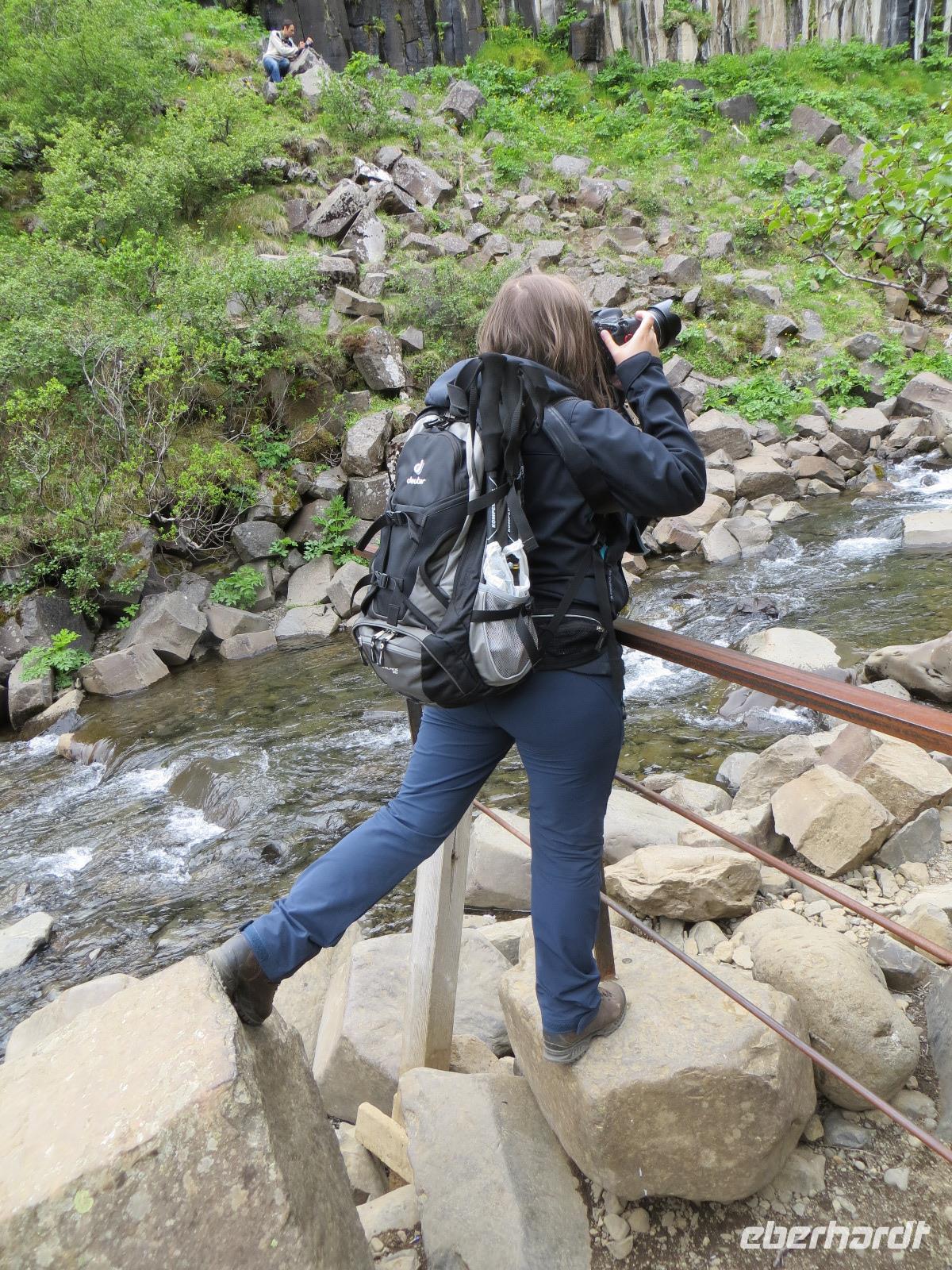 Zunächst fahren wir von Egilsstaðir am nördlichen Ufer des Sees Lagarfjlót zu dem Wasserfall Hengifoss. Unsere heutige Wanderung verläuft über drei Etappen. Zunächst erreichen wir den Wasserfall Litlanesfoss, wo die Wassermassen, eingerahmt von imposanten Basaltsälen, in die Tiefe stürzen. Weiter am Aufstieg verbleibt ein Teil der Gruppe am nächsten Aussichtspunkt, während die anderen weiter zum Hengifoss aufsteigen.