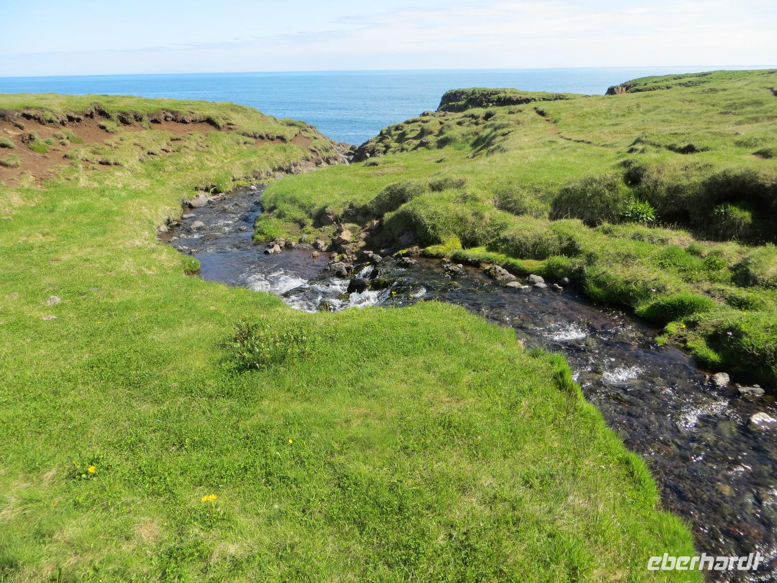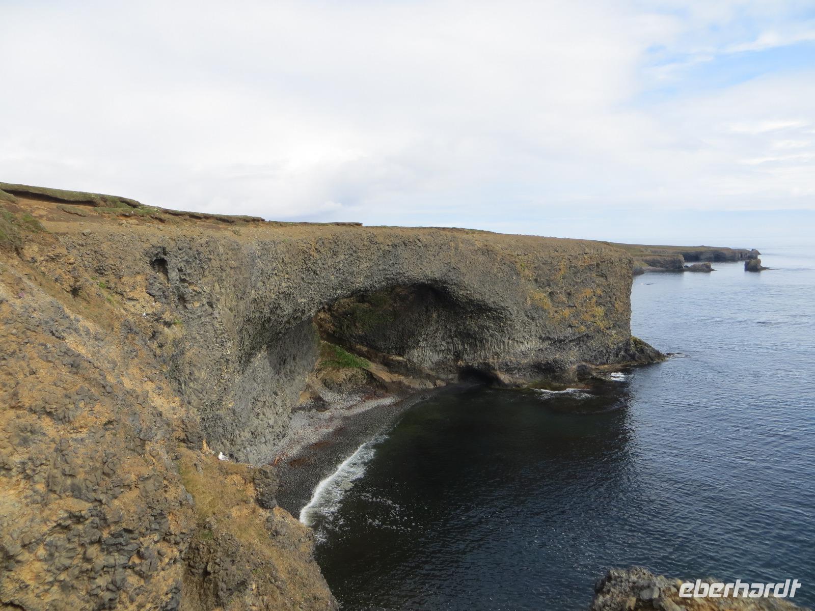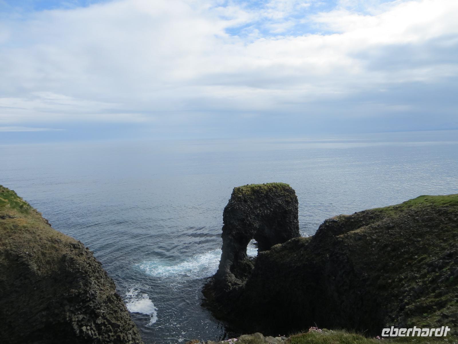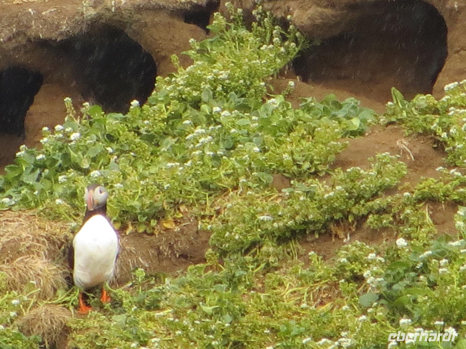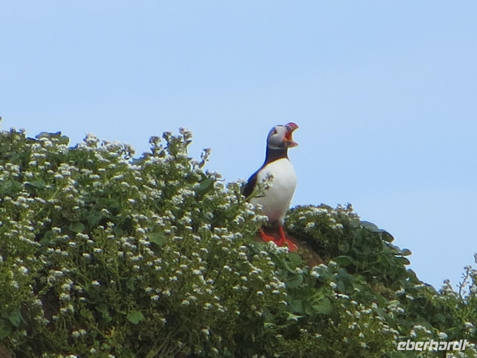 Nach dem Frühstück (liebe Mitreisende - Ihr erinnert Euch?) verlassen wir „unser Ende Islands" und gelangen nach Raudanes. Hier wandern wir entlang der Küste, die geprägt ist durch zahlreiche vulkanische Basaltsäulen, vom Meer ausgewaschene Höhlen und Torbögen. Unterwegs ist es soweit: eine ganze Kolonie der possierlichen Papageientaucher wartet auf uns auf den Klippen vor ihren Erdhöhlen. Harald robbt sich sogar bis auf einen Meter für DAS Foto an eines der Puffins ran. Wir machen unzählige Fotos und sind glücklich. Auf unserer weiteren Wanderung haben wir dann noch einmal das Glück und treffen eine weitere Kolonie an. Wir wandern mit langen Fotostopps fast 3,5 Stunden und genießen die skurillen Felsformationen und die Halbinsel Langanes. Anschließend fahren wir weiter und bis zu unseren nächsten Stopp in Vopnafjördur, wo wir in der Sonne in einem alten, aber wunderschön restaurierten, Kaufmannshaus Kaffeepause machen. Am späten Nachmittag erreichen wir unser Tagesziel Egilsstadir im Osten von Island. Wir übernachten heute im „Guesthouse Egilsstadir" direkt am See, das sehr geschmack- und liebevoll eingerichtet und dekoriert ist. Ein sehr leckeres Abendessen beendet unseren erlebnisreichen Tag.