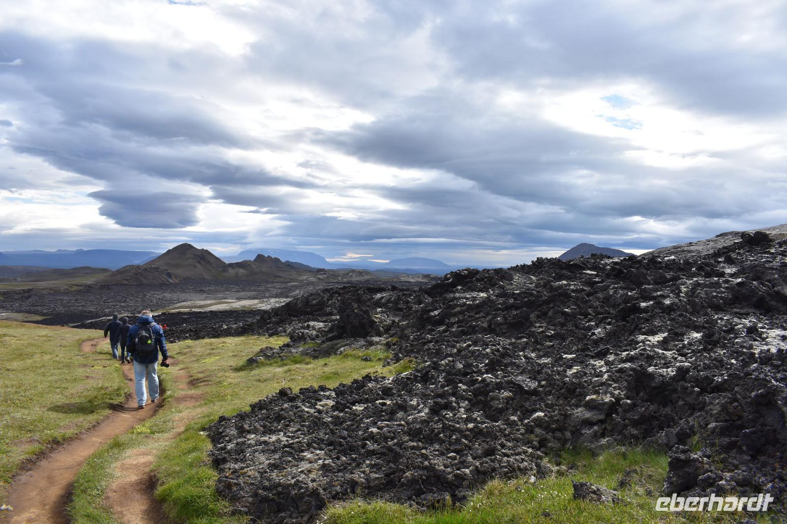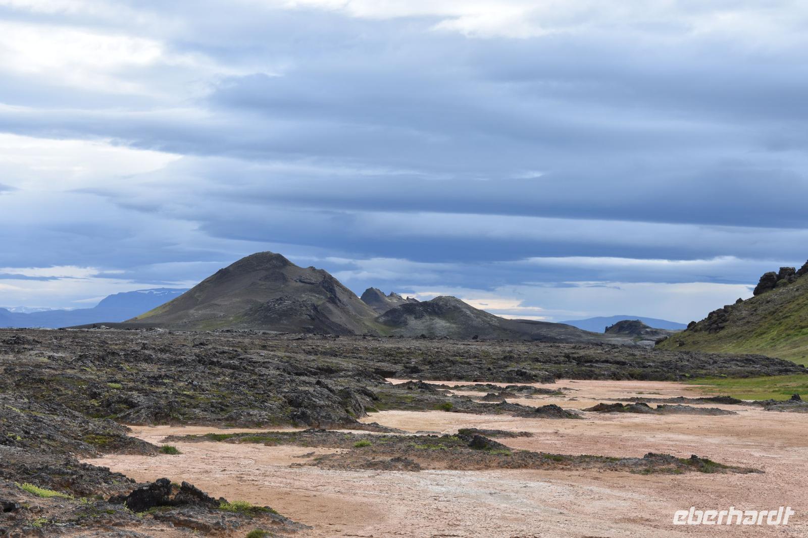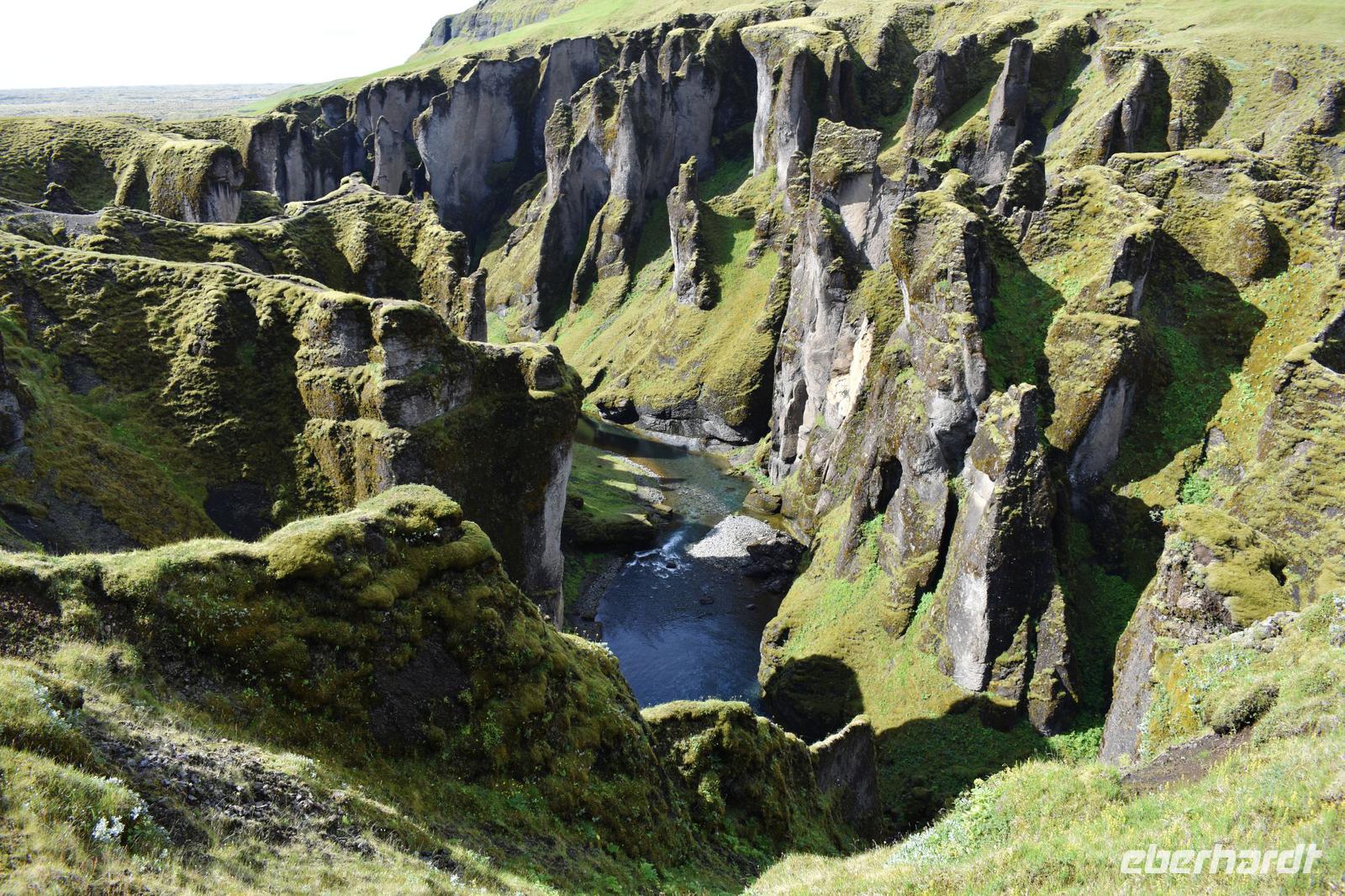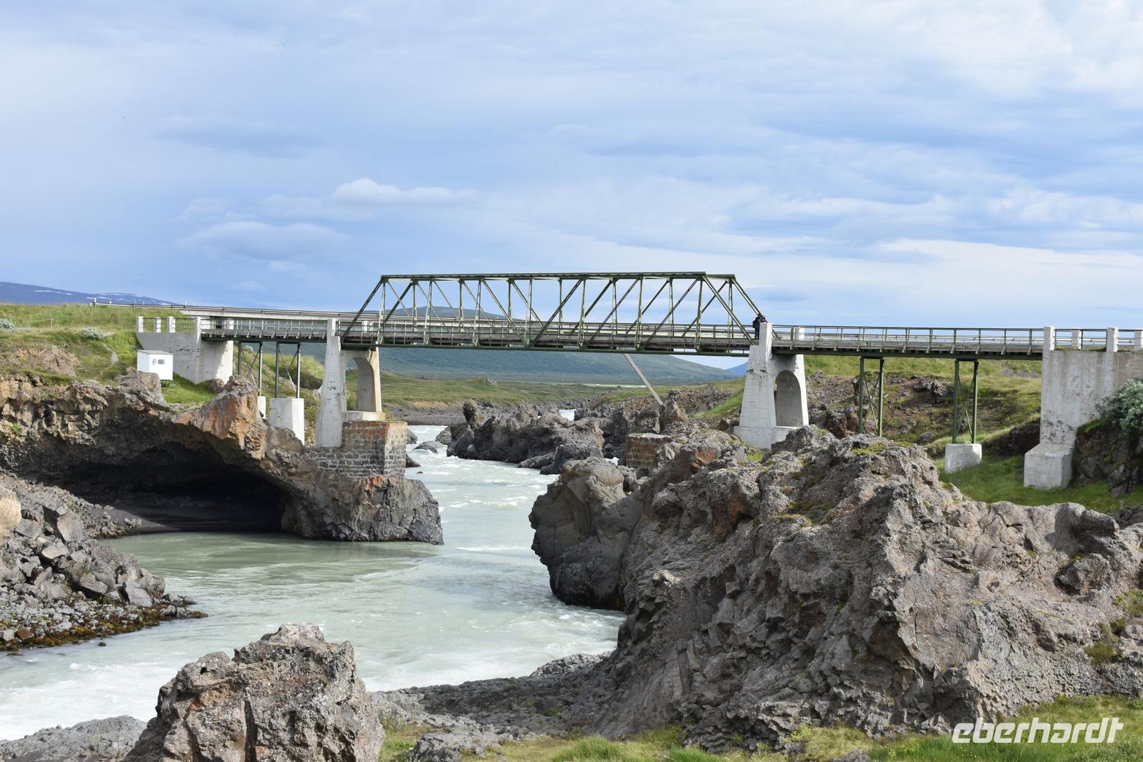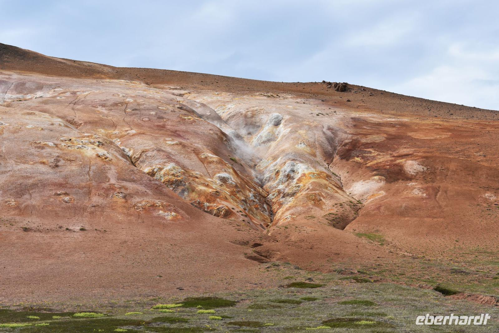 Wir verließen dieses Naturspektakel und machten einen kurzen Abstecher über unwegsames Gelände zum Hafragilsfoss. Aber die Überfahrt über den spitzen, buckeligen Berg lohnte sich. So hatten wir noch einen grandiosen Blick in den Canyon und konnten die sonderbaren violetten Vulkangesteine beobachten.