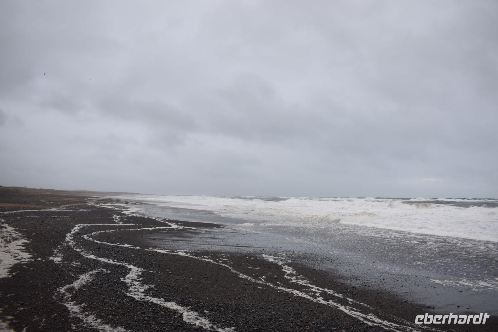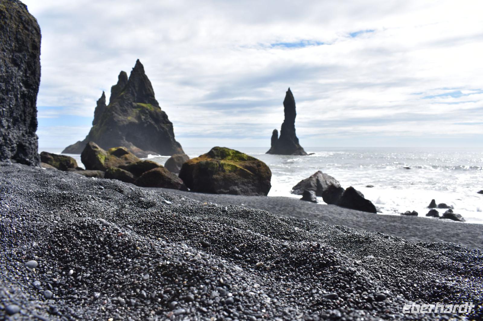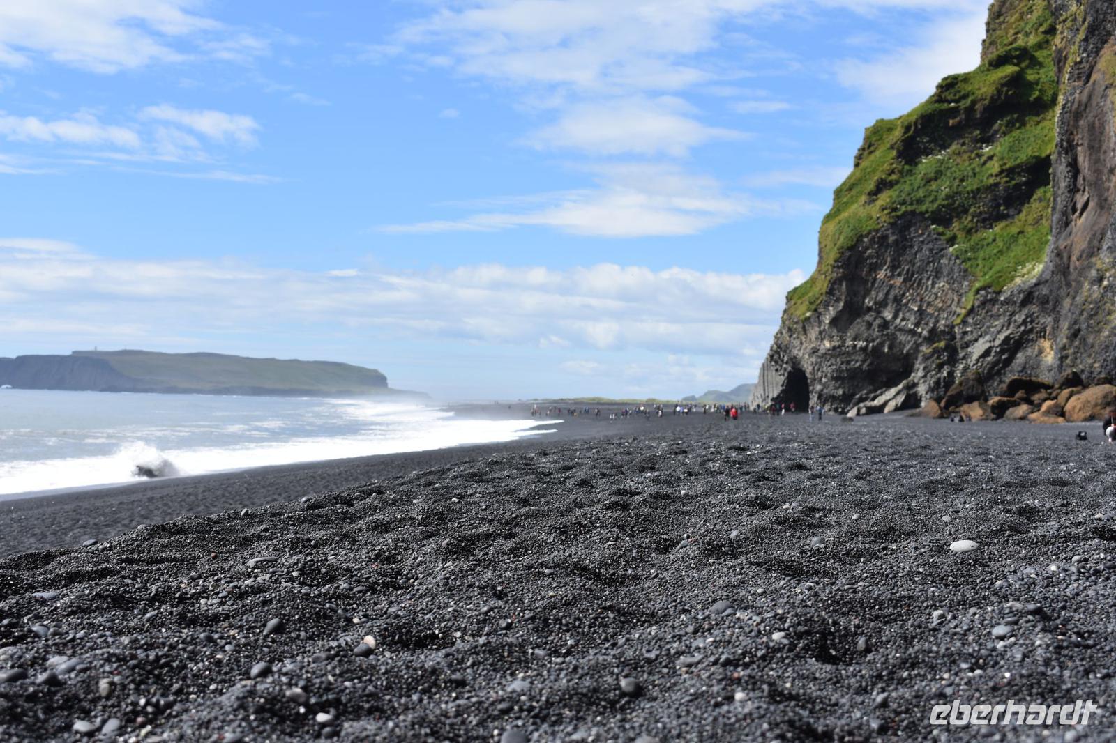 In Vík konnten wir den einzigartigen Strand genießen. Der Strand bestand aus groben aber extrem glatt und rund geschliffenen schwarzem Kies. Hohe Klippen mit Basaltsäulen geformt und riesigen Höhlen konnten wir dort auffinden.