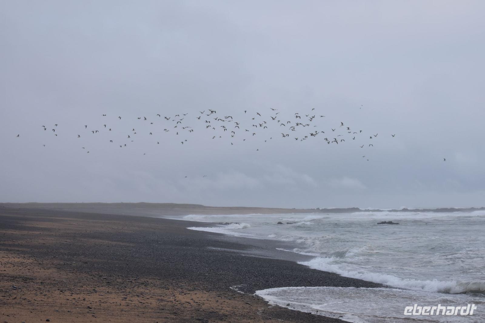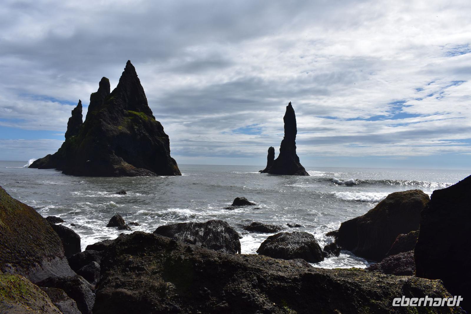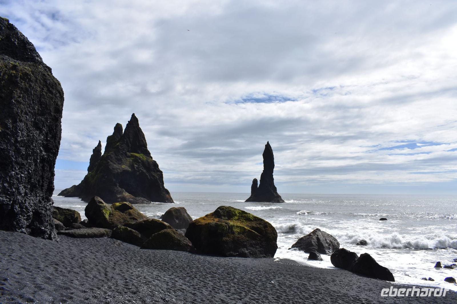 In Vík konnten wir den einzigartigen Strand genießen. Der Strand bestand aus groben aber extrem glatt und rund geschliffenen schwarzem Kies. Hohe Klippen mit Basaltsäulen geformt und riesigen Höhlen konnten wir dort auffinden.