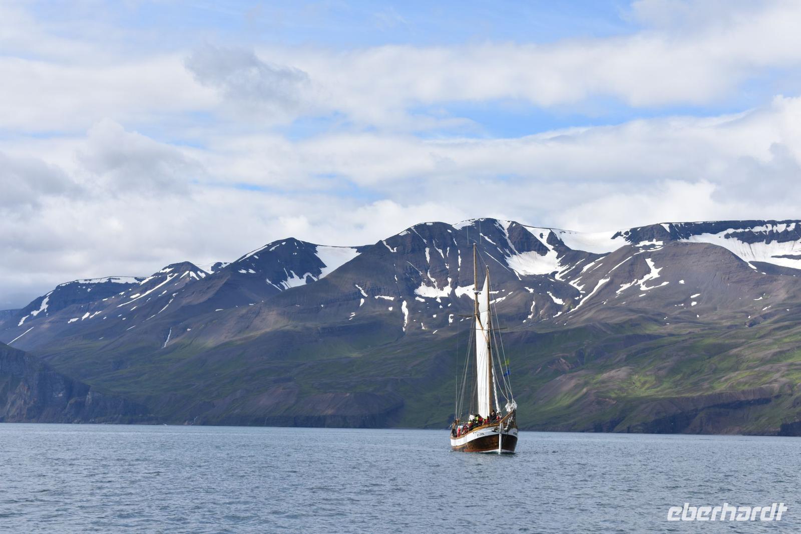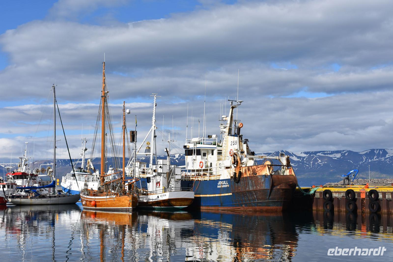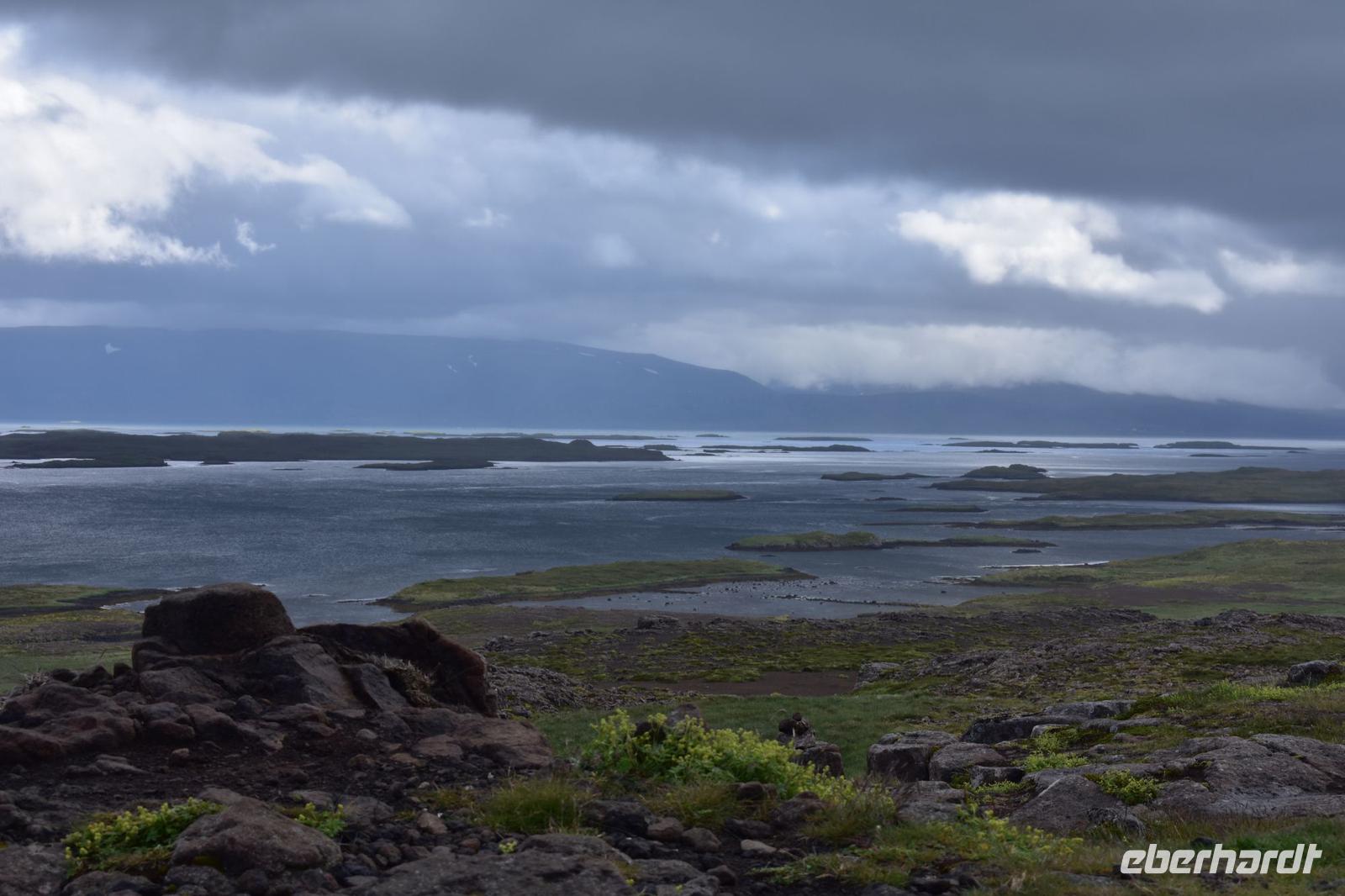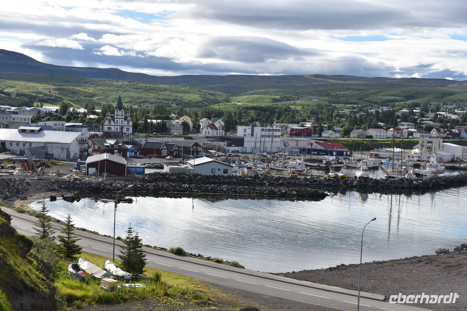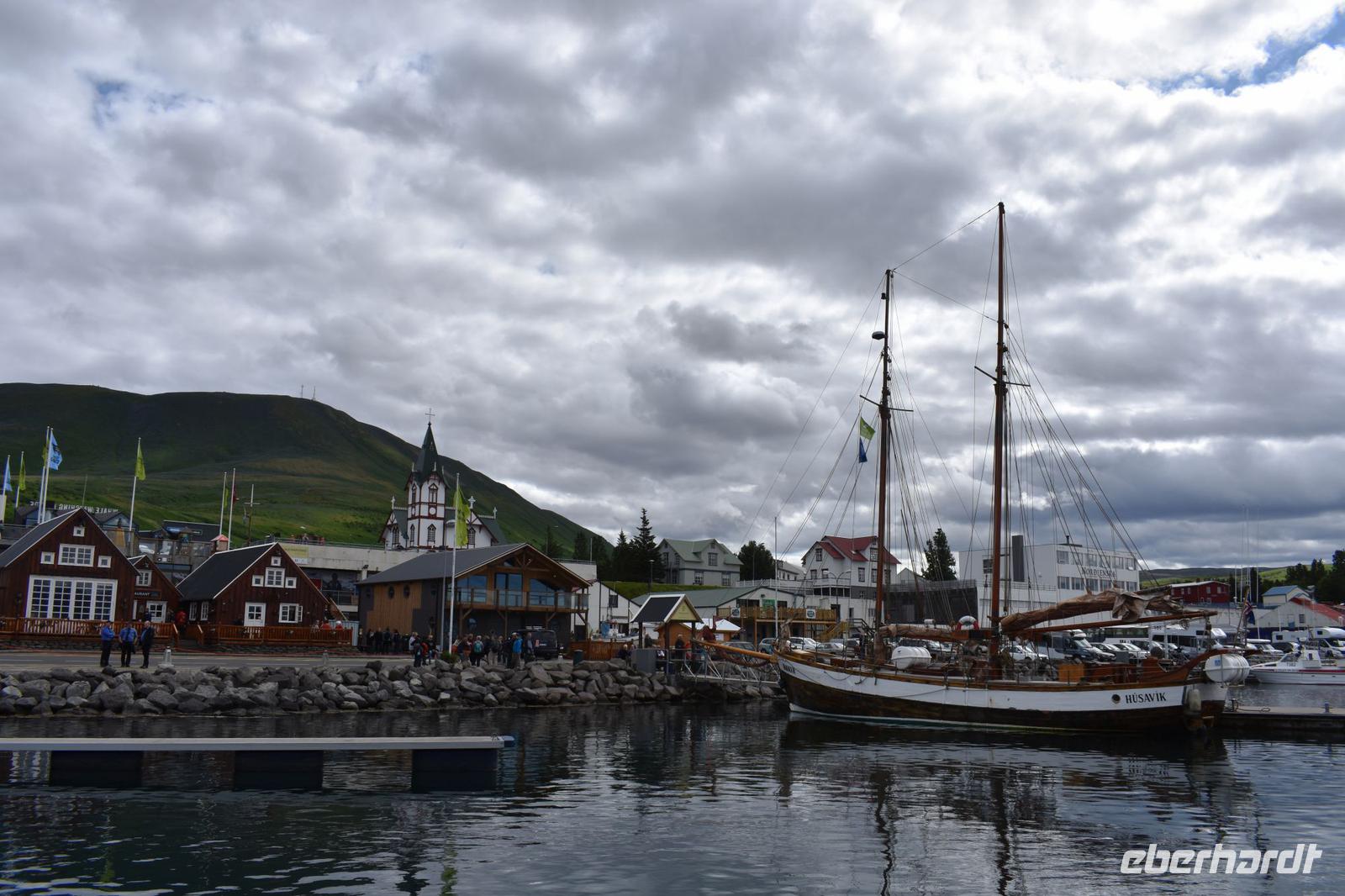 Zum Abschluss dieses Tages nahmen wir dann ein wärmendes Bad im Freibad Jardbodin. Bei angenehmen 38 Gard konnte man es gut aushalten, auch wenn die Außentemperatur nur rund 12 Grad hatte und ein frischer Wind wehte. Die Aussicht aus dem Pool ebenfalls genial! Weite Sicht auf die Lavafelder, Berge, Krater und den Mývatn-See. Von dort ging es dann in das rund 60 Kilometer entfernte Húsavík auf der Nordseite der Insel.