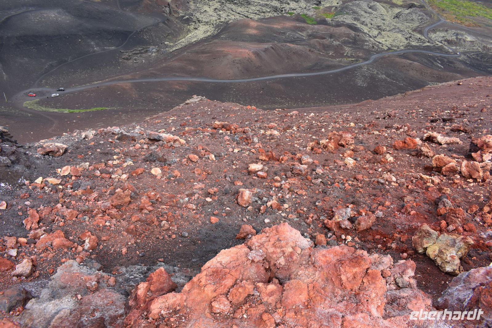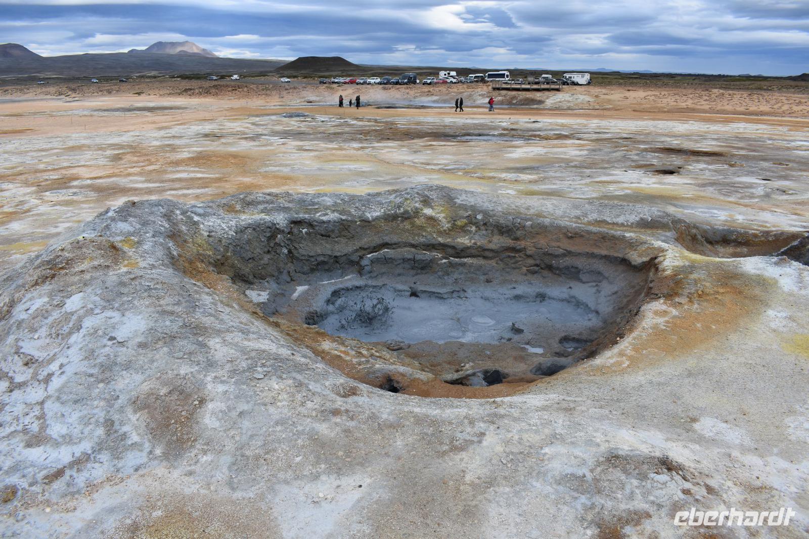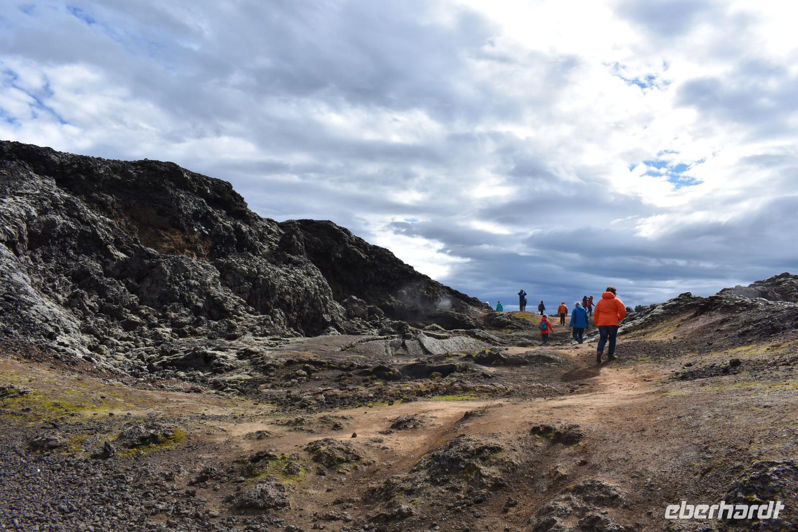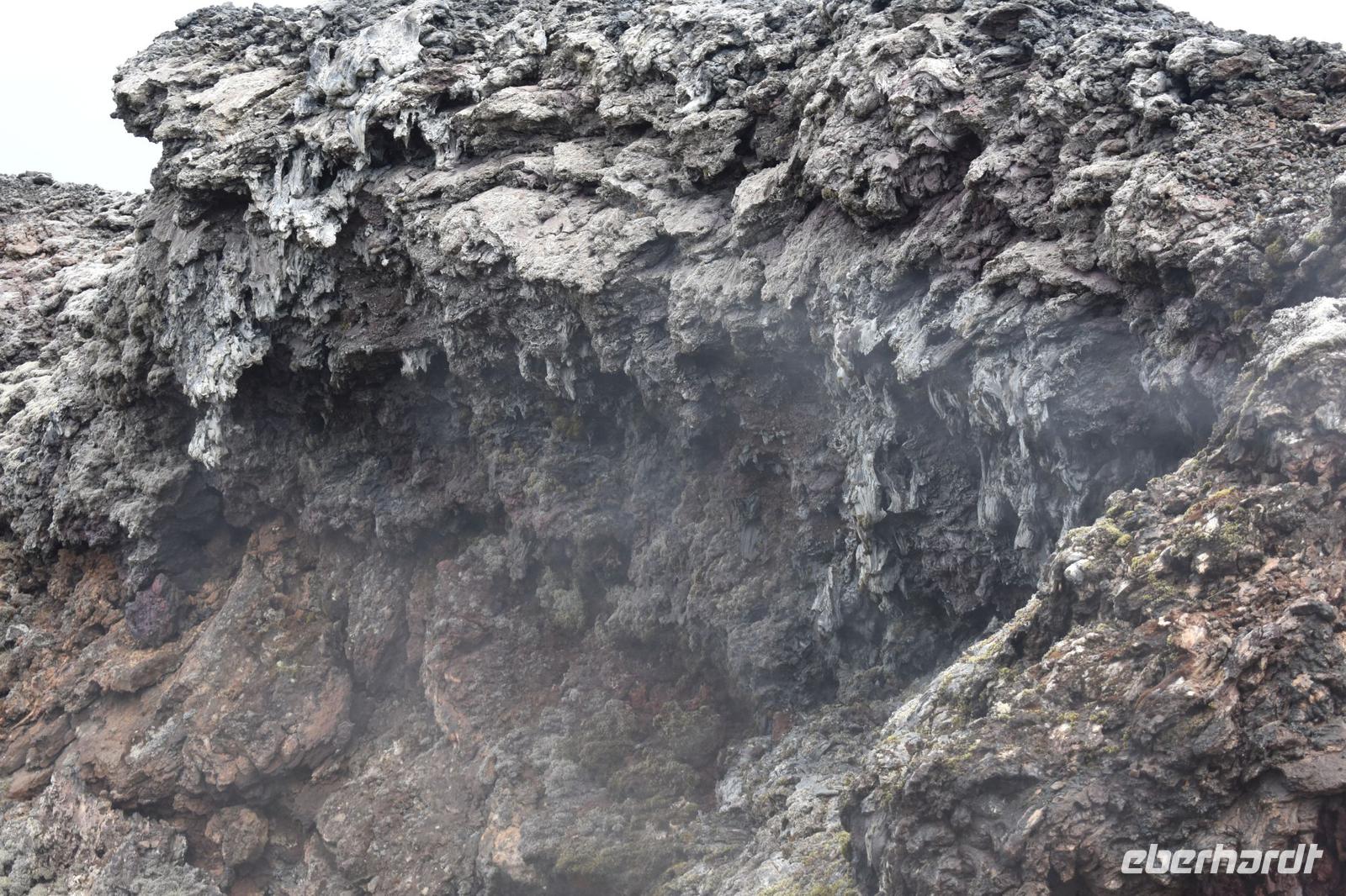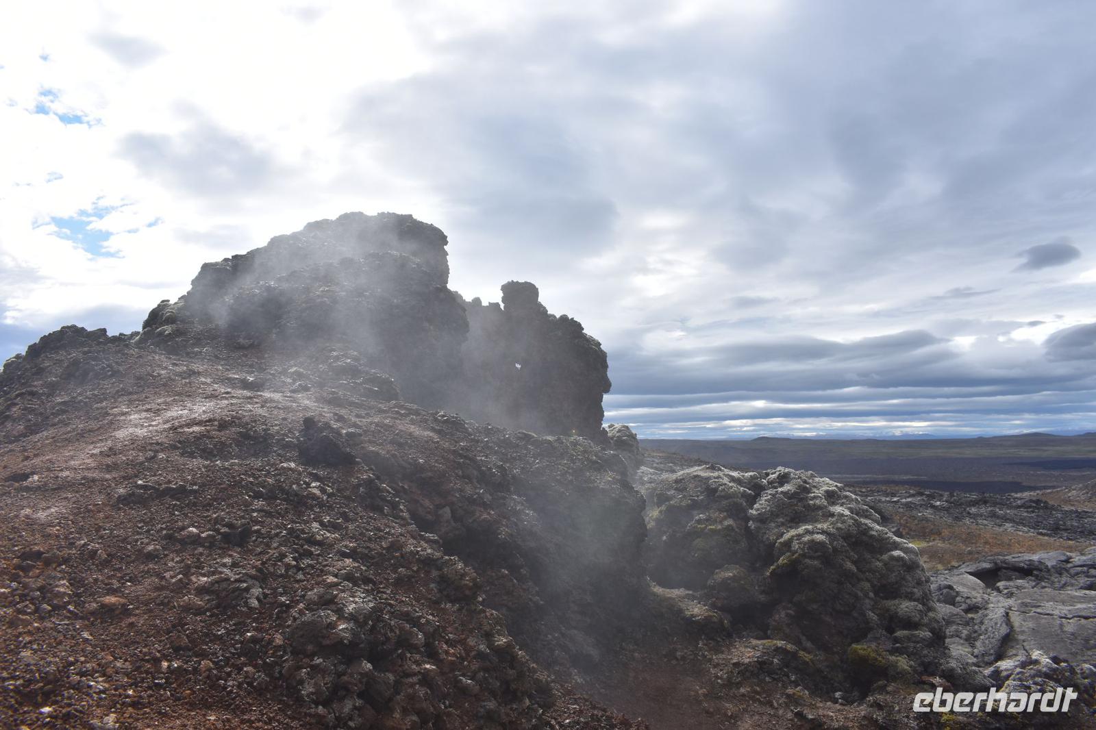 Die nächste Station hieß Dimmuborgir, wo sich zahlreiche Trolle und die isländischen Weihnachtsmänner versteckten. Von dort, über eine kleine Abkürzung, ging es zur Grjótagjá, einem Ort an dem die Erde aufgerissen ist. In dieser Felspalte sammelte sich Wasser und diente früher mal als Badehöhle. Durch die erhöhte geothermale Aktivität stieg die Temperatur auf über 60 Grad Celsius und machte das baden unmöglich. Aber trotzdem ist es fast unbegreiflich und zudem noch wunderschön anzusehen!