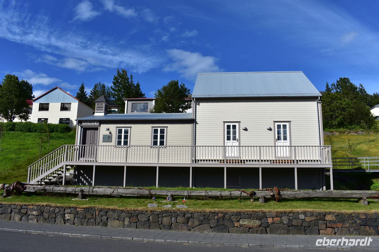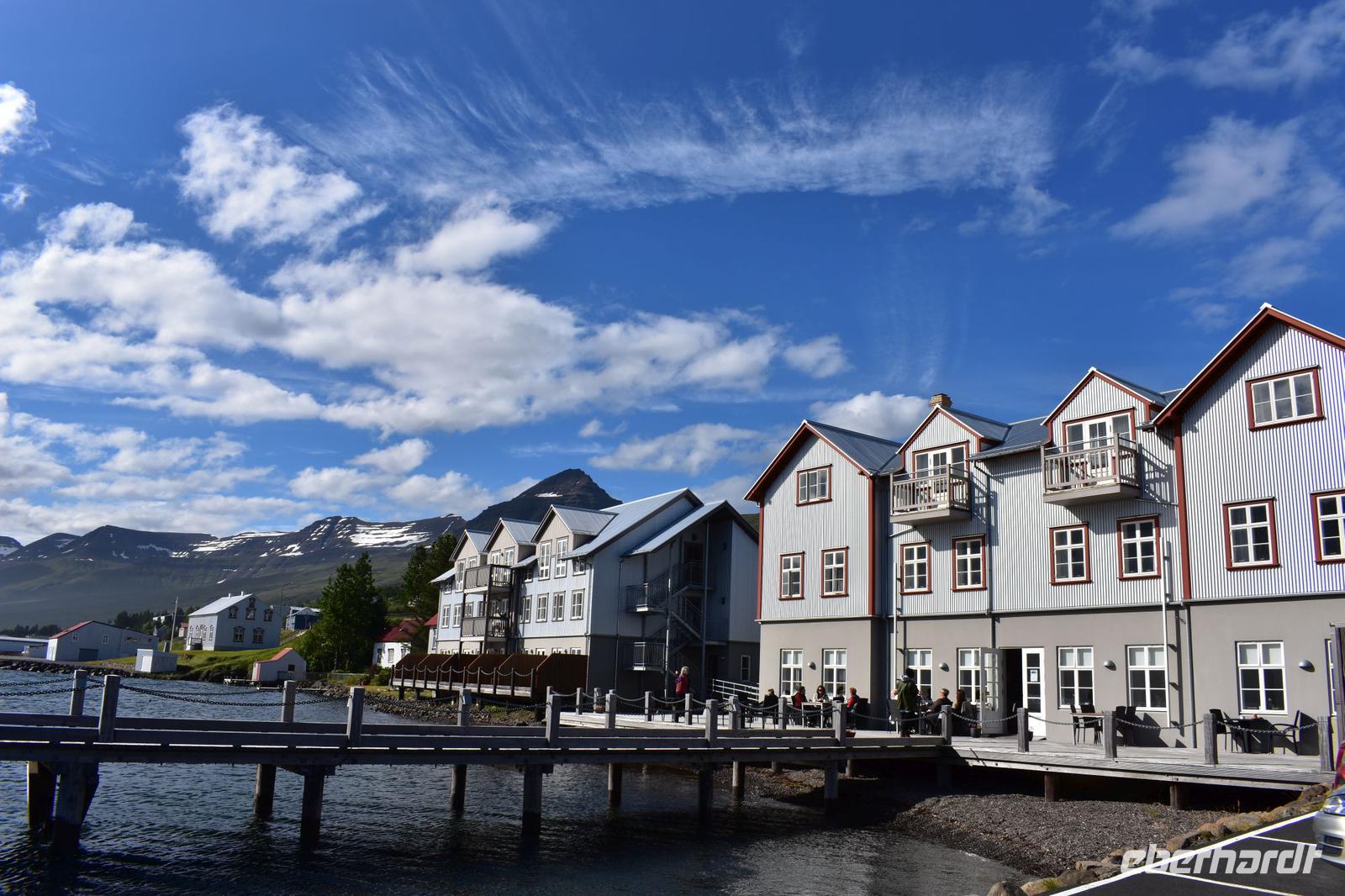 Wir fuhren weiter in Richtung Hotel, machten aber noch einen kurzen Halt im Wald von Hallormsstaðaskógur und nutzten die Zeit für einen Waldspaziergang. Über Egilsstaðir ging es dann weiter zum östlich gelegenen Fjord wo die Ortschaft Fáskrúðsfjörður liegt. Dort übernachteten wir im schon fast luxuriösen Foss Hotel, welches zu den renommierten Hotelketten hier auf Island zählt. Im Ort konnten wir das geniale Wetter genießen oder eines der Museen besuchen. Wie zum Beispiel das Französische Museum. Um 1900 kamen nämlich die Franzosen auf die damalige dänische Insel und errichteten hier einfach ein Hospital um ihre verletzen Seeleute zu versorgen, die beim Fischfang verunglückt waren.