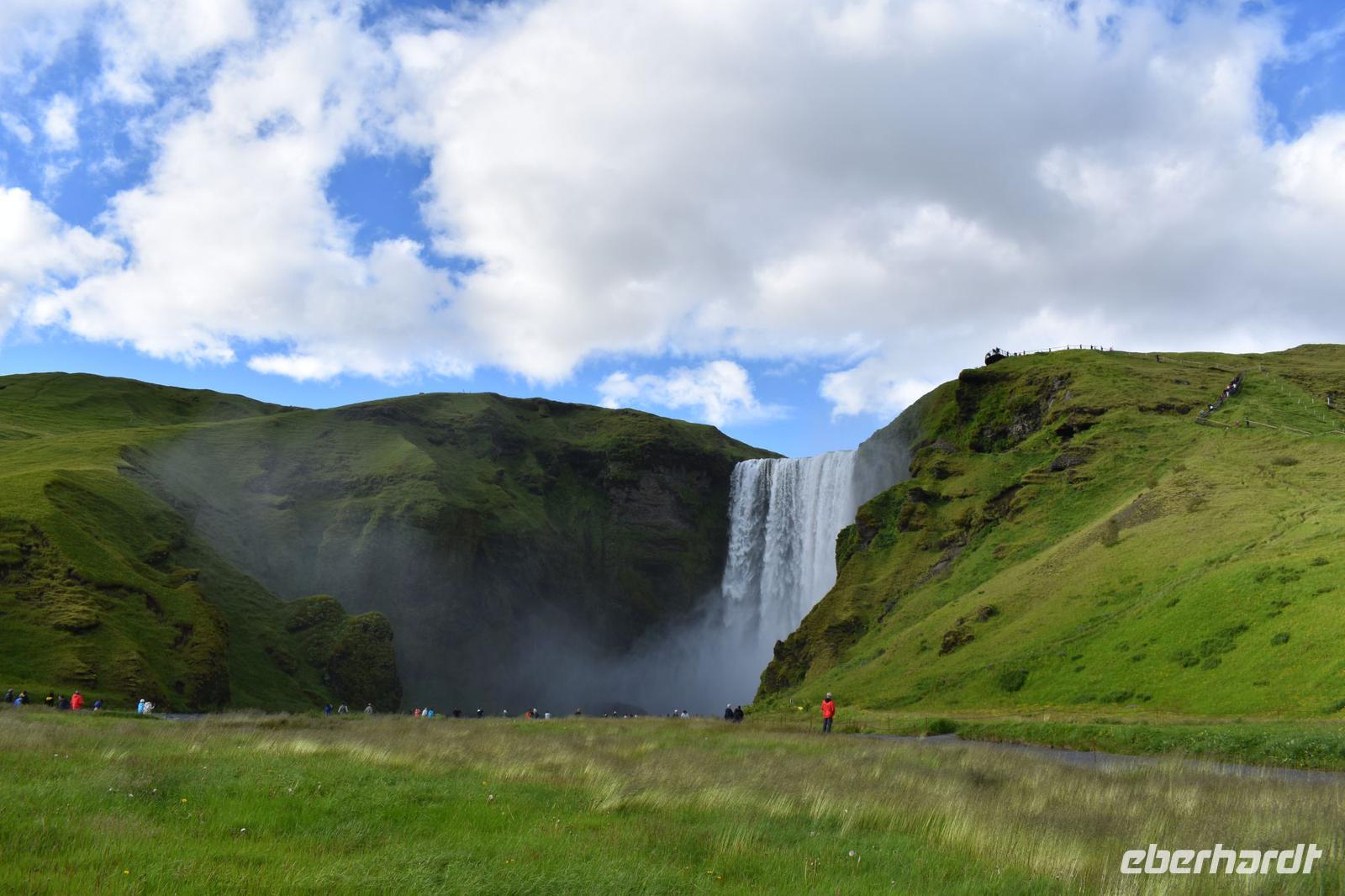 Wir statteten dem Skógafoss, einem 60 Meter hohen Wasserfall, noch einen Besuch ab, bevor wir dem Bus in das 65 Kilometer entfernte Hotel in der Ortschaft Hella fuhren. Dort konnten wir erst mal die Wunden versorgen. Glücklicherweise durften wir hier nun zum ersten Mal zwei Nächte bleiben ohne weiterziehen zu müssen.