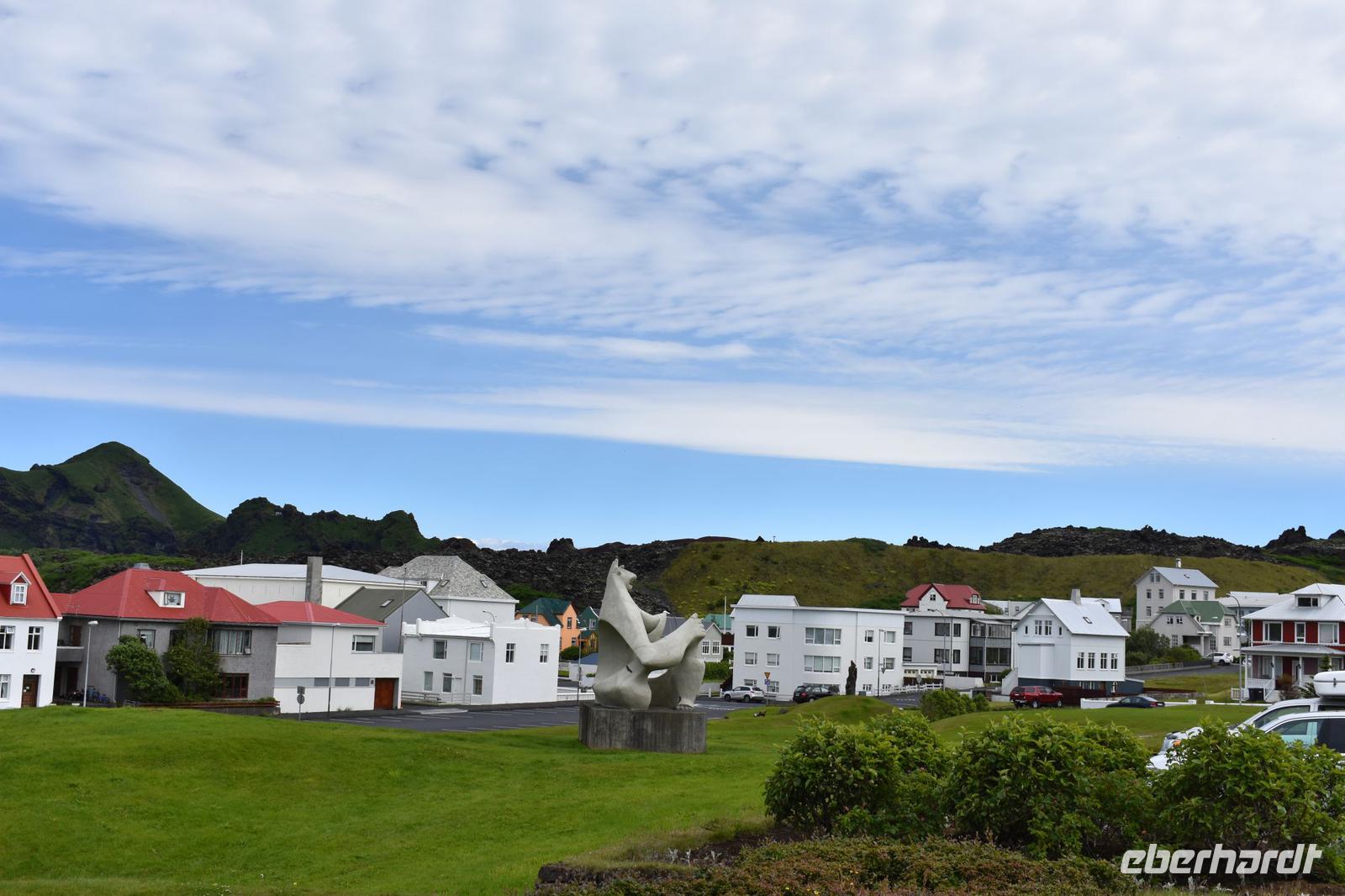 Wir setzten auf die Hauptinsel Heimaey über. Vestmannaeyjar war nun schon immer ein Brennpunkt. Unsere örtliche Reiseleiterin Klara, die von der Insel stammt, musste so als kleines Mädchen auch miterleben wie ihr Zuhause vom Vulkan Eldfell verschluckt wurde. 1973 Brach dieser aus und verwüstete die Insel. Um den damaligen Hafen und die Fischindustrie zu schützten, die die Menschen hier ernährte versuchte man verzweifelt die Lava mit Meereswasser zu löschen und aufzuhalten. Entgegen aller Expertenmeinungen gelang dies auch ein Stückweit.