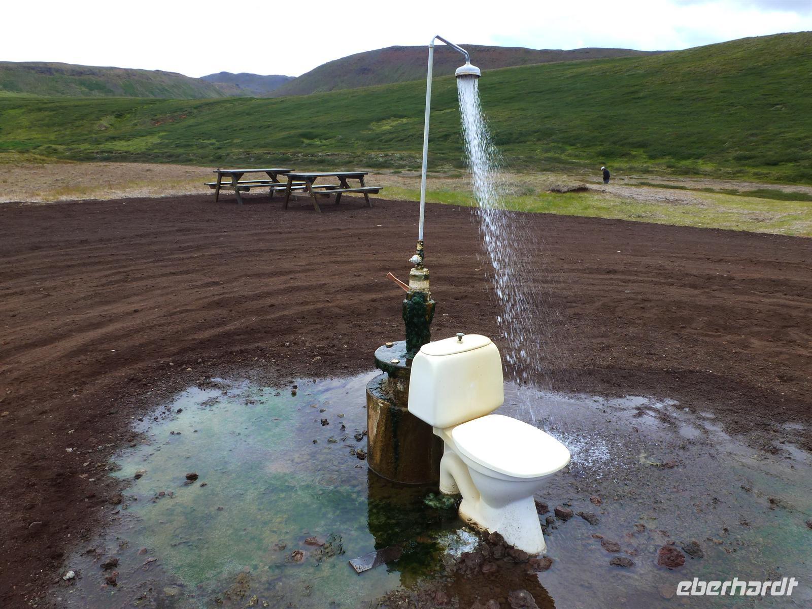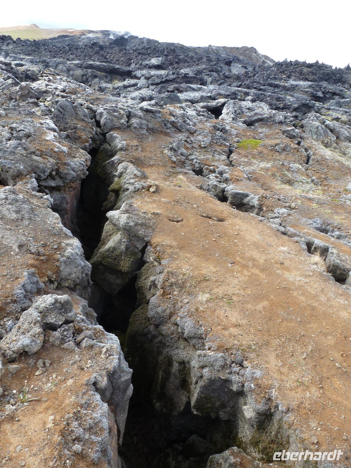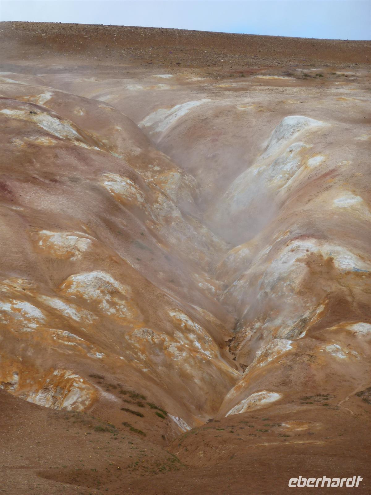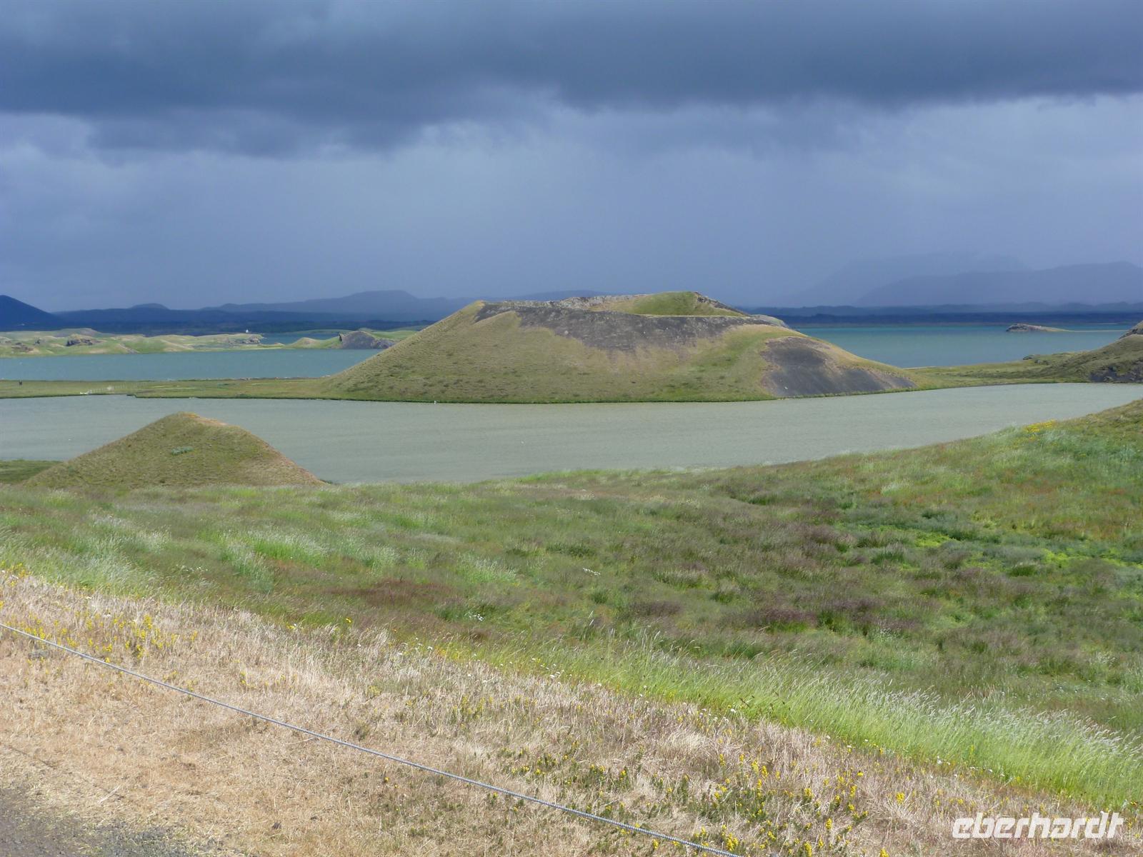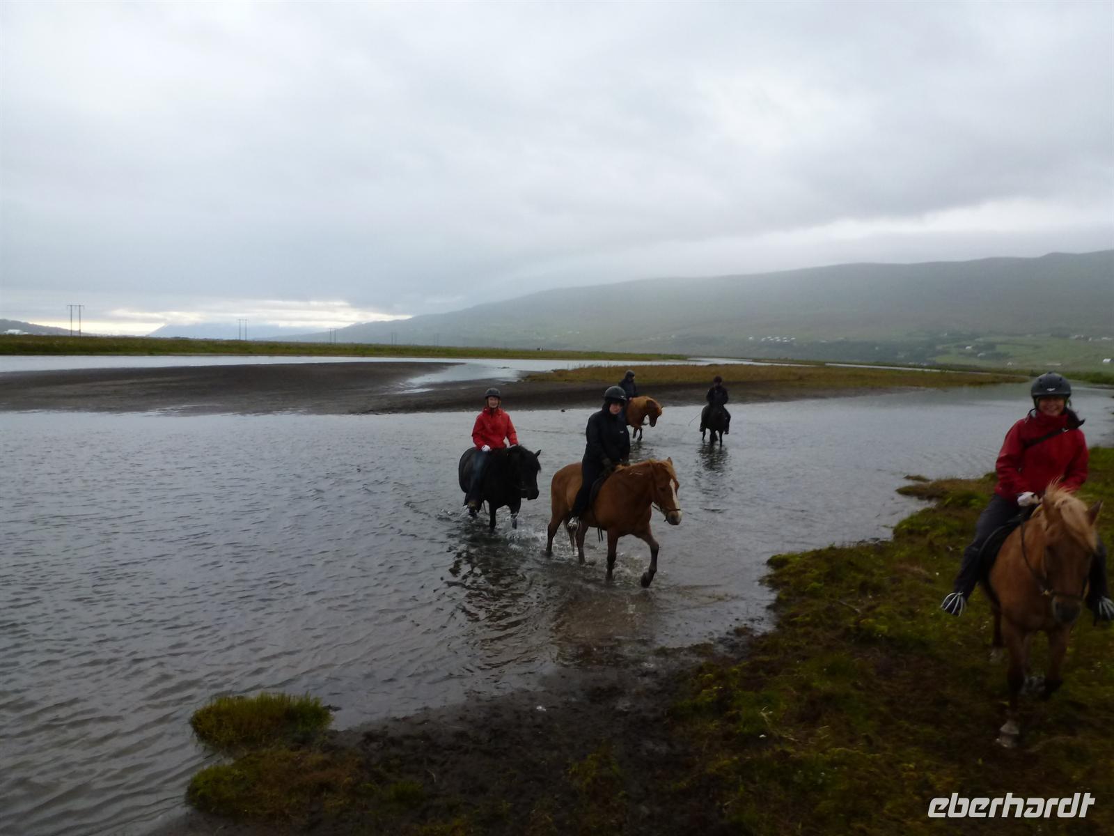 Heute erwarteten uns viele Höhepunkte: Als erstes sind wir am Vormittag zum erst vor 28 Jahren ausgebrochenen Vulkan Krafla gefahren und sind durch das so junge spektakuläre Lavafeld gewandert, wo es an vielen Stellen immer noch gedampft hat. Es war so faszinierend und wir haben auch schon die ersten brodelnden Schwefel-Schlammtöpfe gesehen. Nachher ging es weiter zu einem riesengroßen Krater eines Vulkans, welcher im Jahre 1726 ausgebrochen ist und jetzt mit Wasser gefüllt ist. Und dann fuhren wir durch diese bizarre Vulkanlandschaft mit den vielen dampfenden Stellen und einem großen Thermalkraftwerk zu den „Schlammtöpfen“ - da brodelt wirklich der Schlamm an so vielen Stellen und es zischt aus der Erde - wir waren erstaunt über soviel Aktivität in unserer Erde. Mit ziemlich schlammigen Schuhen ging es weiter zum Naturbad Myvatn. Hier machten wir eine lange Mittagspause und viele Gäste genossen ein Bad im heißen Thermalwasser - es war traumhaft in dem schönen warmen Wasser unter freiem Himmel zu baden! Aber schließlich mussten wir weiter den der „Trollpark“ Dimmuborgir wartete auf uns - diese vielen meterhohen Felsen treten alle wie kleine Trolle aus der vulkanischen Erde hervor und lassen diese Landschaft wie ein Trollpark aussehen - dieser kleine Spaziergang wurde durch ein kleines Trompetenkonzert von unserem tollen Guide Snorri perfektioniert - da konnte uns selbst der Regen nichts abhaben. Als vorletzer Stopp kam im Anschluss die kleine Halbinsel in Myvatn See mit den Pseudokratern - auch hier war es wunderschön und die Sonne kam auch wieder raus. Diese Krater sind entstanden als heiße Lava in den See gelaufen ist und das Wasser eingeschlossen hat und dieses dann aufgrund der Hitze „explodiert“ ist und der Dampf mit hohem Druckentflohen ist und so diese Krater gebildet hat. Ja und nun war unser Tag inmitten der brodelnden aktiven Vulkanlandschaft im Norden Islands schon fast vorbei, bevor wir auf dem Heimweg noch den beeindruckenden Wasserfall Godafoss besuchten und ein paar schöne Bilder am „Götterwasserfall“ machten. Schließlich erreichten wir am Abend wieder unser Hotel des Vortages und verbrachten einen tollen Abend im Restaurant Rob 23, wo wir mit leckeren Fischköstlichkeiten verwöhnt wurden. Den Abend rundete für die meisten Gäste ein abendlicher Ausritt mit den bekannten Islandpferden ab. Wir waren ganz schön aufgeregt vor diesem Ausflug, aber die Tiere waren brav und sind mit uns am Fluß entlang geritten und so konnten wir diese wunderbare Landschaft vom Pferd aus genießen!