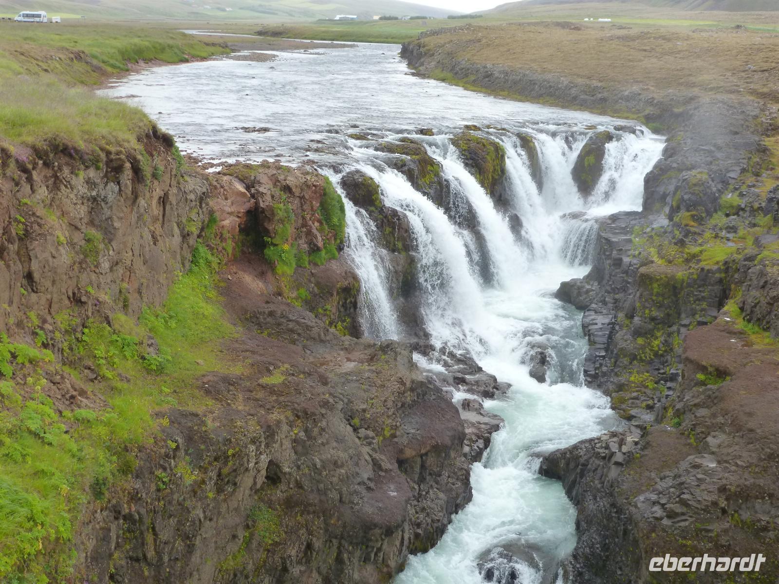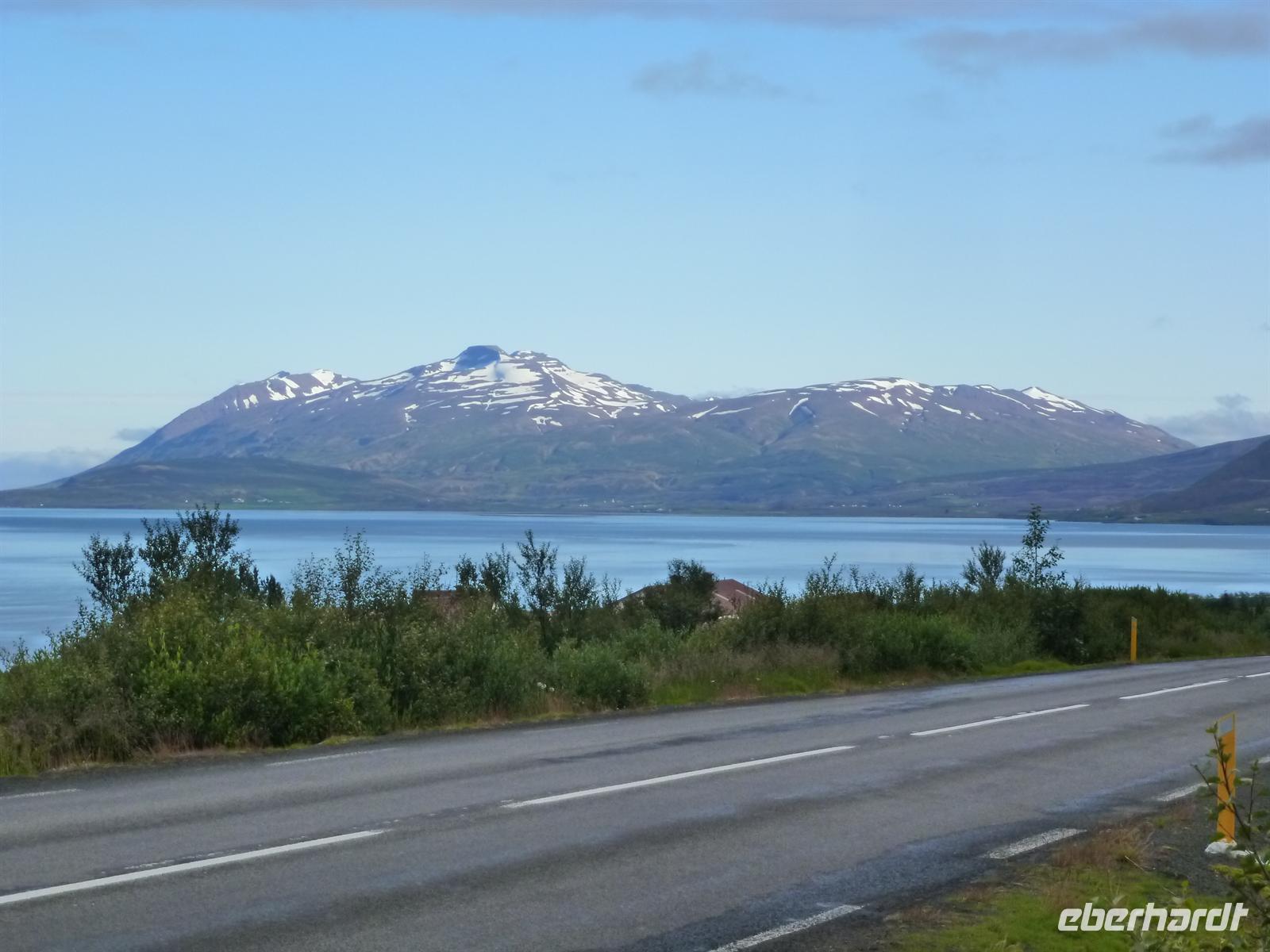 Um 8 Uhr standen alle Gäste pünktlich bereit um den nächsten aufregenden Tag auf Island zu verbringen. Wir fuhren auf die Nordseite der Halbinsel und vorbei an kleinen Fischerdörfern und hohen vulkanischen Bergen Richtung Akureyri. Unser Reiseleiter Snorri überraschte uns mit einem ganz tollen Stopp in Eiriksstadir. Dort steht der Bauernhof von Leifur Eriksson - dem Namensgeber von Grönland, welcher hier wohl im 10 Jahrhundert gelebt hat und nach verschiedenen Erkundungen Grönlands diese Insel mit Isländern besiedeln wollte. Bei einer sehr eindrucksvollen Erklärung der Bauernfrau in dem ursprünglichen Bauernhof-Gebäude mit Feuer in der Raummitte und Fellbetten wurde uns die Geschichte von Leifur lebhaft erklärt. Sehr schön! Weiter ging es zu einer Schlucht mit tobendem Wasser und nachher weiter vorbei an tief einschneidenden Fjorden zu einem kleinen Lokal fürs Mittagessen. Am Nachmittag erkundeten wir eine traditionelle Kirche aus Torf mit einem Grasdach bevor wir einen einsamen Weg zu dem Wasserfall Bola hochfuhren. Wir spazierten einen Hang hoch und machten spektakuläre Bilder von dem hohen Wasserfall - dort ist auch Rentierflechte gewachsen inmitten der wilden Natur. Wir haben heute wieder unheimlich viele verschiedene Landschaften auf den knapp 500km Fahrtstrecke erlebt - ein wunderschöner Tag. Am Abend erreichten wir unser schönes Icelandairhotel in Akureyri und genossen am Abend noch einen schönen Spaziergang durch die Hauptstadt des Nordens.