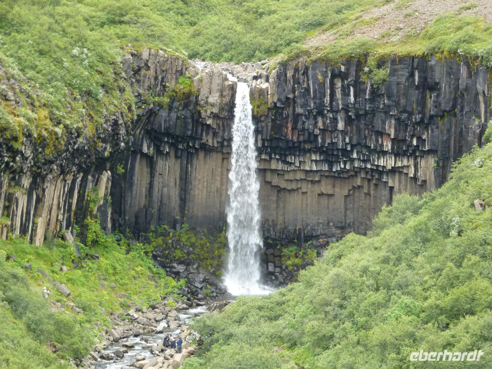 Dort sind auch gerade Gletscherwanderer mit Steigeisen los…spannend! Weiter ging es in den Nationalpark Skaftafell - dort durften wir mit Sondererlaubnis hoch zum Parkplatz am Wasserfall Svartifoss fahren und sind dann zu diesem spaziert. Einige von uns sind auch bis runter zum Pool des Wasserfalls gelaufen in dieser tollen Umgebung unterhalb des Gletschers. Nun verließen wir die Gletscherwelt und fuhren nach Kirkjubaejarklaustur - Snorris zweite Heimat als Kind in den Sommerferien! Hier machten wir Mittagspause in dieser tollen Landschaft mit saftigen Wiesen, schroffen Felsen und vielen Schafen! Gleich nach der Pause ließ uns Snorri im Lavafeld raus. Wir spazierten durch dieses gigantische Naturwunder - alle Lavasteine waren mit