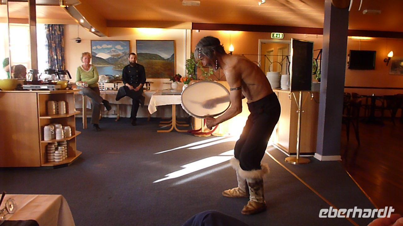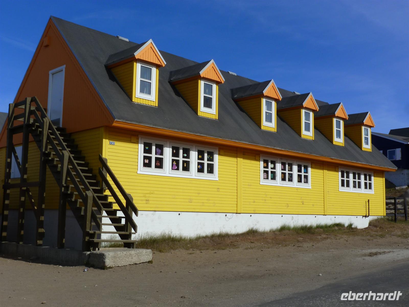 Die Menschen hier leben vor allem von der Jagt und die Robbenjagt gehört zum täglichen Leben. Wir hatten das Glück dass genau als wir im Dorf ankamen gerade eine Robbe an Land gezogen wurde. Hannes fragte ob wir zusehen dürfen wie sie geschlachtet wird und wir wurden herzlich eingeladen. Das war ein tolles Erlebnis und wir waren froh, diesen wichtigen Teil des Lebens der Inuit sehen zu dürfen. Wir gingen weiter in durch das Dorf mit seinen bunten Holzhäusern zur Kirche - hier war mollig warm und Hannes erklärte uns hier viel über Grönland und seine Menschen. Wir besuchten noch den Supermarkt und einen kleinen Laden, hörten die Schlittenhunde bellen und liefen dann zurück zum Hotel. Am Abend nach dem Abendessen kam ein Trommeltänzer zu uns. Trommeltanz ist typisch für die Inuit und wir erlebten den Tanz und Trommelmusik - es war toll! Das war der erste sehr erlebnisreiche Tag in der Arktis und wir waren alle sehr beeindruckt von dem Leben hier ganz weit im Norden!