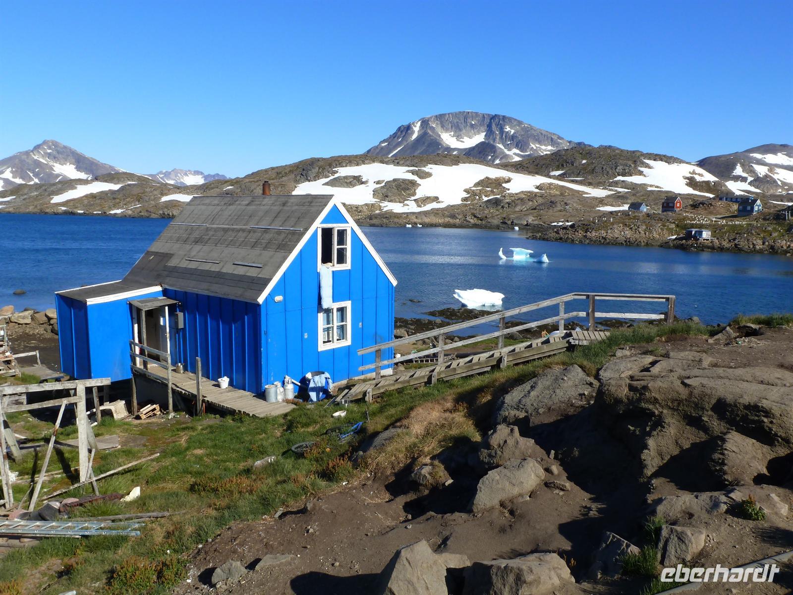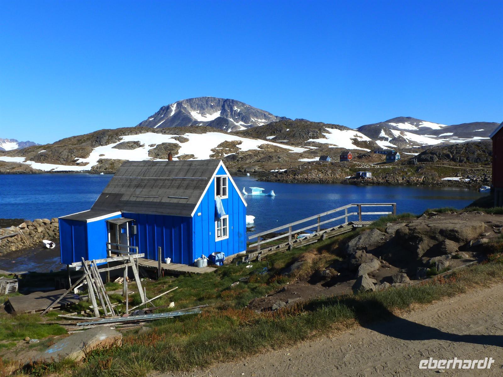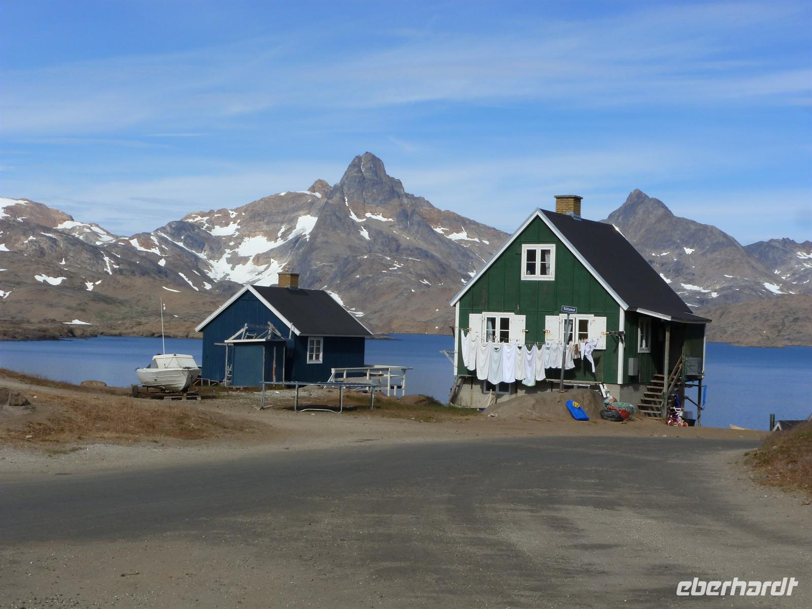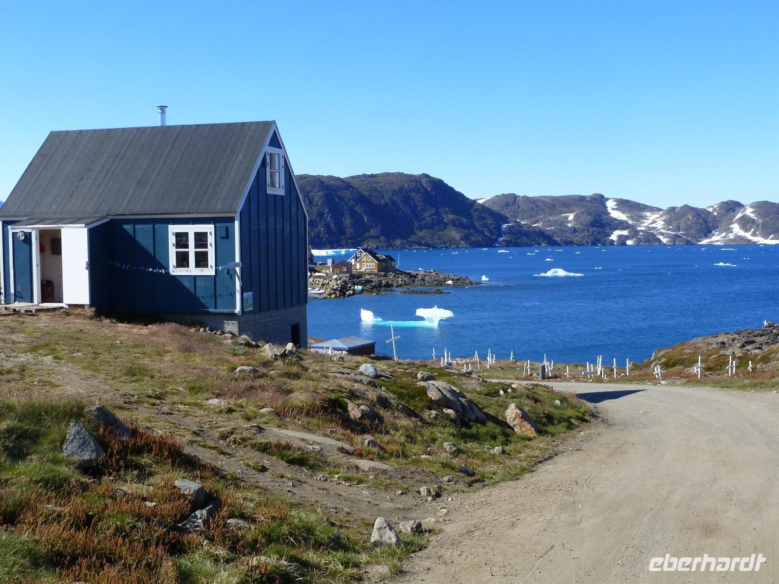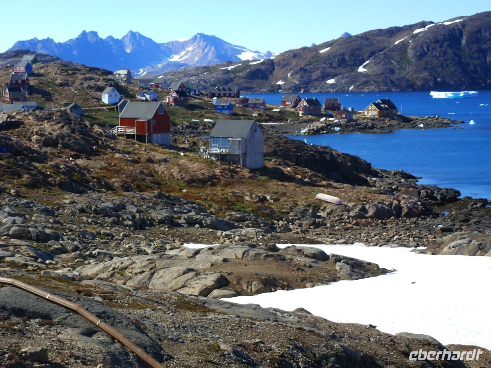 Heute starteten wir gegen neun Uhr zu unserem Spaziergang in das Tal der Blumen. Wir haben uns alle mit Mückennetzen über unsere Köpfe bewaffnet um den vielen kleinen Tierchen zu trotzen. Und ein Inuit begleitete uns, so dass wir während der Wanderung viel über das Leben der Bewohner Ostgrönlands erfuhren. Wir sahen einige Schlittenhunde, die im Sommer angeleint und im Winter als das wichtigste Fortbewegungsmittel für die Inuit dienen. Nach diesem gemütlichen Spaziergang aßen wir wieder im Hotel zu Mittag und nahmen uns danach ein bisschen Zeit zum entspannen und zum Füße hochlegen. Am Nachmittag spazierten wir runter ins Dorf und besuchten das wirklich interessante Heimatmuseum in der alten Kirche, den Supermarkt, die neue Kirche und dann spazierten wir noch ein wenig durch den Ort, um das Leben hier ein bisschen besser kennenzulernen. Schließlich ging es wieder zurück zum Hotel und am Abend haben wir das Fußballspiel zwischen den Siedlungen Kulusuk und Kungmit vom Hotelrestaurant aus beobachtet, das unten auf dem Dorffußballplatz stattgefunden hat.