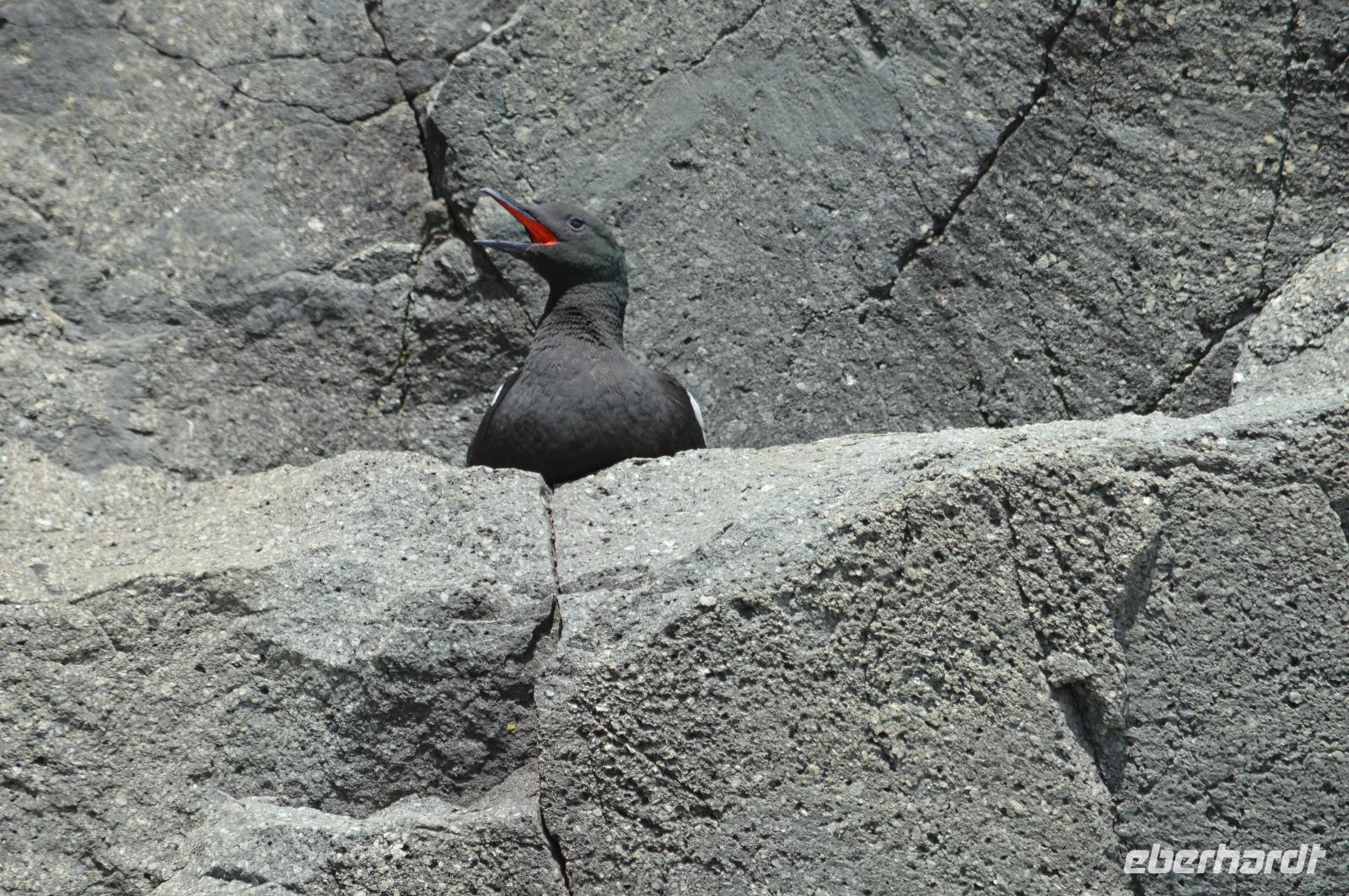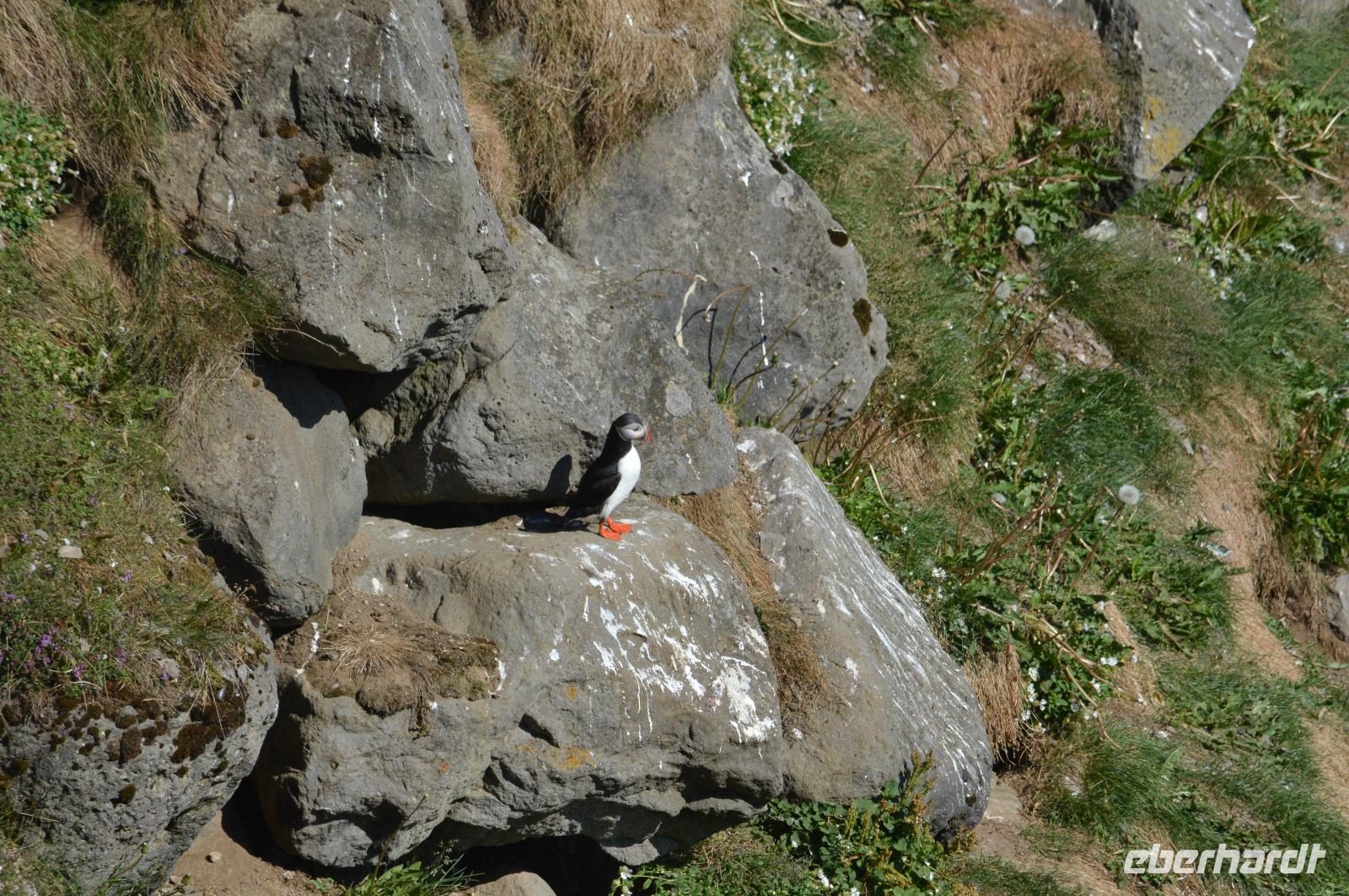 Heute haben wir „richtiges" Islandwetter: Diesig, Regen, teilweise sehr starker Wind. Trotzdem laufen wir zu den Basaltklippen von Reynisfara, die schon durch ihre Form spannend sind. Dort sind aber auch wirklich viele Papageitaucher und wieder Seehunde. Auf dem Weg dorthin sehen wir auch den ersten Prachteistaucher. Trotz heftigem Wind beobachten wir hier eine ganze Weile. Dann geht es zum Skogafoss. Der Regen läßt noch. Wir laufen zum Wasserfall: Ein tolles Erlebnis. Dann gehen wir zum Museum, wo wir eine hervorragende Führung durch den Curator haben, der förmlich ein wandelndes Lexikon ist. Auch der Rundgang durch dieses Museumsdorf mit seinen Grassodenhäusern und alten Steinhäusern ist sehr beeindruckend. Die Fahrt führt uns als Nächstes zum Selalandsfoss, wo wir auch hinter den Wasserfall laufen können und ihn aus einer sonst völlig unmöglichen Perspektive sehen. Als nächstes schieben wir zusätzlich den Besuch des Eyjafjallajökull Zentrums ein. Dort gibt es einen sehr persönlich gehaltenen Film zu sehen von einer Bauernfamilie, die direkt am Fuß des Eyjafjallajökull lebte und den Ausbruch von 2010 hautnah mitbekam, mit allen Folgen. Das war äußert beeindruckend. Danach fahren wir direkt zum Hotel in Reykjavik und die Islandrundfahrt ist beendet. Wir verabschieden uns von unserem Fahrer, der sehr gut gefahren ist.