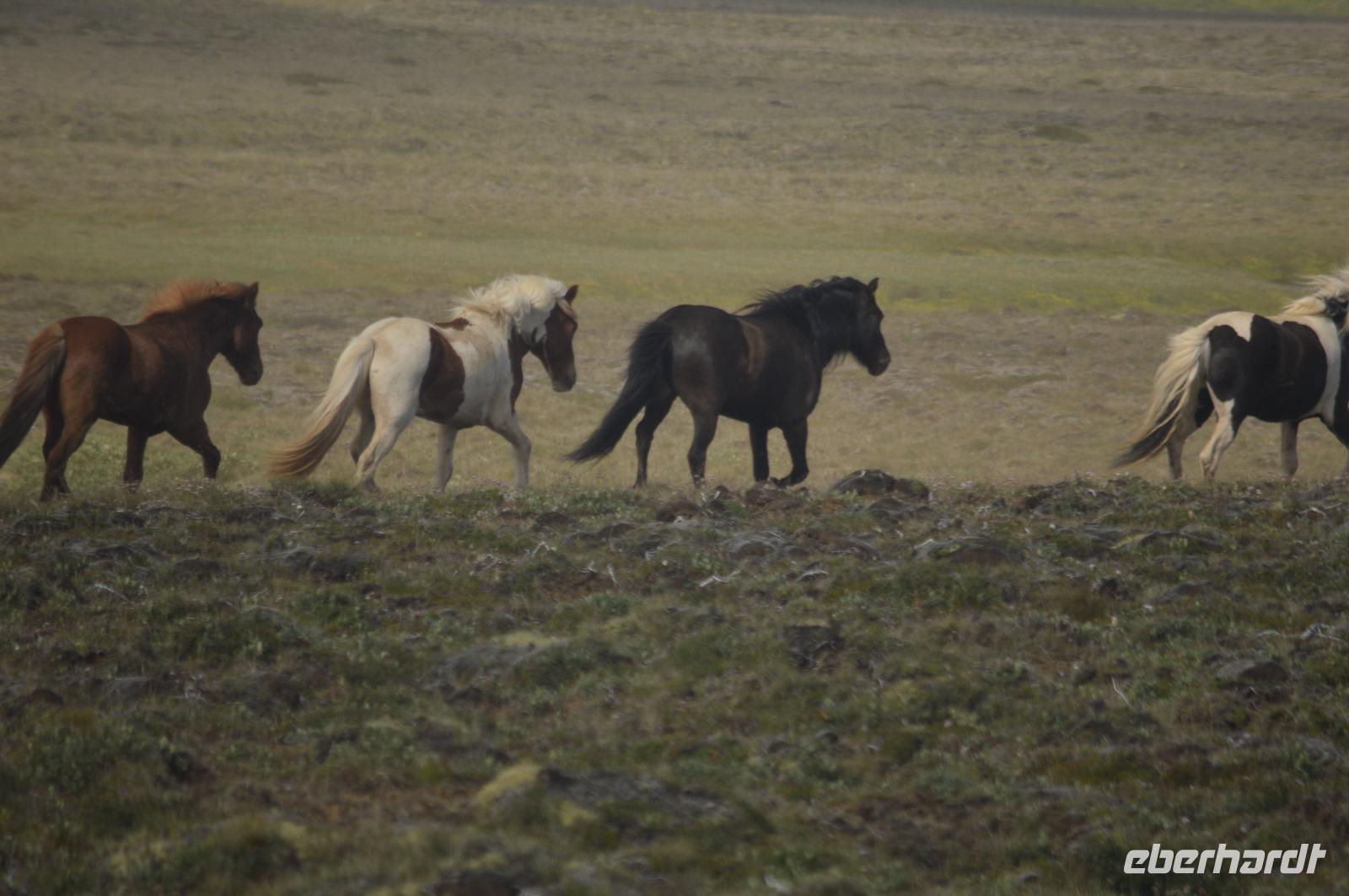 Nach dem Frühstück bringt uns der Bus nach Hauganes, wo wir an Bord eines Trawlers gehen, mit dem wir in den Fjord fahren auf der Suche nach Walen. Die lassen erst etwas auf sich warten. Dafür sind Trottellummen, Eissturmvögel und Küstenseeschwalben da. Dann tauchen 3 Buckelwale auf, die wir eine Weile beobachten können. Auf der Rückfahrt zum Hafen waren dann zwei weitere Buckelwale unmittelbar neben dem Trawler, was zu sehr guten Sichtungen führte. Das Mittagessen haben wir in einemkleinen Restaurant direkt am Hafen. Eine längere Fahrt bringt uns dann auf einen Pferdehof, wo die Island Ponies gezüchtet werden. Die Besitzerin erklärt ihre Pferde sehr gut. Von dort aus fahren wir um die Halbinsel retour nach Dalvik. Die Sicht in bestens und es gab reichlich Gelegenheit zu photographieren.16.7.: Wir verlassen Dalvig und fahren als erstes nach Akureyri, wo wir einen Stadtrundgang machen. Von dort aus geht es zum spektakulären Godafoss, wo reichlich Zeit ist diesen Wasserfall zu genießen. Dort sind wieder viele Orchideen und andere subarktische Sommerblumen in voller Blüte. Entlang der Nordküste geht es dann ins Hochtemperaturgebiet Namafjall, was schon von weitem durch das Fehlen jeglicher Vegetation auffällt. Die Schlammlöcher und Dampflöcher riechen sehr nach Schwefelwasserstoff und haben sehr bunte Ablagerungen geschaffen. In der Nähe machen wir die Mittagspause. Dort gibt es auch den „Nachbau" der blauen Lagune. Alle sind der Meinung, dass das eine reine Touristenfalle ist. Niemand in der Gruppe ist bereit den doch sehr hohen Eintrittspreis zu zahlen. Wir verlassen das Gebiet und schauen am Myvatn nach Vögeln. Diese machen sich etwas rar. Dafür ist die Botanik sehr gut - und die lästigen Fliegen sind in Mengen dort. Eine sehr schöne und intensive Wanderung am Dimmuborgir durch die bizarren Lavaformationen folgt. Die Wanderung begeistert alle. In Höfdi machen wir noch einen Stop und gehen an das Ufer des Myvatn - und haben nun endlich die Vögel vor Augen, darunter die endemische Spatelenten mit ihren Jungen. Als letzter Stop dieses ausgefüllten Tages halten wir kurz an den parasitären Kratern an und dann geht es die wenigen Kilometer ins Hotel.