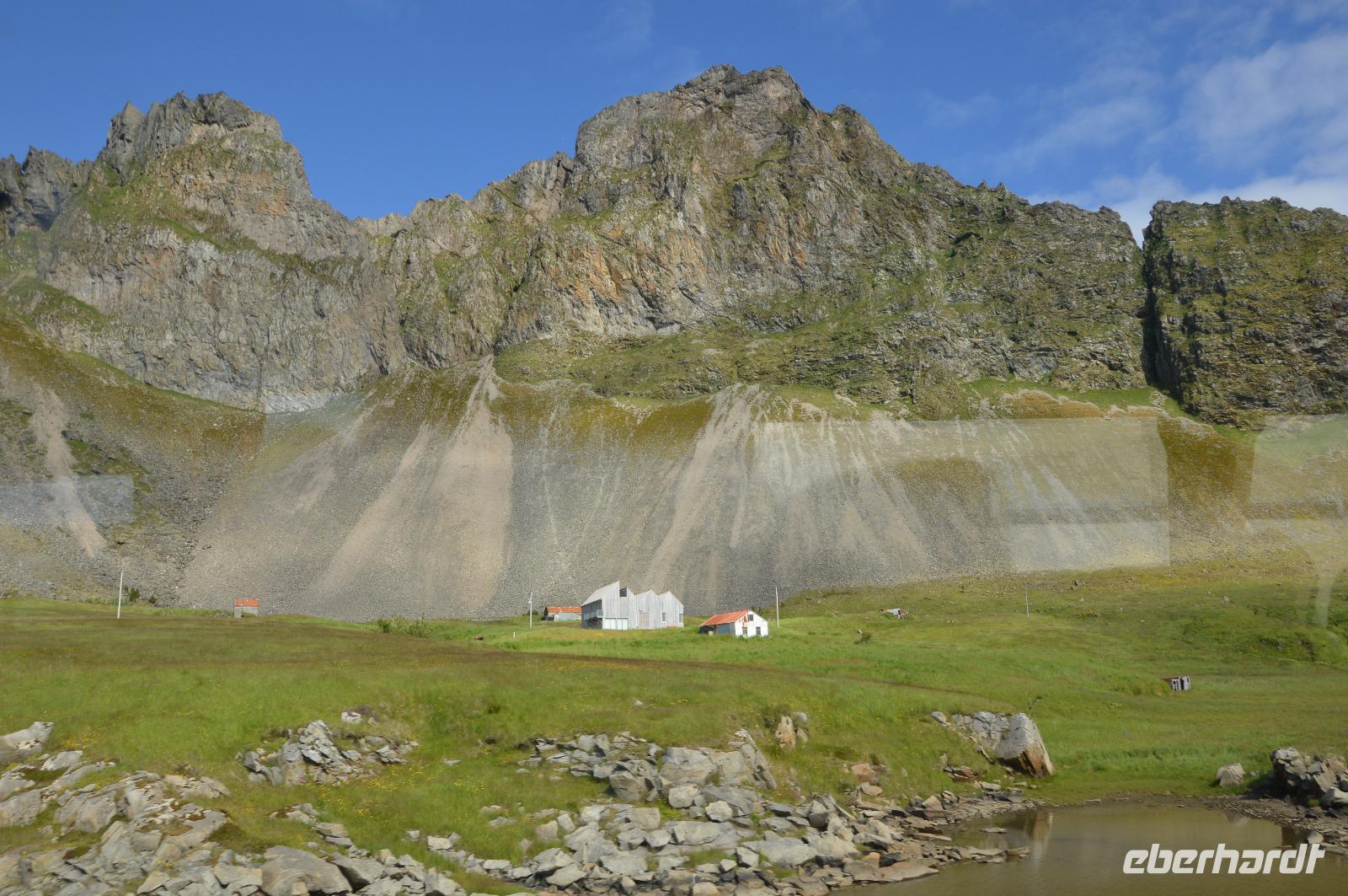 Heute beginnt die Rundfahrt um Island. Es ist bedeckt mit leichtem Nieselregen, der sich aber schnell legt. Wir fahren direkt ins Hochland, halten nach kurzer Fahrt an einem beeindruckenden Canyon an, wo wir eine kleine Wanderung machen. Dort sehen wir die ersten Orchideen und fleischfressenden Pflanzen, das Drüsenblatt. Die Sicht wird sehr gut und die Folge sind etliche Potostops. Wir kommen an ein Hochtemperaturgebiet mit wunderschönen heißen Quellen, Archäbakterien und Heißwasseralgen, wo wir lange bleiben. Nach dem Lunch geht es weiter durch Hochland nach Norden bei klarer Sicht. Am Nachmittag erreichen wir das Museumsgehöft Glaumbaer, wo wir sehen, wie die Menschenfrüher in den Grassodenhäusern gelebt haben. Der Tag endet in Dalvig am Fjord in einem kleinen Hotel.