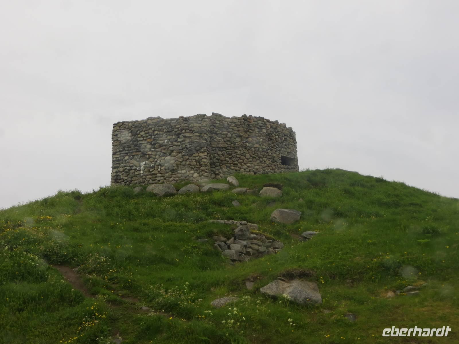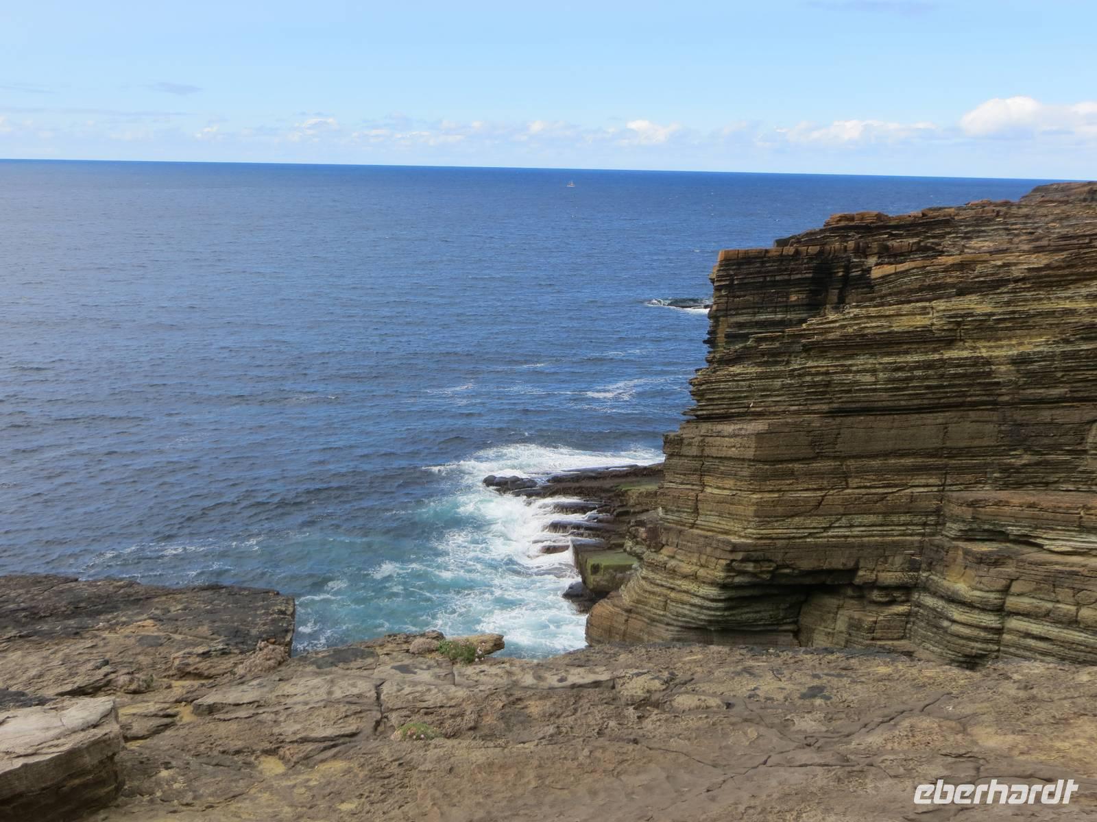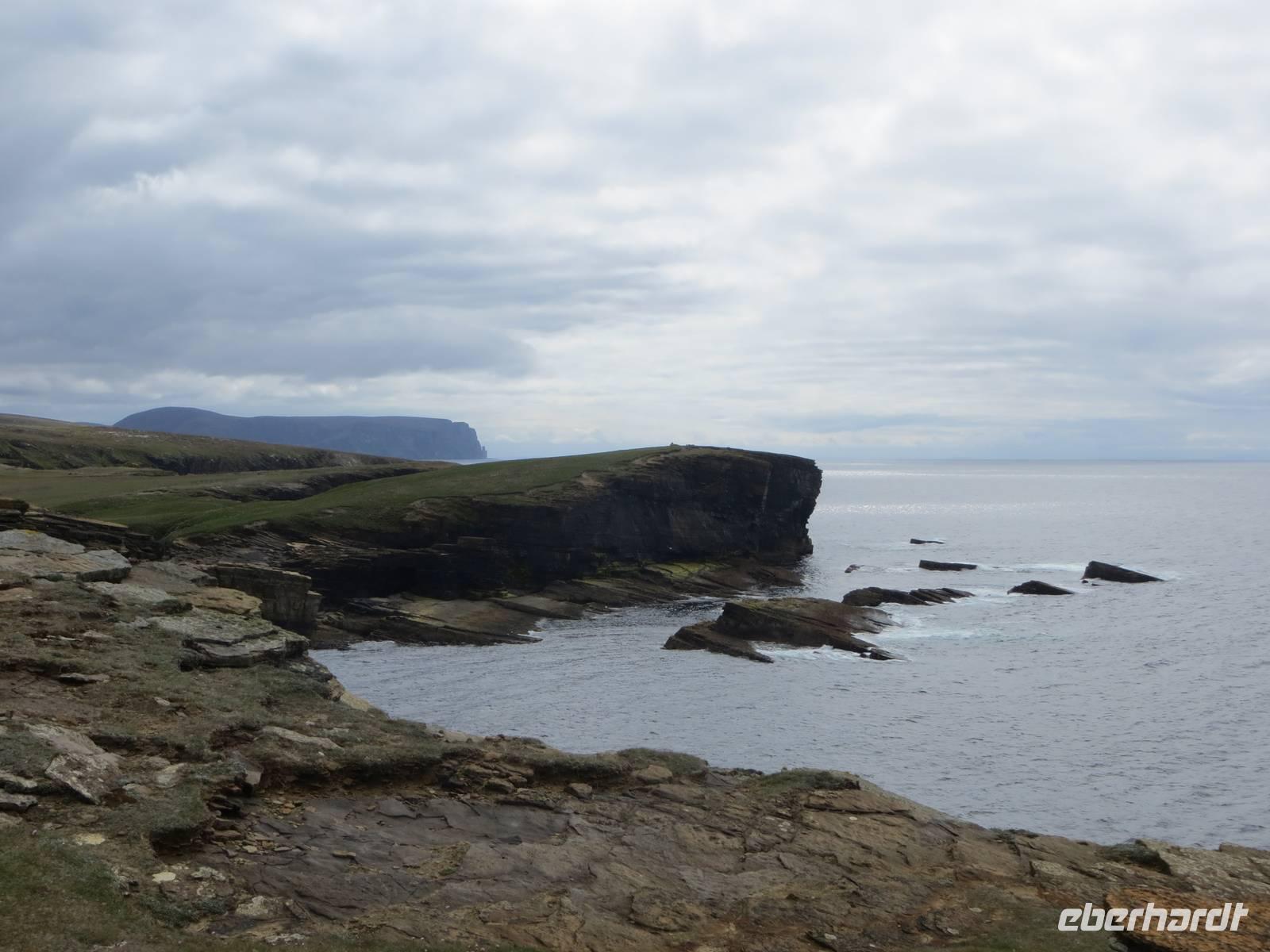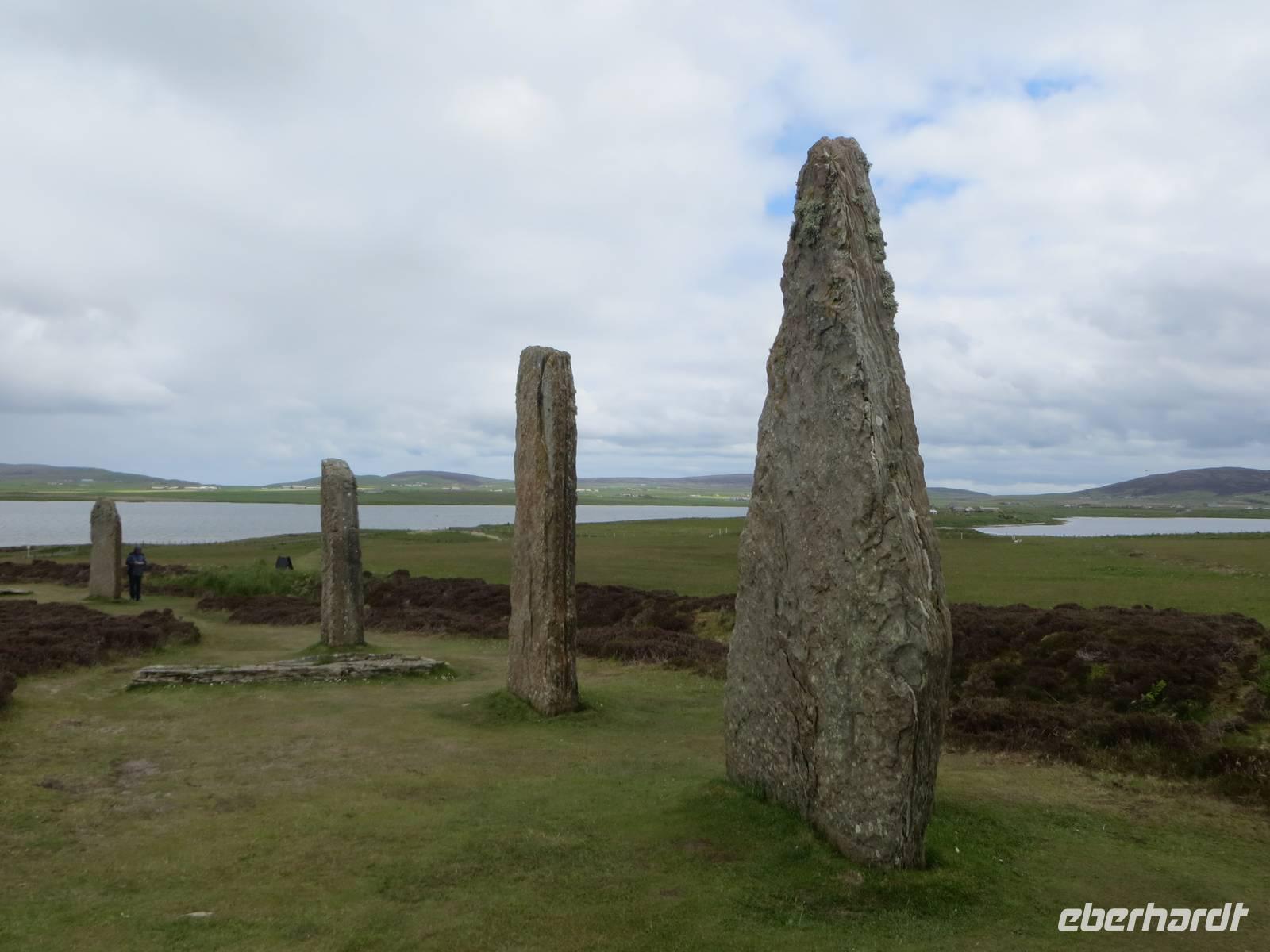 Unsere örtliche Reiseleiterin führte uns zum beeindruckenden Steinkreis von Brodgar. Exakt ausgerichtet, nur ca. 40 bis 50 cm im Boden verankert, bilden die 27 erhaltenen, gewaltigen Steine einen Kreis von 104 Metern. Damit ist dieser größer als sein bekannterer Bruder in Stonehenge. Unterwegs hatten wir vom Bus aus die Stones von Stenness gesehen und über die exakte Ausrichtung der Öffnungen des Hügelgrabes von Maes How Chambered Cairn zur Sonne gehört. Diese fast 5.000 Jahre alten Zeugnisse des Lebens in der Steinzeit nötigten uns größten Respekt ab. Welches Wissen hatten die Menschen bereits in der damaligen Zeit? Wie lebten sie im Einklang mit den Gestirnen? Natürlich erfuhren wir auch viel Wissenswertes zum heutigen Leben auf der Insel: zur Landwirtschaft, zum Hausbau, zum Fischfang, zum Schulbesuch ... zum Verkehr, die Straßen sind oft nur einspurig. Die Orkneys sind Vorreiter Europas zu erneuerbarer Energie: die ersten Windkraftanlagen wurden hier gebaut und jetzt werden Anlagen auf dem Meeresboden verankert, um die Kraft der Strömungen des Atlantiks in Elektroenergie umzuwandeln. Von der Kraft des Meeres konnten wir uns an den gewaltigen Klippen von Yesnaby überzeugen. Von Wind und Wasser geformt, eröffnete sich uns ein wunderschönes Panorama der zerklüfteten Küste. Wir bewunderten Muschelfossilien und kleine, ganz zarte Nelken auf kargem Boden.