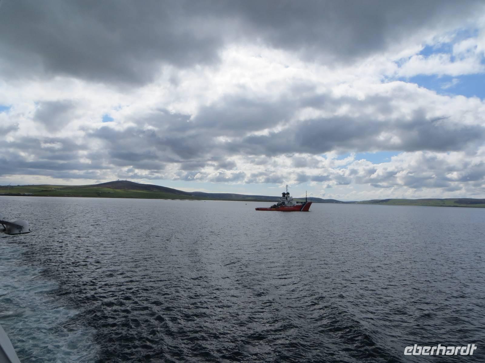 Nach einer ruhigen Nacht, das Meer ist ganz eben, nur wenige Wellen, lachte uns die Sonne entgegen. Am Vormittag hatten wir alle einen Termin mit den englischen Behörden, die an Bord einen Identitätsabgleich für die Orkney-Inseln durchführten. Und das bei mehr als 2.000 Passagieren ... es war bestens organisiert: professionell und zügig.