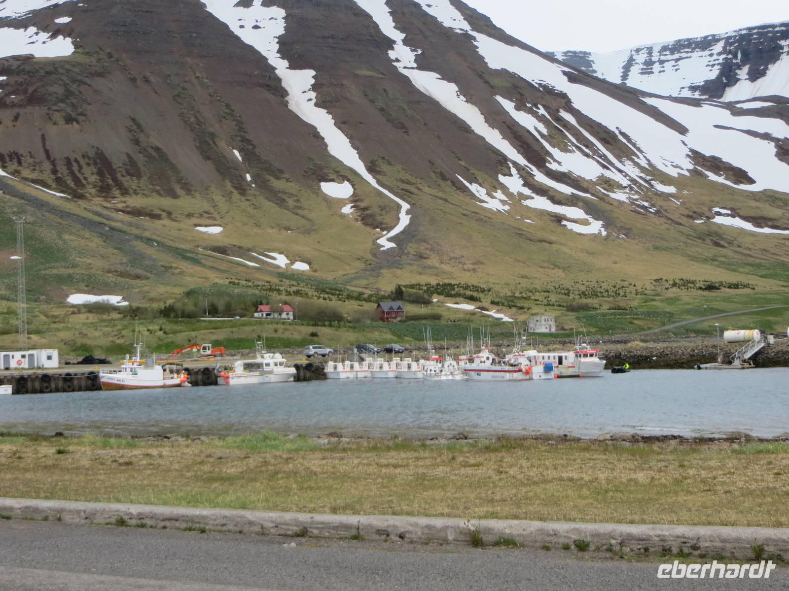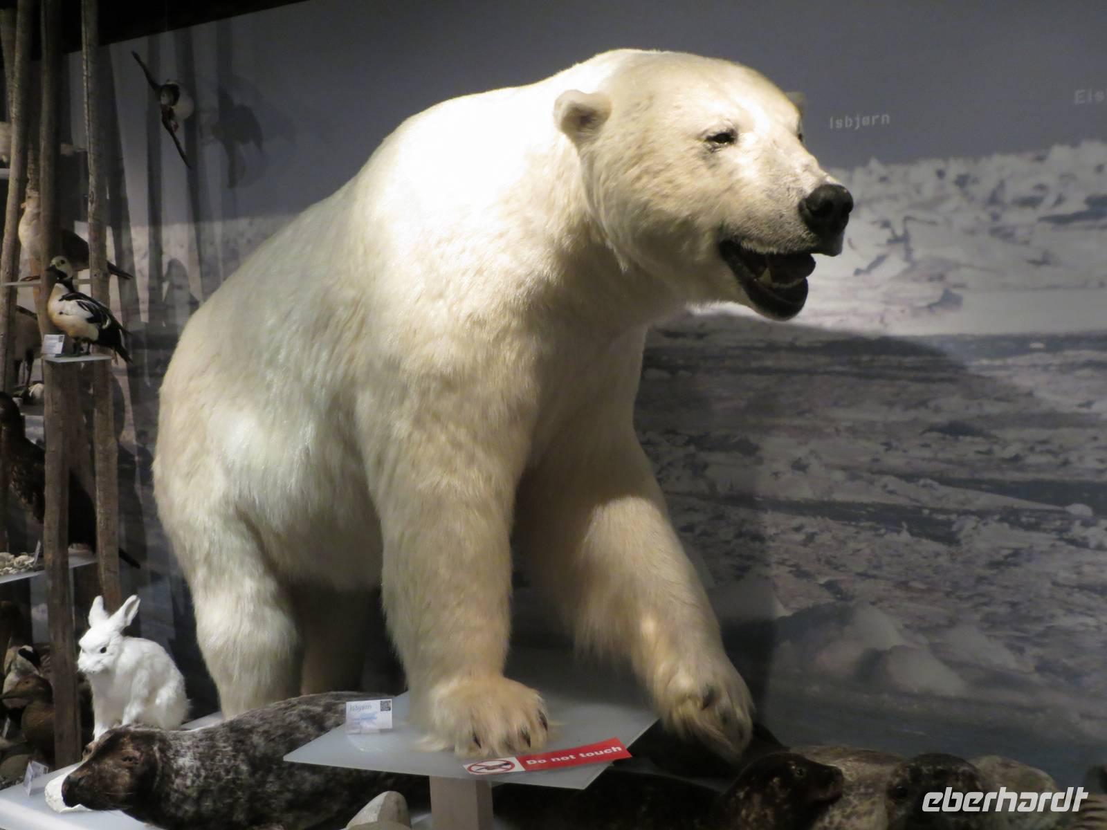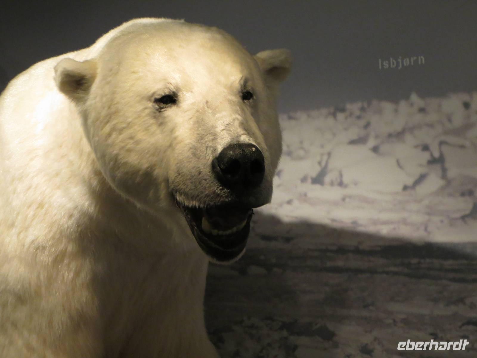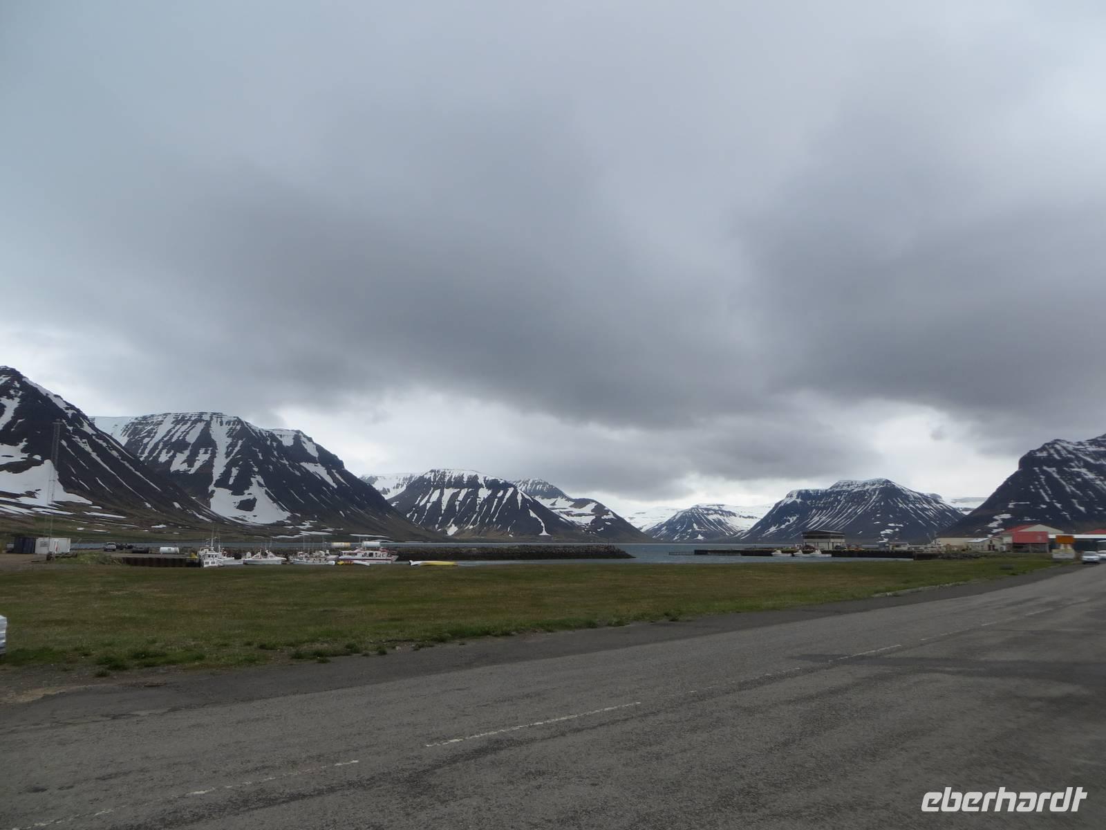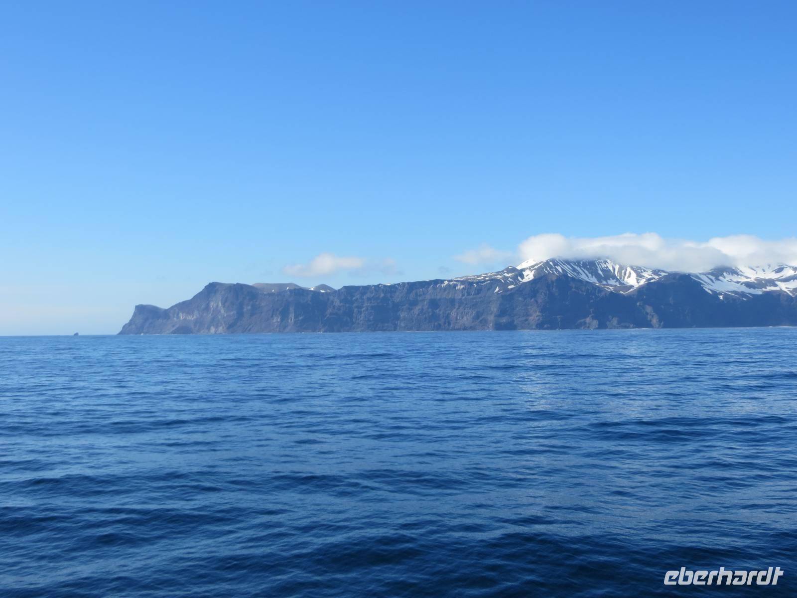 Im Hafen nutzten wir kleine Einkaufsmöglichkeiten. Eine Eisbärenfamilie (ausgestopft) erinnerte uns, dass uns unsere Kreuzfahrt immer näher an den Nordpol führt. Doch nun erfreuten wir uns erst einmal an der Ausfahrt aus dem Eyjafördur, dem längsten Fjord Islands, vor einer wirklich grandiosen Kulisse der Berge, die ganz platt majestätisch links und rechts emporragten. Ihre Form hatten sie durch die Eiszeit erhalten, als ihre Gipfel regelrecht abgeschliffen, ja fast abgeschnitten wurden. Am Abend schwelgten wir noch lange in den Erinnerungen an diesen „Tag der Naturschauspiele".