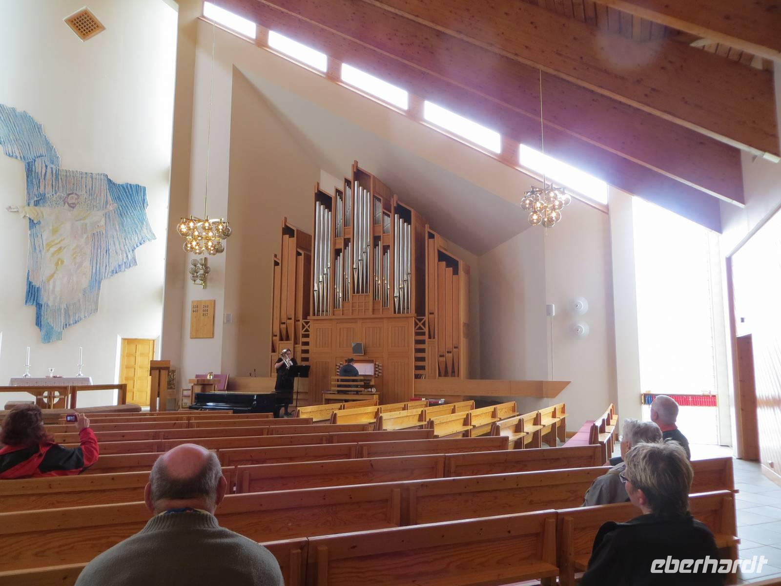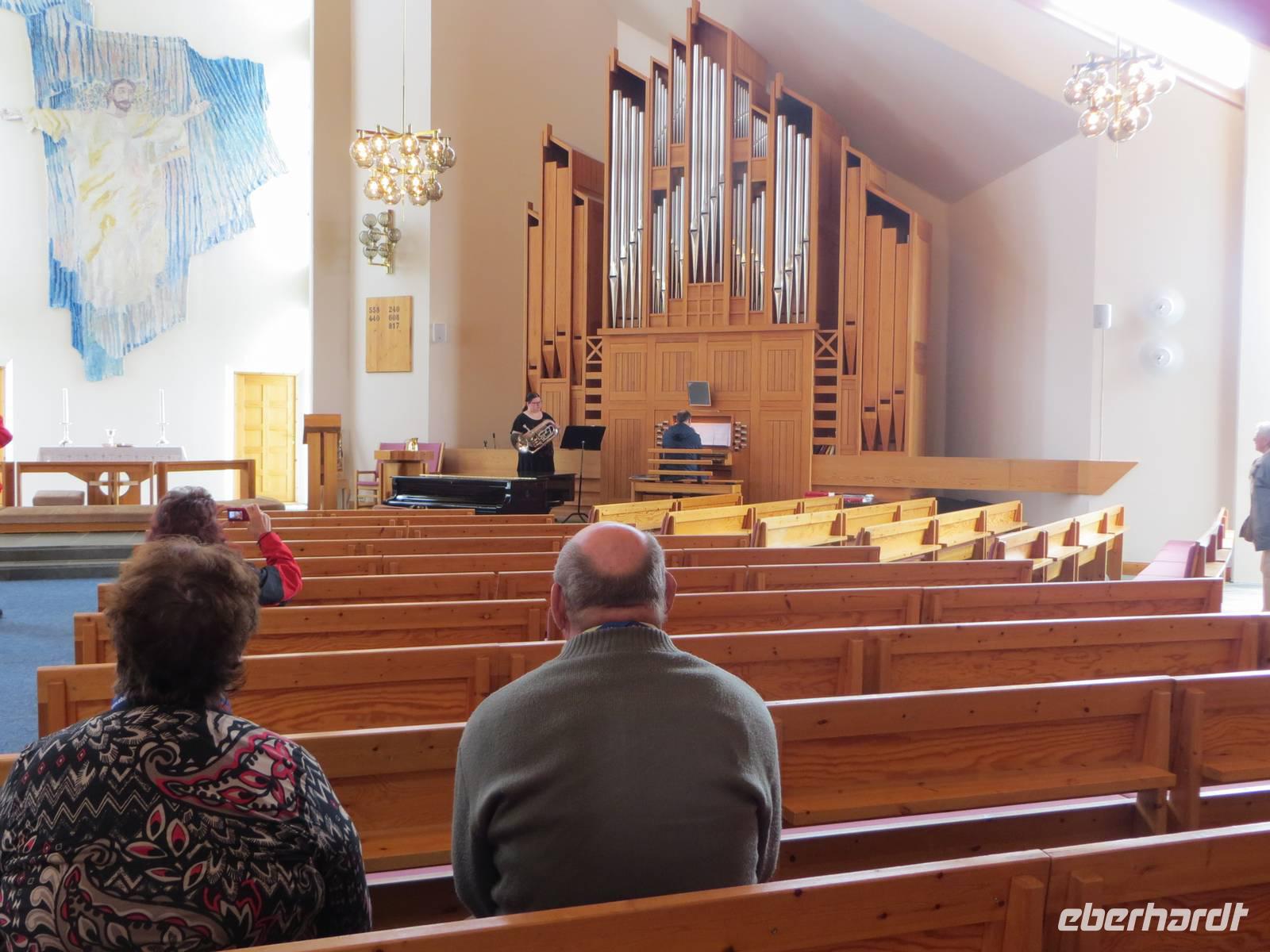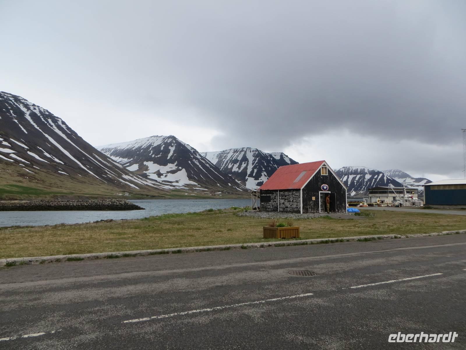 In der kleinen Kirche des Ortes lauschten wir bei einem kleinen Privatkonzert dem glockenklaren Gesang einer jungen Isländerin. Sie interpretierte Seemanns- und Liebeslieder auf sehr eindrucksvolle Art und Weise - ein Gänsehautgefühl. Es zeigte sich im wahrsten Sinne des Wortes, dass Musik verbindet. Obwohl wir den Text nicht verstanden, reichten einige wenige Worte der Übersetzung, um den Inhalt zu erfassen. Die Kirche bietet sehr viel Symbolik, der Leuchter mit 21 Kerzen erinnert an die Opfer des Lawinenunglücks von 1995.