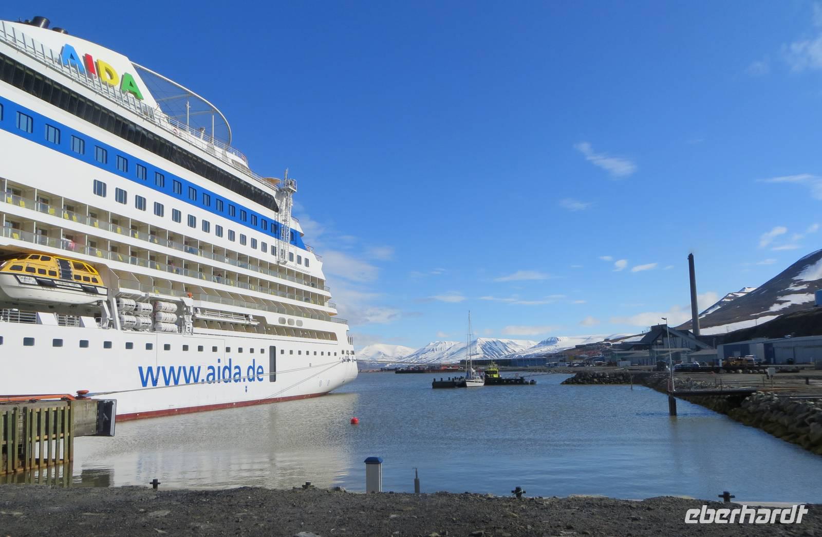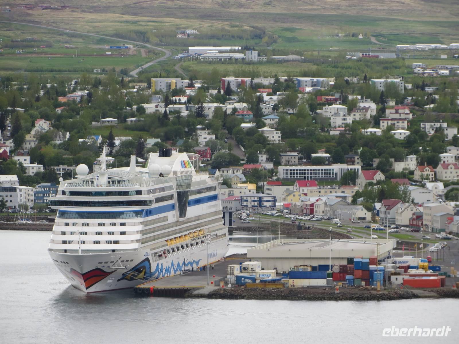 Zurück im Hafen blieb etwas Zeit zu einem Bummel in den Straßen der von Isafördur, bevor wir aus dem Fjord in die Dänemarkstraße ausfuhren. Die AIDAluna nahm nun Kurs auf Akureyri, eine Stadt nur 50 Kilometer südlich des Nördlichen Polarkreises. Den Abend gestaltete jeder Reisegast ganz nach seinen persönlichen Wünschen: beim Besuch der Shows, bei der Saunanacht oder beim Tanz in den Bars.