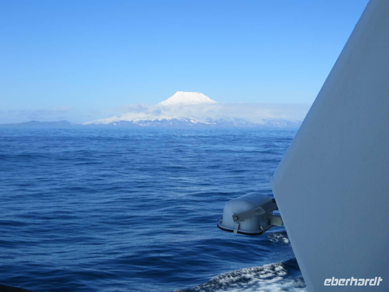 Das Wetter versetzte selbst unseren Lektor, Jörg Trobitzsch, ins Schwärmen: Als wir an der Inselgruppe Jan Mayen vorbeifuhren, präsentierte sich uns der Beerenberg (2.277 Meter) ganz majestätisch, keck schaute seine Spitze aus einer kleinen Wolkenbrücke hervor. Er hatte die Inselgruppe in diesem Glanz noch nicht gesehen und er sei schon oft an ihr vorbeigefahren - ein wahrer Glücksmoment für ihn und erst recht für uns. Jeder nutzte den Abend ganz nach seinen Interessen ...