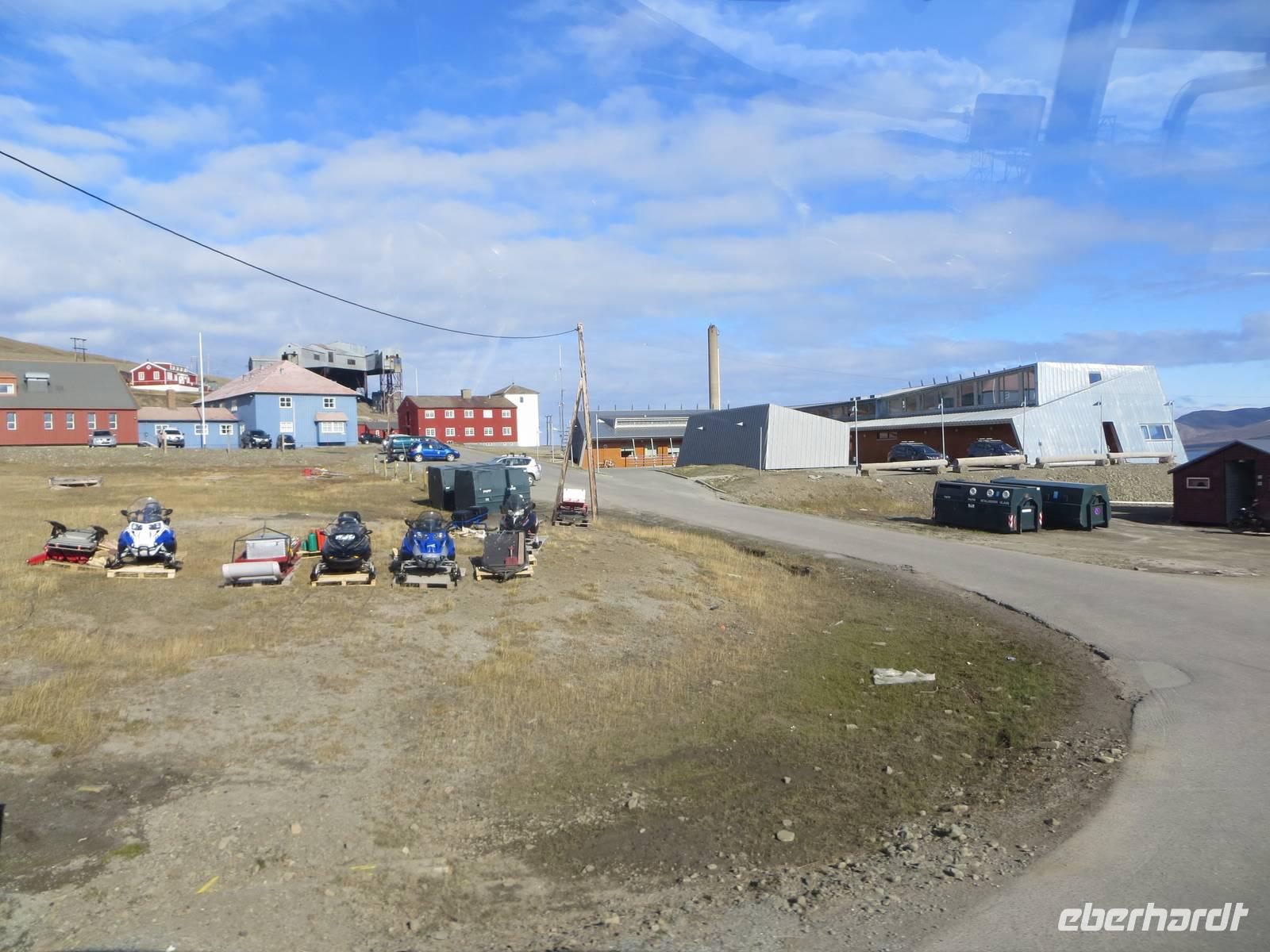 Die Mehrzahl unserer Gäste hatte sich für den Ausflug zu Kultur und Geschichte von Svalbard, wie Spitzbergen auch bezeichnet wird, entschieden. Mit dem Bus fuhren wir zuerst zur Grube 3 hinauf. Unterwegs berichtete unsere örtliche Reiseleiterin, eine Studentin der Meeresbiologie und seit dem Winter hier lebend, über die Geschichte des Bergbaus, die unterschiedlichen Nationen, die hier Steinkohle abbauen. Einer der größten Importeure der Kohle aus Spitzbergen soll Deutschland sein. Bei der Abfahrt von der Grube sahen wir den kleinen Flughafen, wo seit 1975 Flugzeuge landen und starten. Für die Bewohner, Studenten und Besucher eine ganz große Erleichterung, denn bis zu seiner Inbetriebnahme war das Kommen und Gehen nur mit dem Schiff in eisfreier Zeit möglich. Nach einem Blick über die Förderanlagen, vorbei an der kleinen Kirche des Ortes und einem Blick auf das Studentenviertel besuchten wir das Svalbard-Museum. Hier werden die Geschichte, die Tierwelt und das Leben der Bergleute, der Walfänger und der Tierfänger interessant dargestellt. Ein Leben voller Entbehrungen in teilweiser unwirtlicher Umgebung. Heute, so berichtete unsere Gästeführerin, ist das Leben auch in der dunklen Winterzeit annehmlich und interessant. Auch sorgen moderne Kommunikationsmöglichkeiten, hier so kurz vor dem Nordpol, für Kurzweil und Unterhaltung.