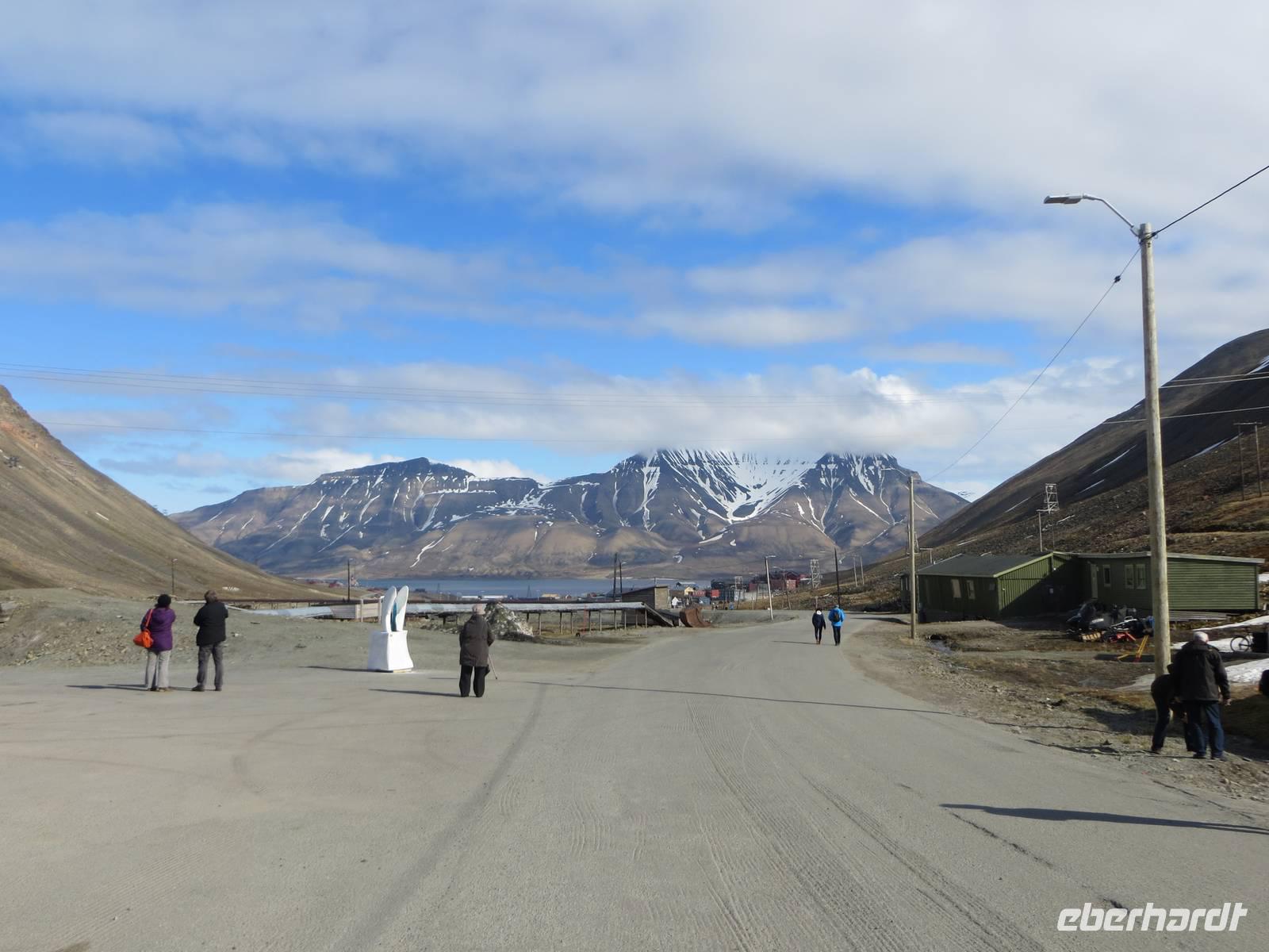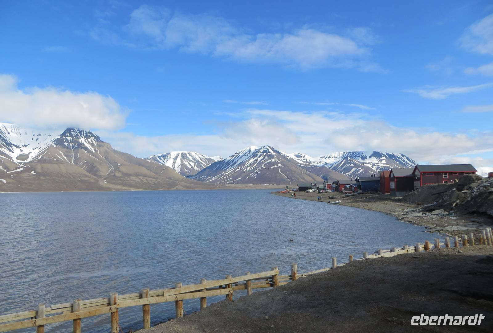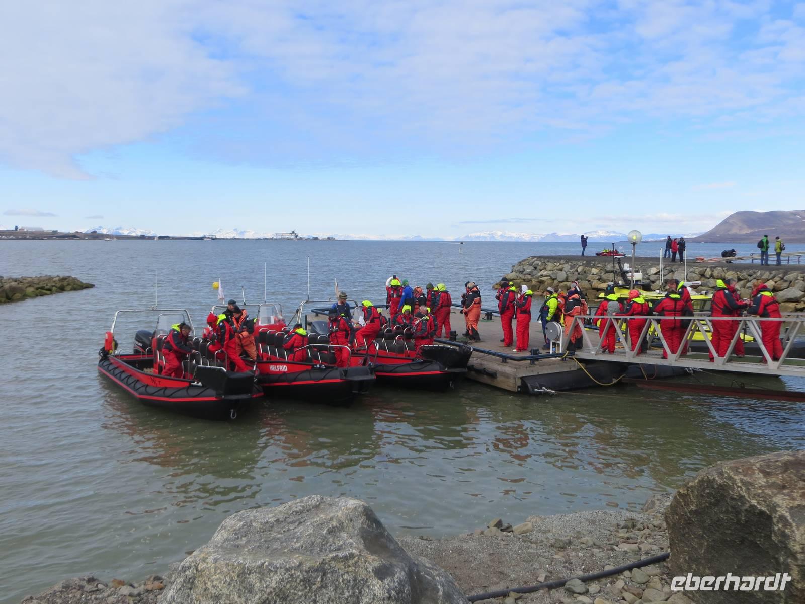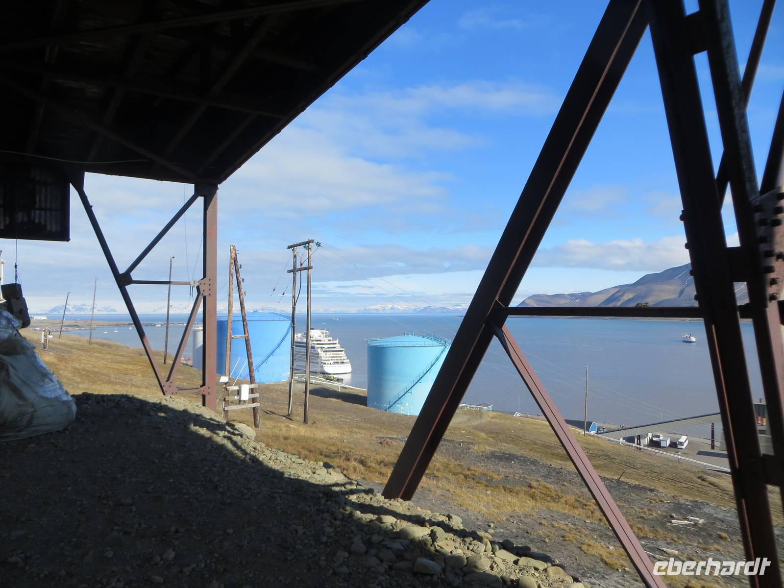 Die Nacht war erneut ruhig. Ganz langsam glitt die AIDAluna durch den Isfjord, erneut vor einer majestätischen Bergkulisse, der Siedlung Longyearbyen entgegen. Pünktlich 08.00 lagen wir am Hafenkai auf Spitzbergen. Ein gekonntes Manöver der Männer von der Brücke, doch das stimmte nicht ganz, denn die AIDAluna wurde heute von zarter Frauenhand gesteuert: Zweiter Offizier Isabell hatte das Kommando. Spektakulär, die Pier war zu kurz, und so ragte das Schiff einfach links und rechts darüber hinaus. Wir konnten problemlos am Deck 3 aus- und einsteigen. Alle fieberten dem Erlebnis Spitzbergen entgegen. Die Sonne lachte mit uns um die Wette und dies bei wohligen 5 °C und in der Sonne gefühlten 10 °C, frühlingshaft und für uns äußerst angenehm.