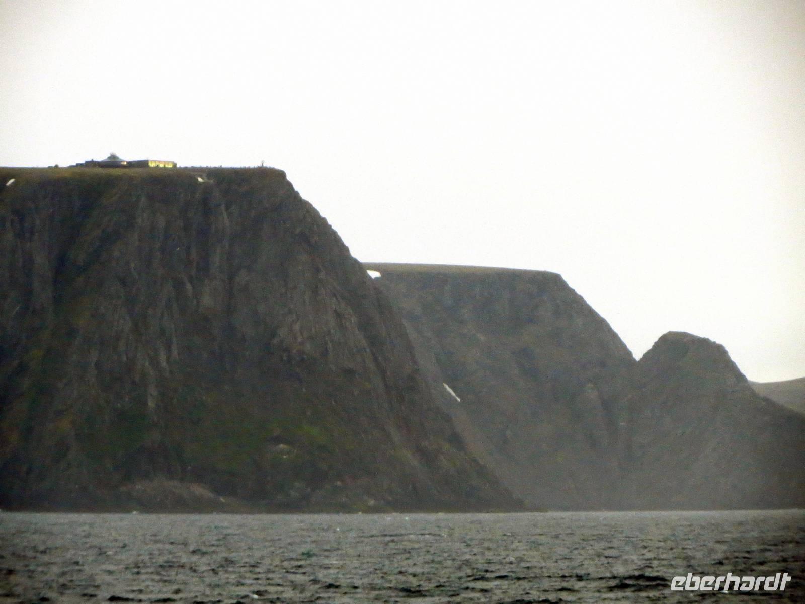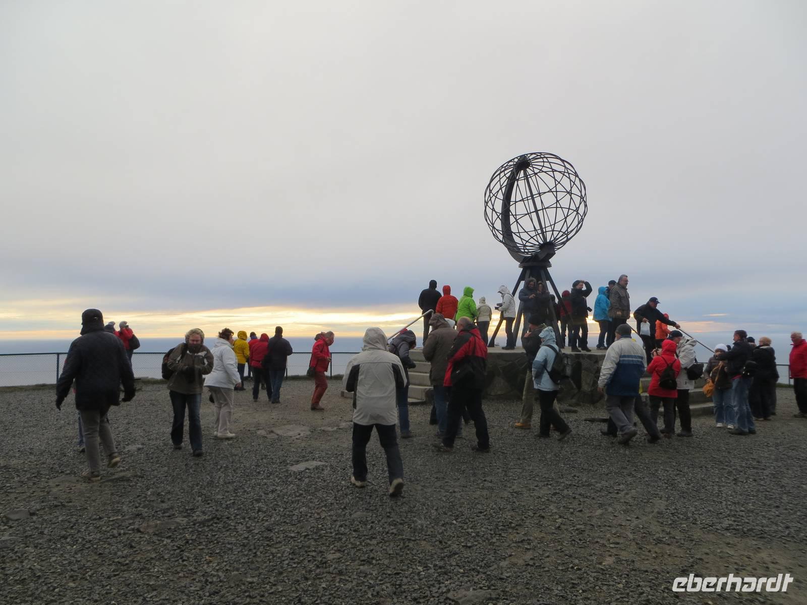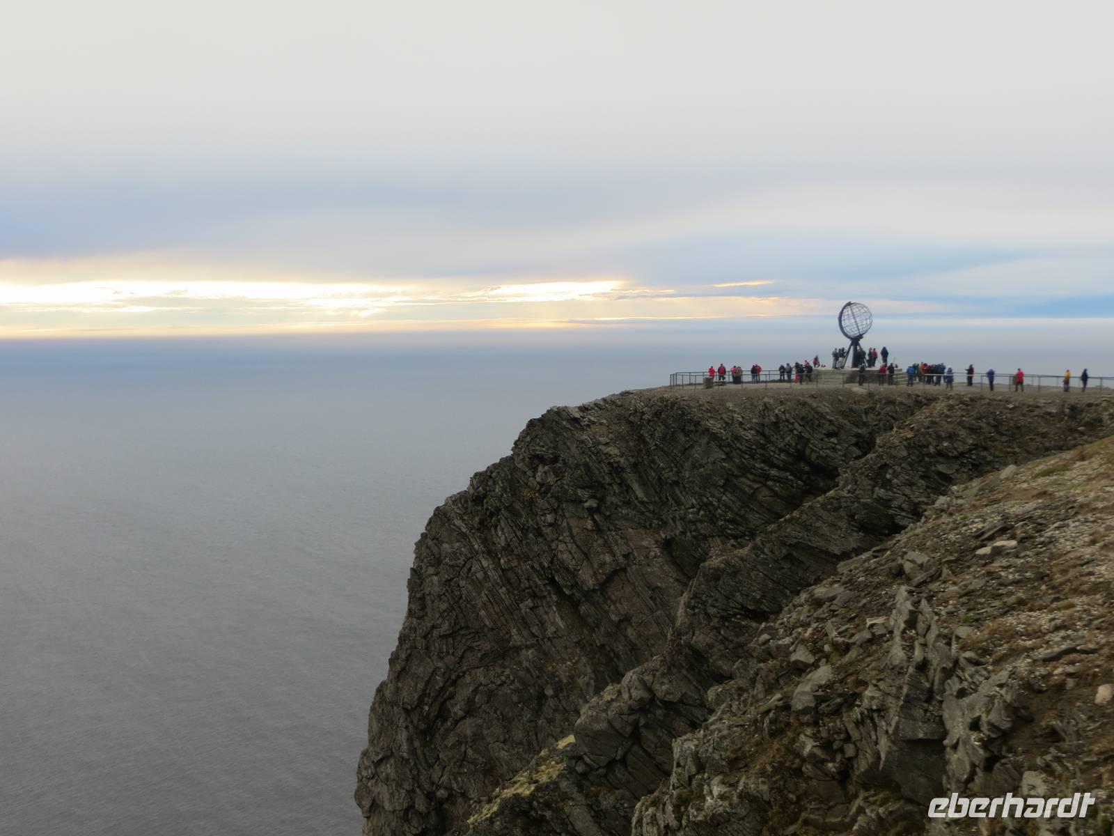 Am Obelisken mit der Weltkugel schauten wir in die Tiefe (307 Meter) und blickten zum Horizont. Wir spürten die besondere Magie dieses Ortes, des mit 71 ° 10' 21'' Nördlichsten Punktes Europas. In der modernen Nordkap-Halle (1988) besuchten wir das Kino mit dem Panoramafilm über die Jahreszeiten am Kap, bestaunten in der Lichthöhle die neue Ton- und Lichtinstallation - natürlich stöberten wir auch im Souvenirshop.