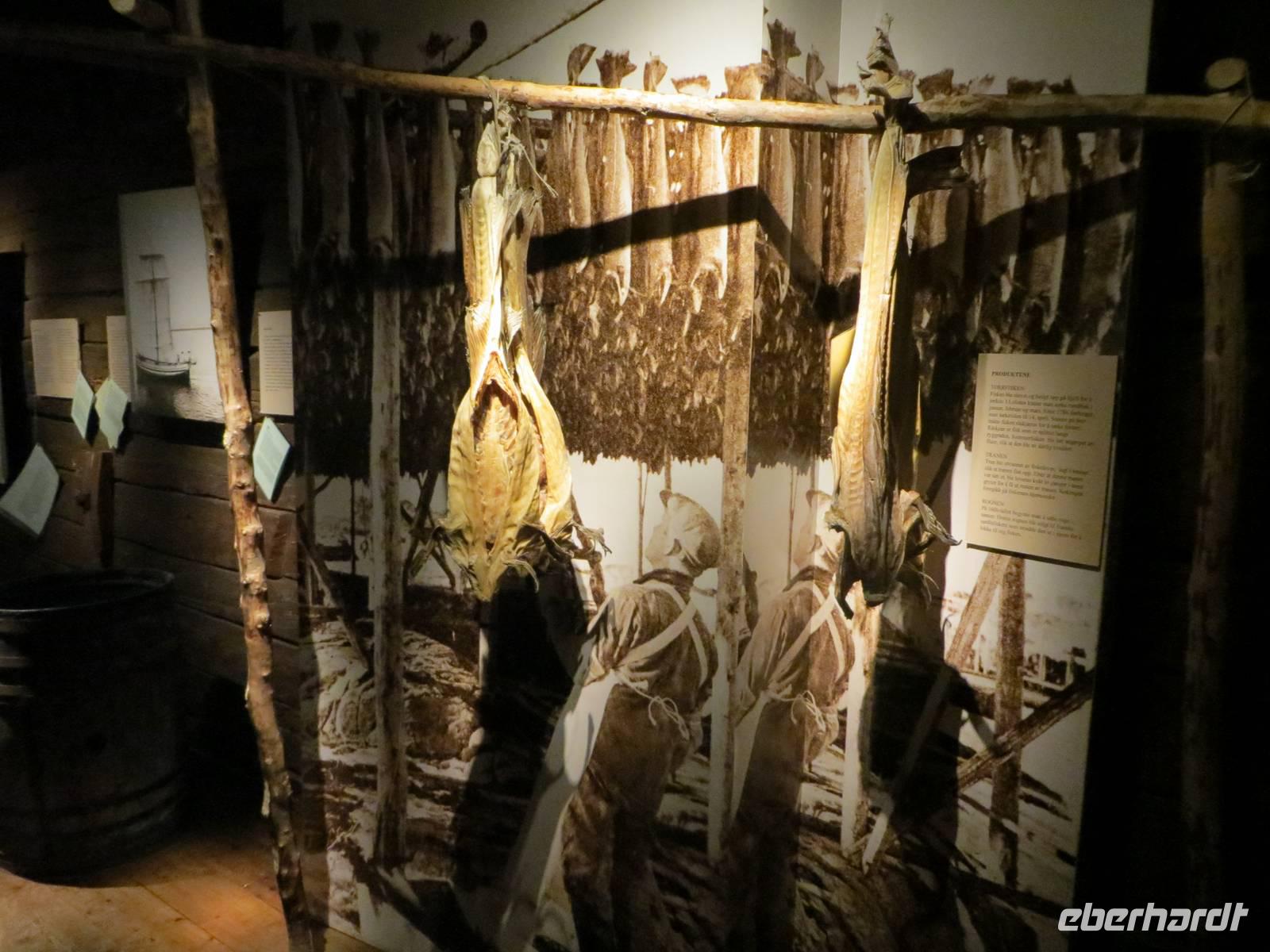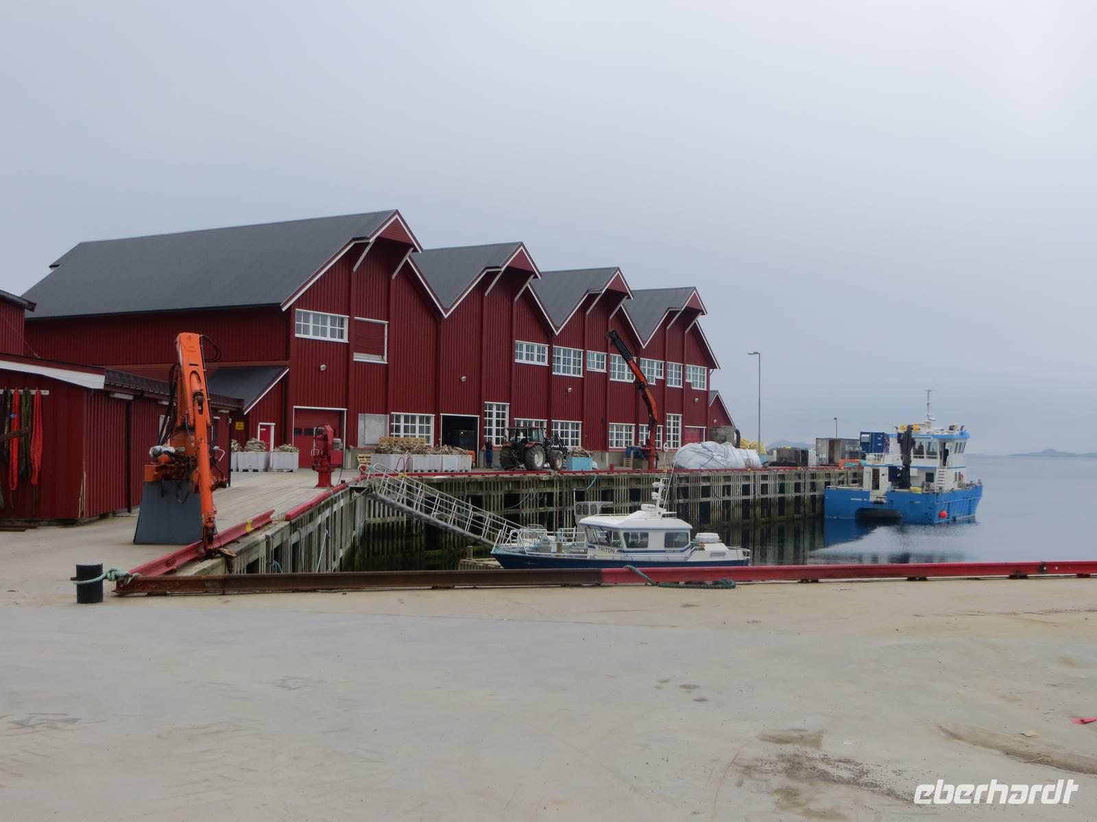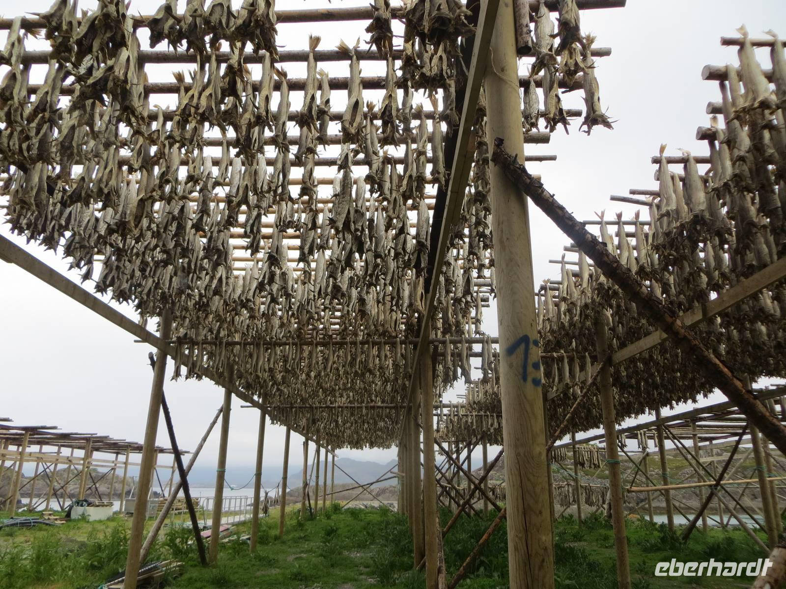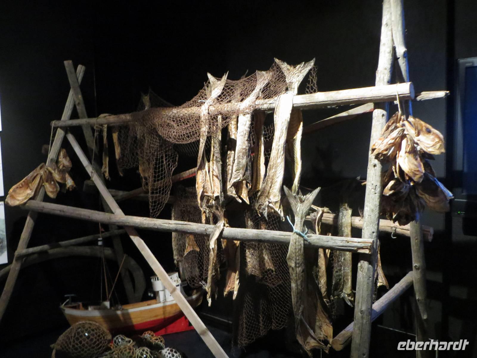 14 °C, neblig und leicht bewölkt so zeigte sich der Morgen. Unsere AIDAluna liegt heute in der Bucht vor Gravdal auf Reede. Zum ersten und einzigen Mal war Tendern angesagt. Also trafen wir uns etwas eher und fuhren mit einem der ersten Tenderboote zur Pier hinüber. Hier begrüßte uns unsere örtliche Reiseleiterin Magdalena zu unserem zweiten Eberhardt-Inklusiv-Ausflug während unserer Kreuzfahrt. Sie führte uns sehr sachkundig und engagiert über die Hauptinsel Vestvagøy. Zuerst fuhren wir durch das Verwaltungszentrum der Lofoten, Leknes, nach Stamsund. Unterwegs stoppten wir an einem ganz kleinen Hafen, und sahen die Stockfisch-Herstellung, wo die Fische bis zu 70 Prozent ihrer Flüssigkeit abgeben. Magdalena erläuterte das Verfahren, die einzelnen Qualitätsstufen und die unterschiedlichen Zubereitungsarten. Kennen Sie den Unterschied zwischen Stock- und Klippfisch? Gern lüften wir das Geheimnis bei einer unserer Reisen.