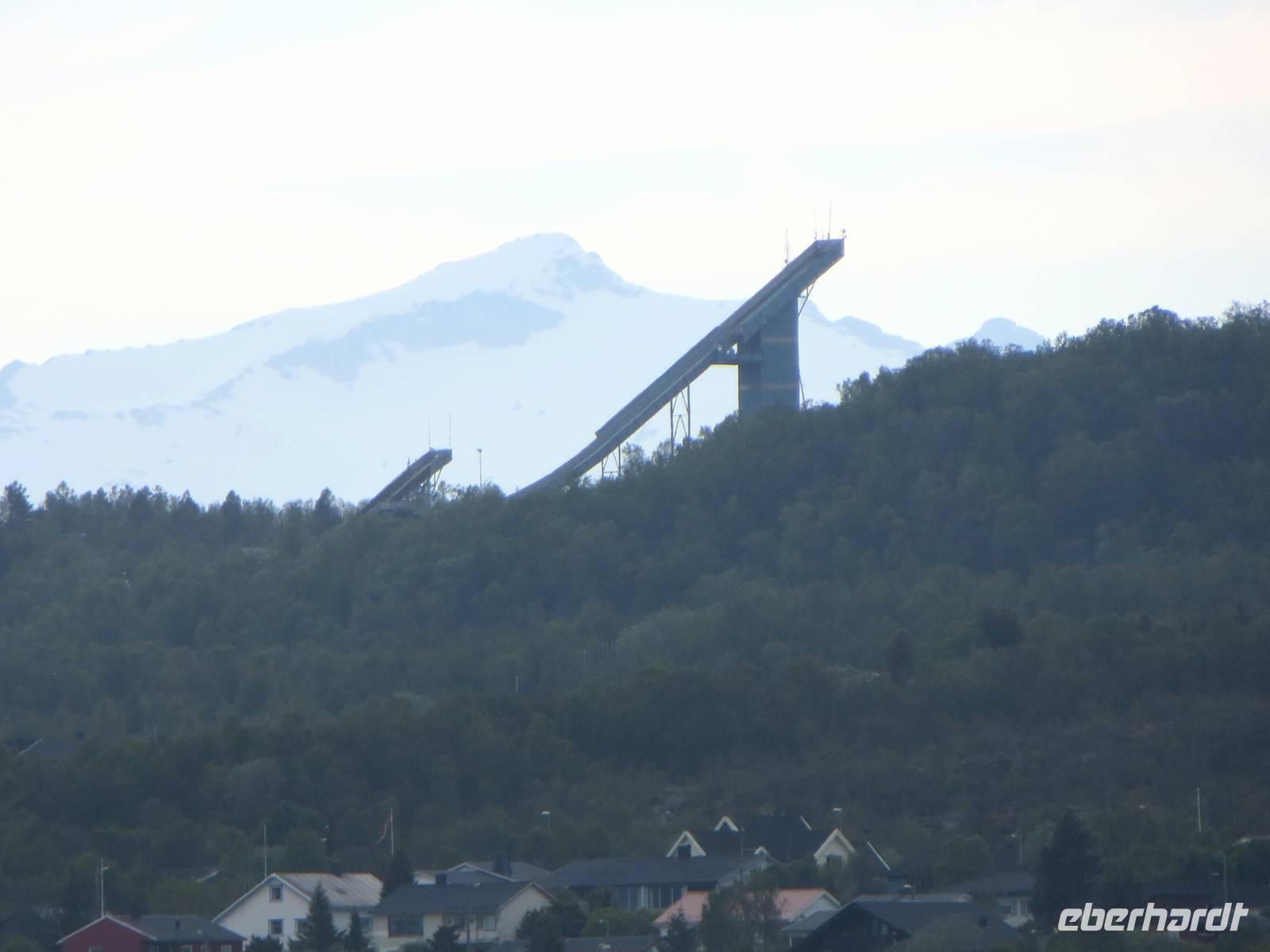 17.00 Uhr legten wir pünktlich ab und verließen das „Paris des Nordens" mit Blick auf die drei imposanten Skisprungschanzen. Schon beim puren Anblick verschlägt es einem den Atem, steil, fast aufrecht ragen sie in den Himmel. Dort fahren die mutigen Athleten hinab, um sich im Kampf um den weitesten Sprung in die Luft zu katapultieren ... äußerste Hochachtung und kaum vorstellbar.