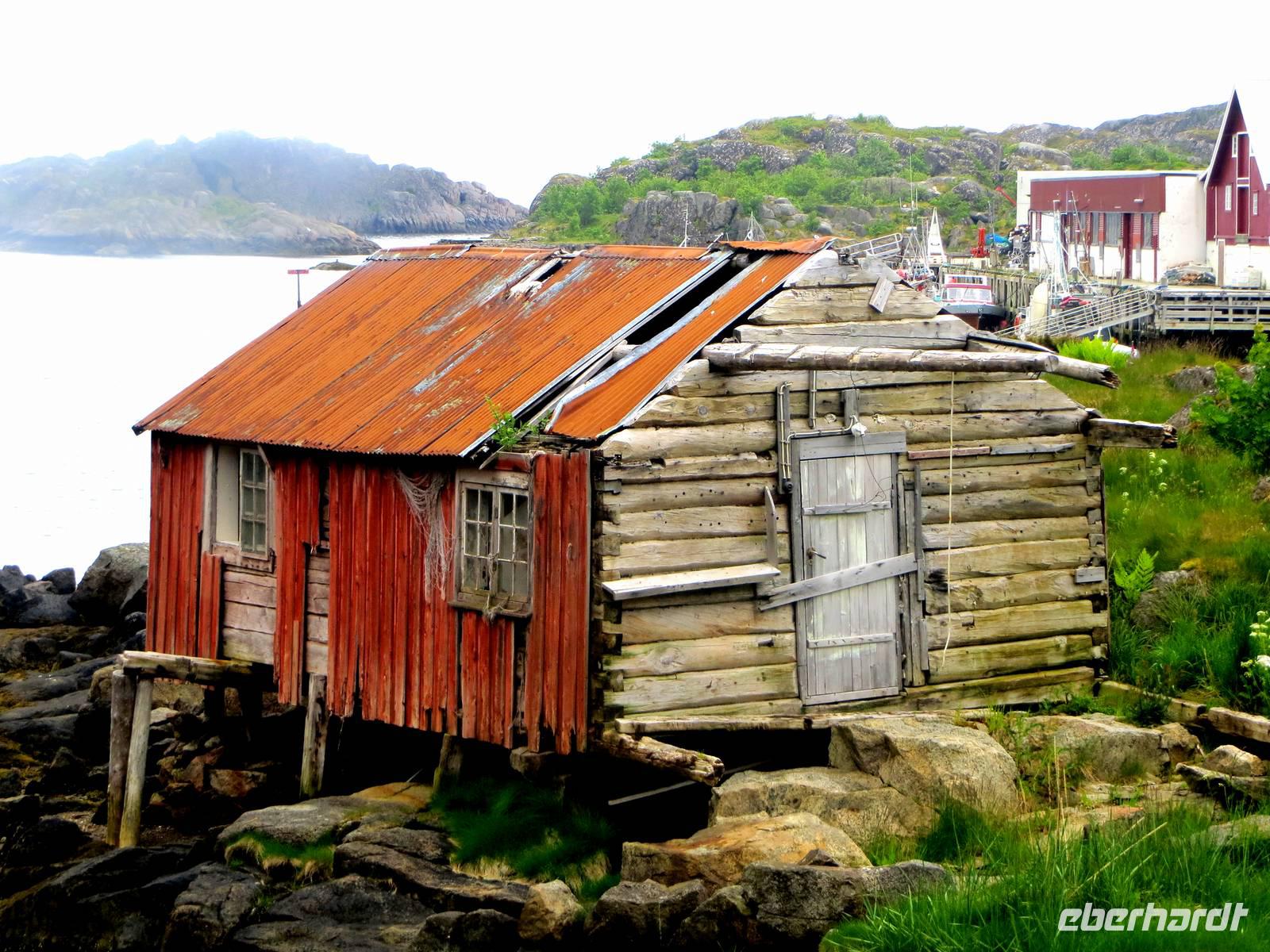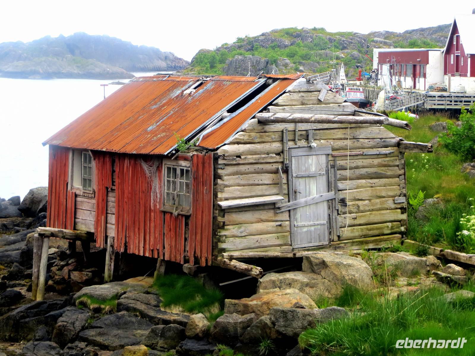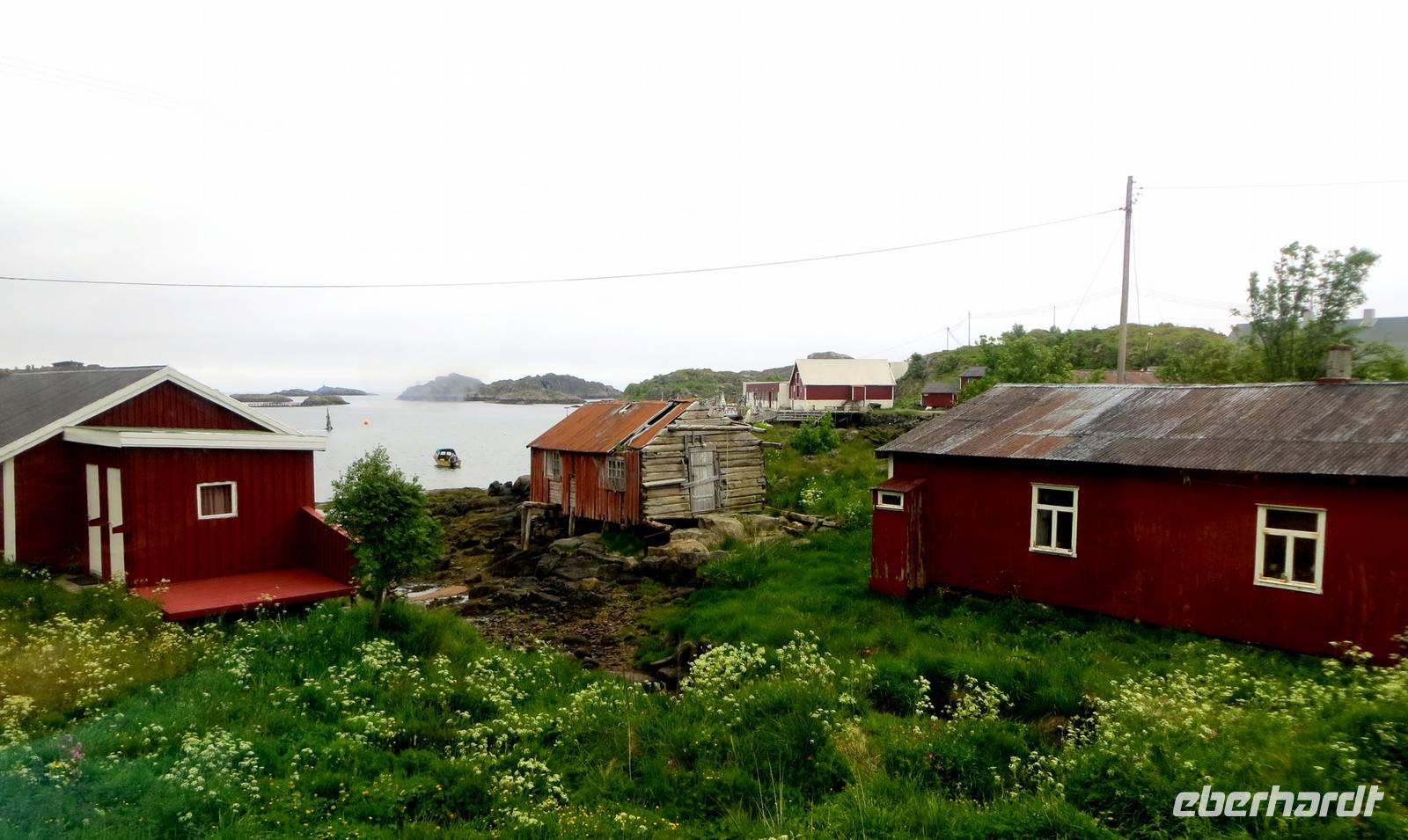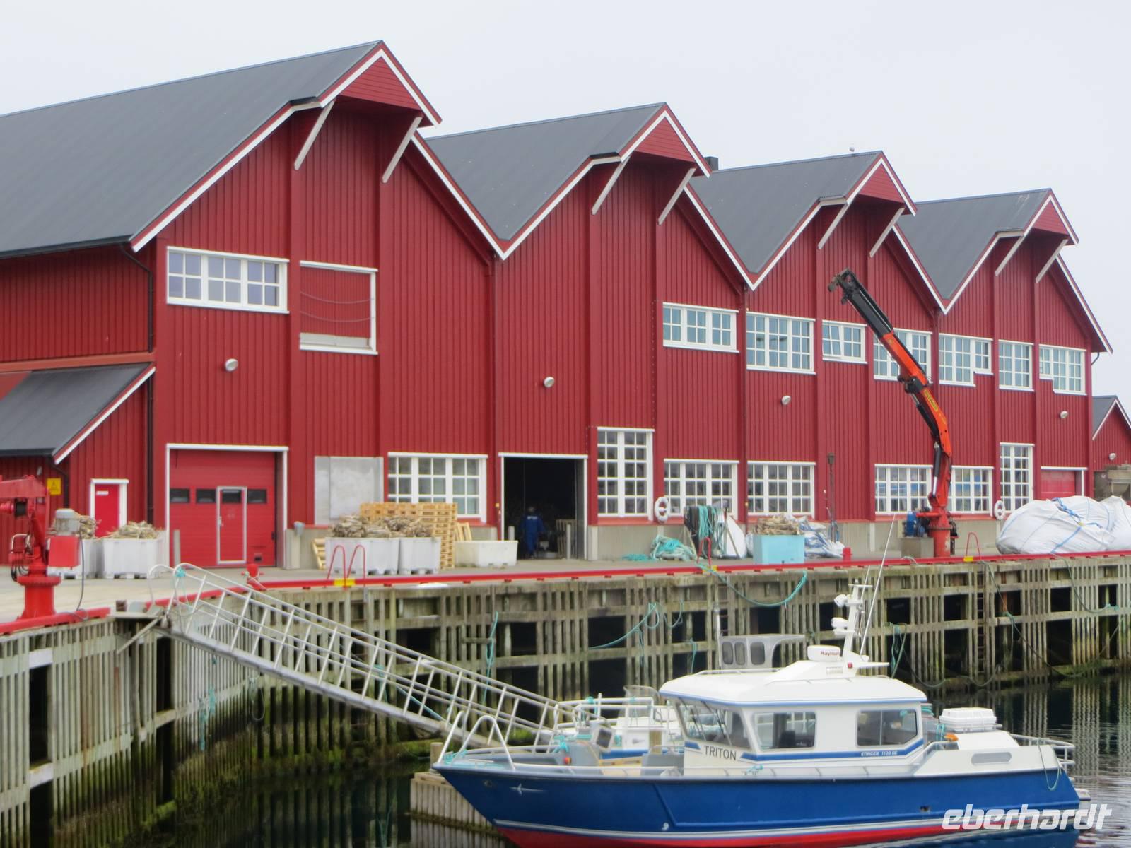 Nächste Station unserer Rundfahrt war Stamsund, neben Svolvaer einer der Häfen der Hurtigrute. Unterwegs sahen wir auch die älteste der Rorbus-Hütten. Diese Hütten boten früher den Fischern Unterkunft und dienten zur Aufbewahrung der Netze und Leinen. Typisch in Farbe und Form: Rot gestrichen und auf Pfählen im Meer stehend. Wussten Sie, dass das Rot früher eine praktische, billige Farbe war und aus Lebertran und dem Blut der Fische hergestellt wurde? Heute werden synthetische Farben verwendet und die nun modernisierten Hütten an Touristen vermietet.
