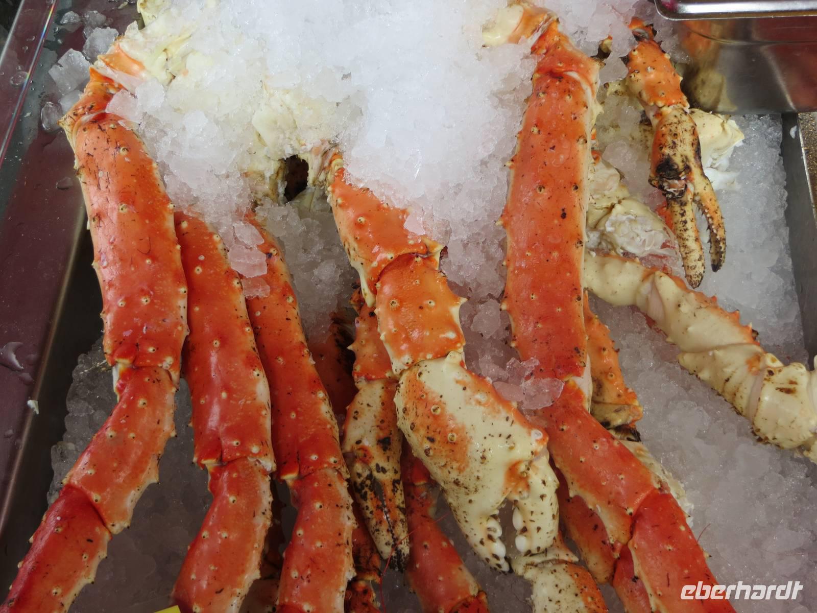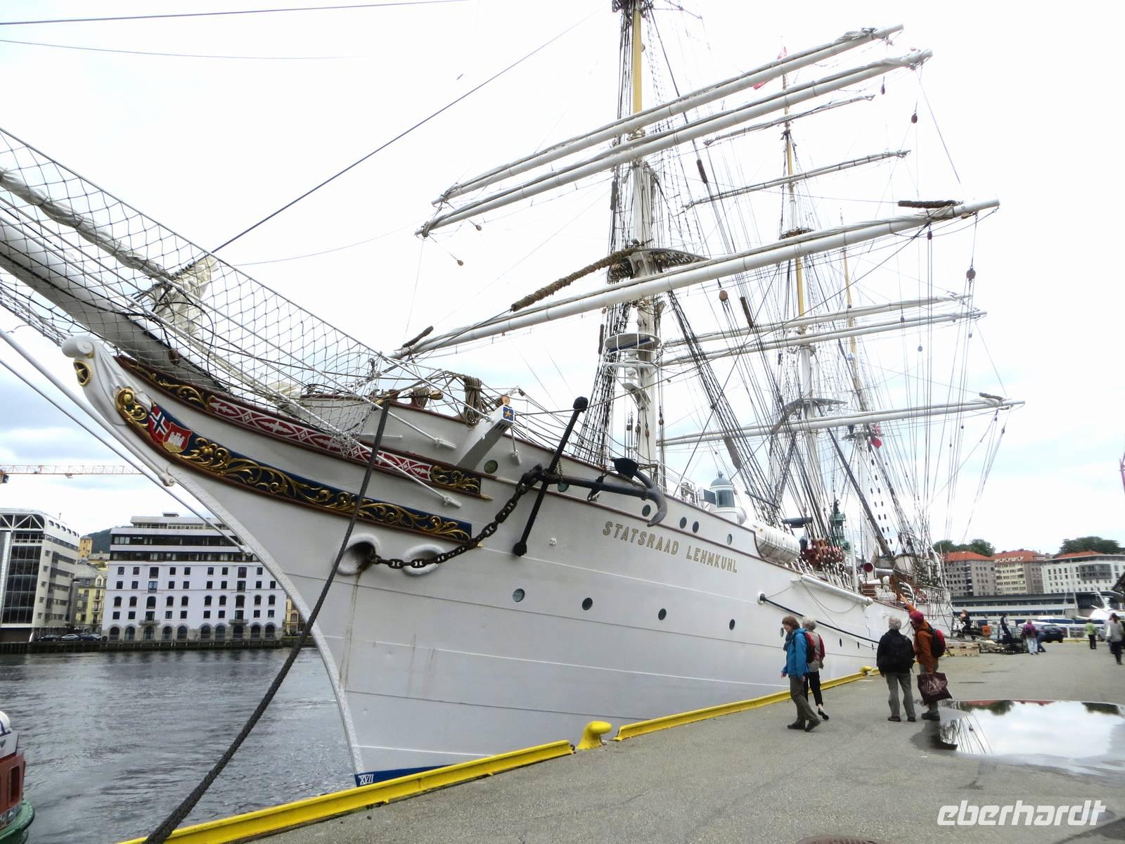 Nach der Talfahrt mit der Floyenbahn besichtigten wir in der Altstadt das kleinsten Haus und die engste Gasse. Am berühmten Fischmarkt endete unser Spaziergang. Nun schlenderten wir individuell zwischen den verschiedenen Ständen, probierten ein leckeres, frisches Fischbrötchen sowie Lachs mit oder ohne Kräuterkruste - ein Gedicht ... der Lachs zerging förmlich auf der Zunge, so frisch und so gut geräuchert. Natürlich kosteten wir auch von den Salamisorten: Rentier-, Elch- und Walfischsalami. Auch diese sind schmackhaft, ja äußerst köstlich. Und so geht das ein oder andere dieser Exemplare mit an Bord und später nach Hause. Vorbei am Hanseviertel Bryggen und am Segelschulschiff „Statsraad Lehmkuhl" schlenderten wir zurück zur AIDAluna.