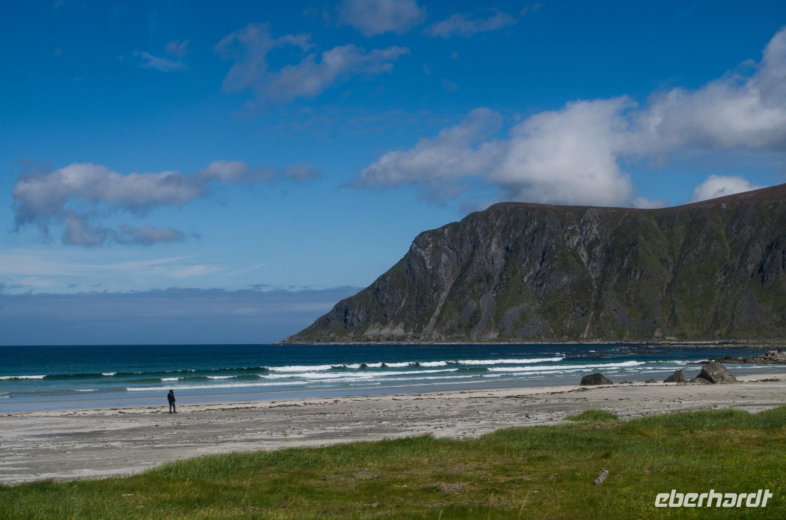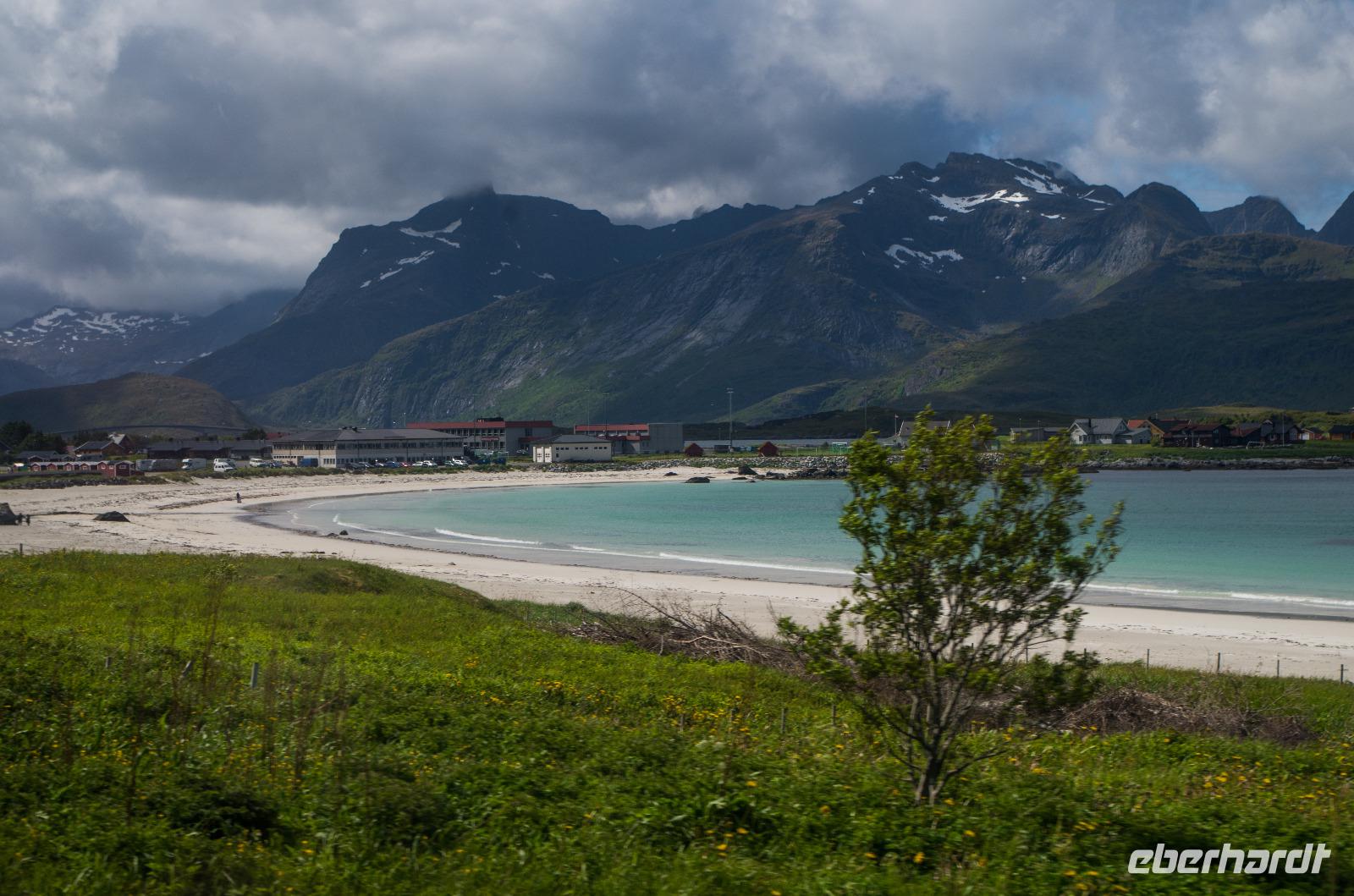 Auf dem Weg zu unserem ersten großen Tagesziel, dem Bilderbuchdorf Reine, passierten wir Ramberg und seinen berühmten hellen Sandstrand, auch liebevoll Copa Cabana der Lofoten genannt.