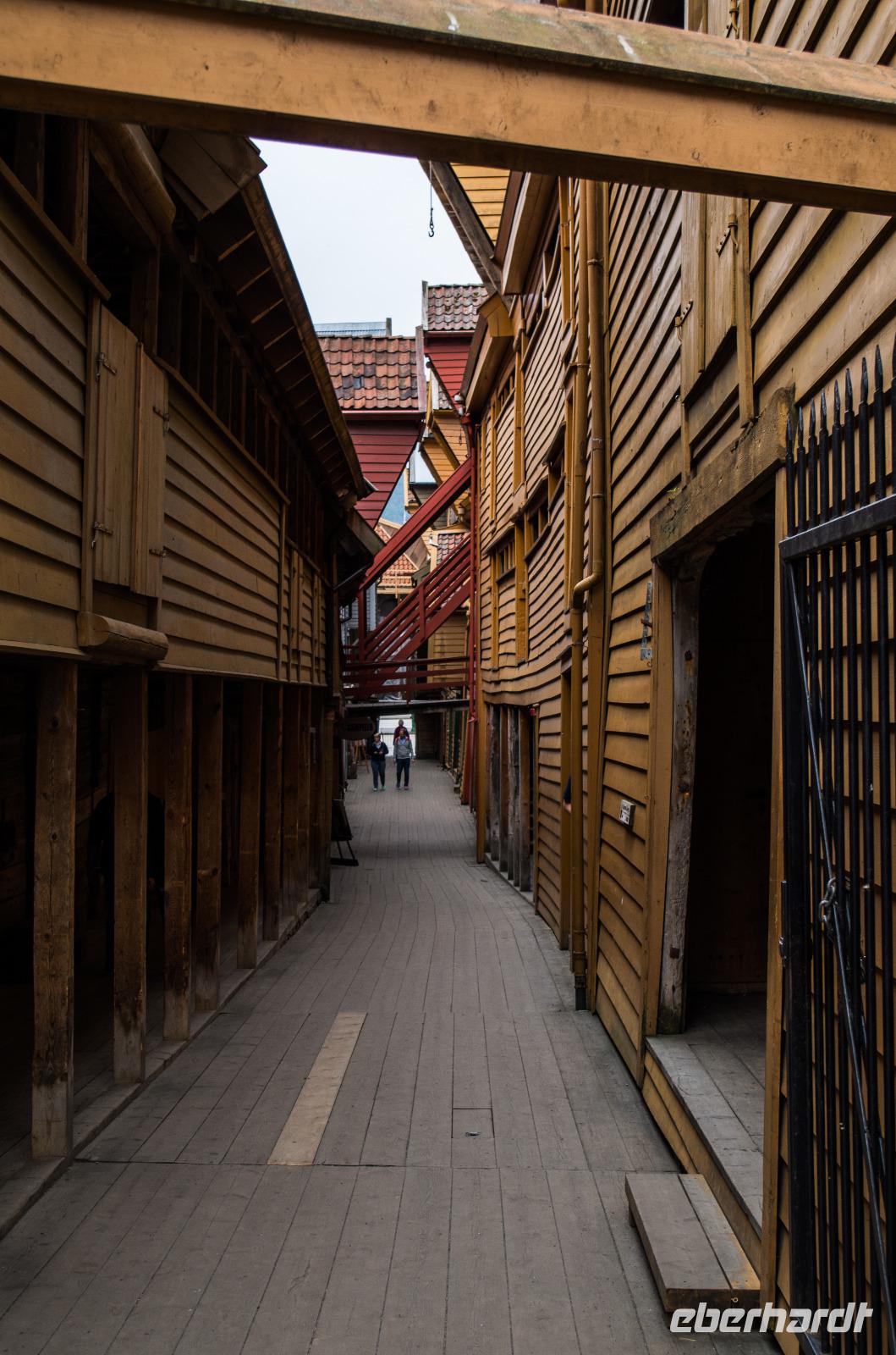 Zunächst spazierten wir aus dem Hafengelände in Richtung des berühmten Hanseviertels Bryggen. Doch bevor wir uns den bunten Hansehäusern näherten, bog Bertil mit uns ab in Richtung Marienkirche, die wir zunächst nur von außen, später am Tag auch von innen besichtigten. Wir betraten Bryggen von hinten und bekamen so einen besonderen Einblick in die Bauweise des Häuser. Bertil berichtete über die Entstehung und Geschichte des Viertels. Später bekamen wir beim Besuch des Hanseatischen Museums einen tieferen Einblick in die Geschichte der Hanse und den Alltag eines Gildenmitgliedes.