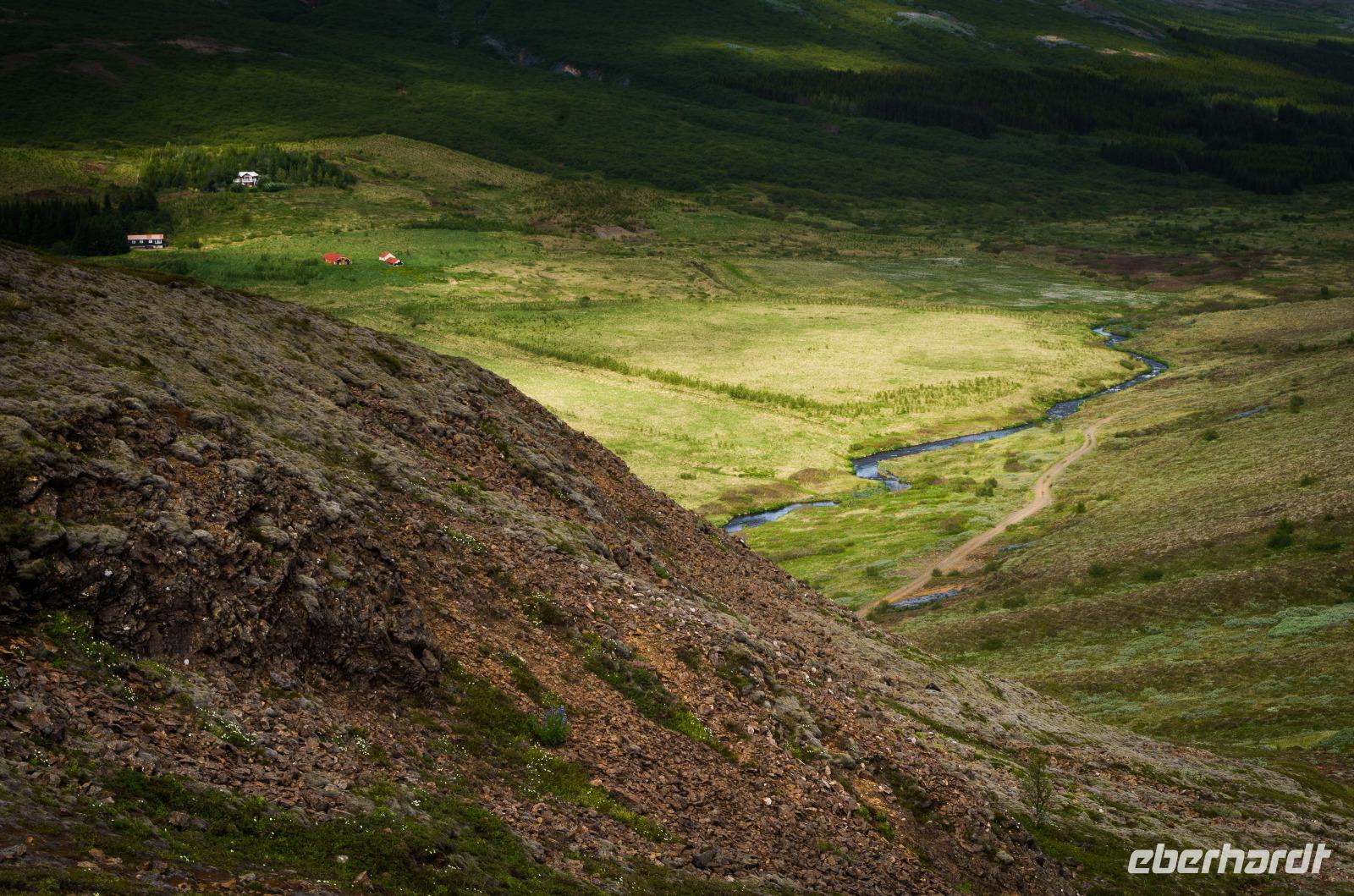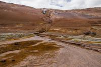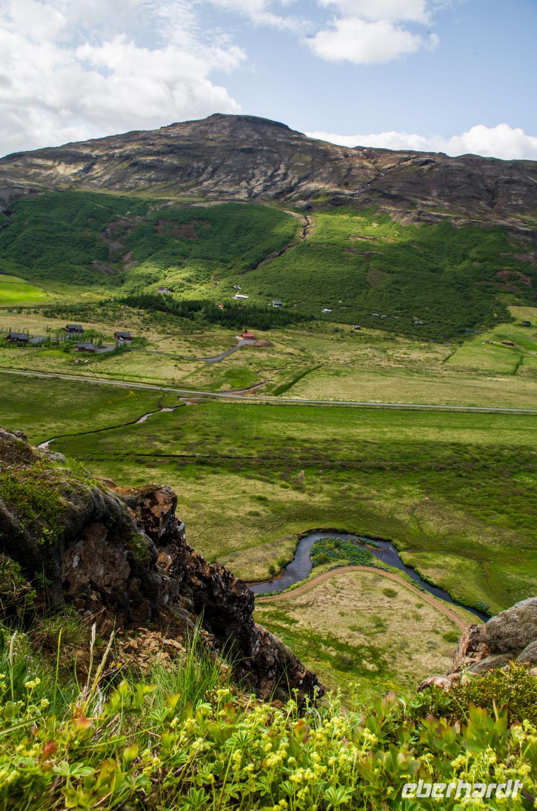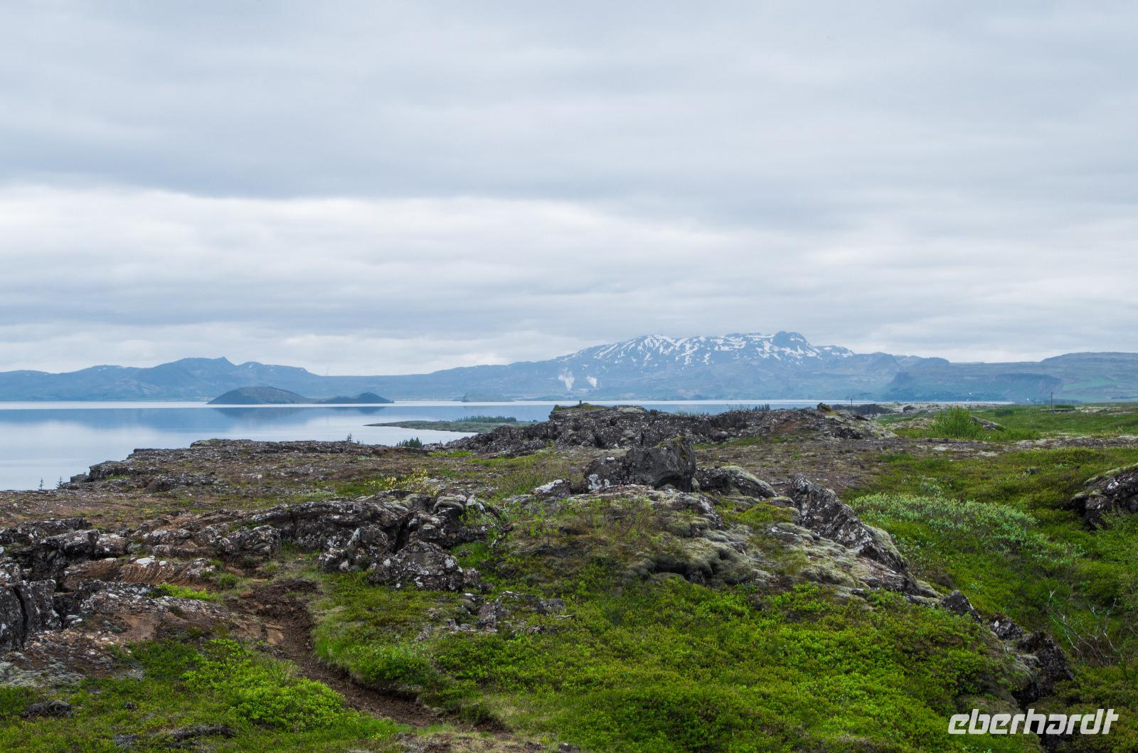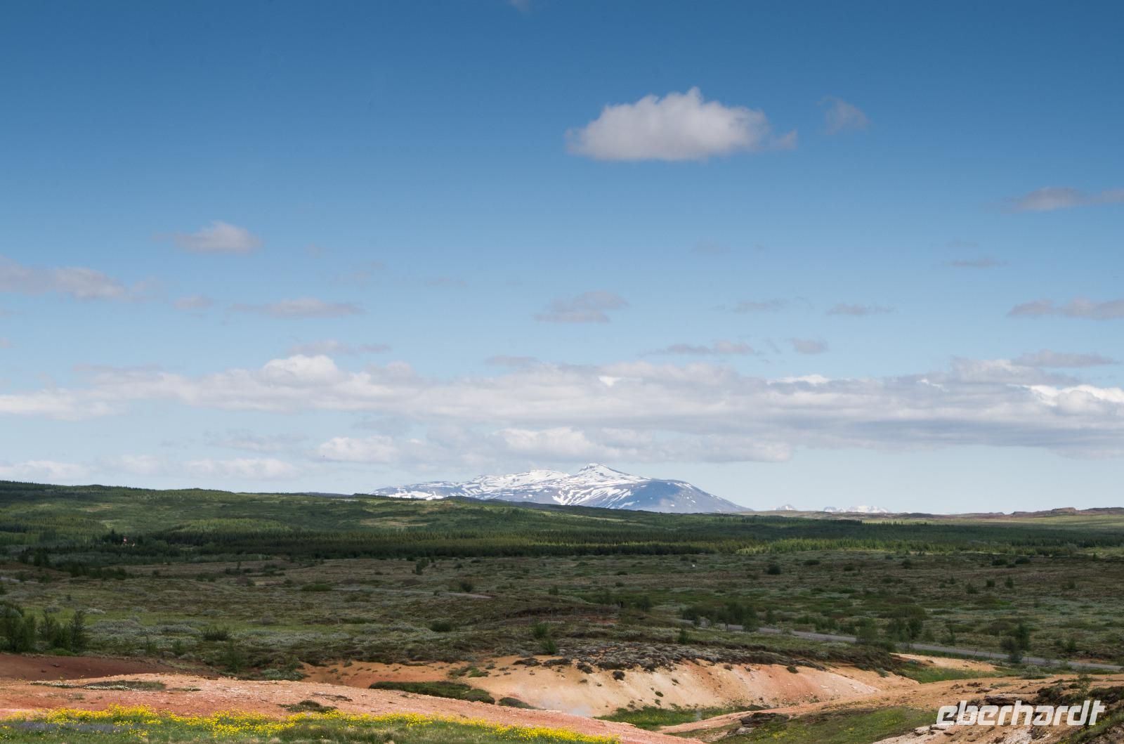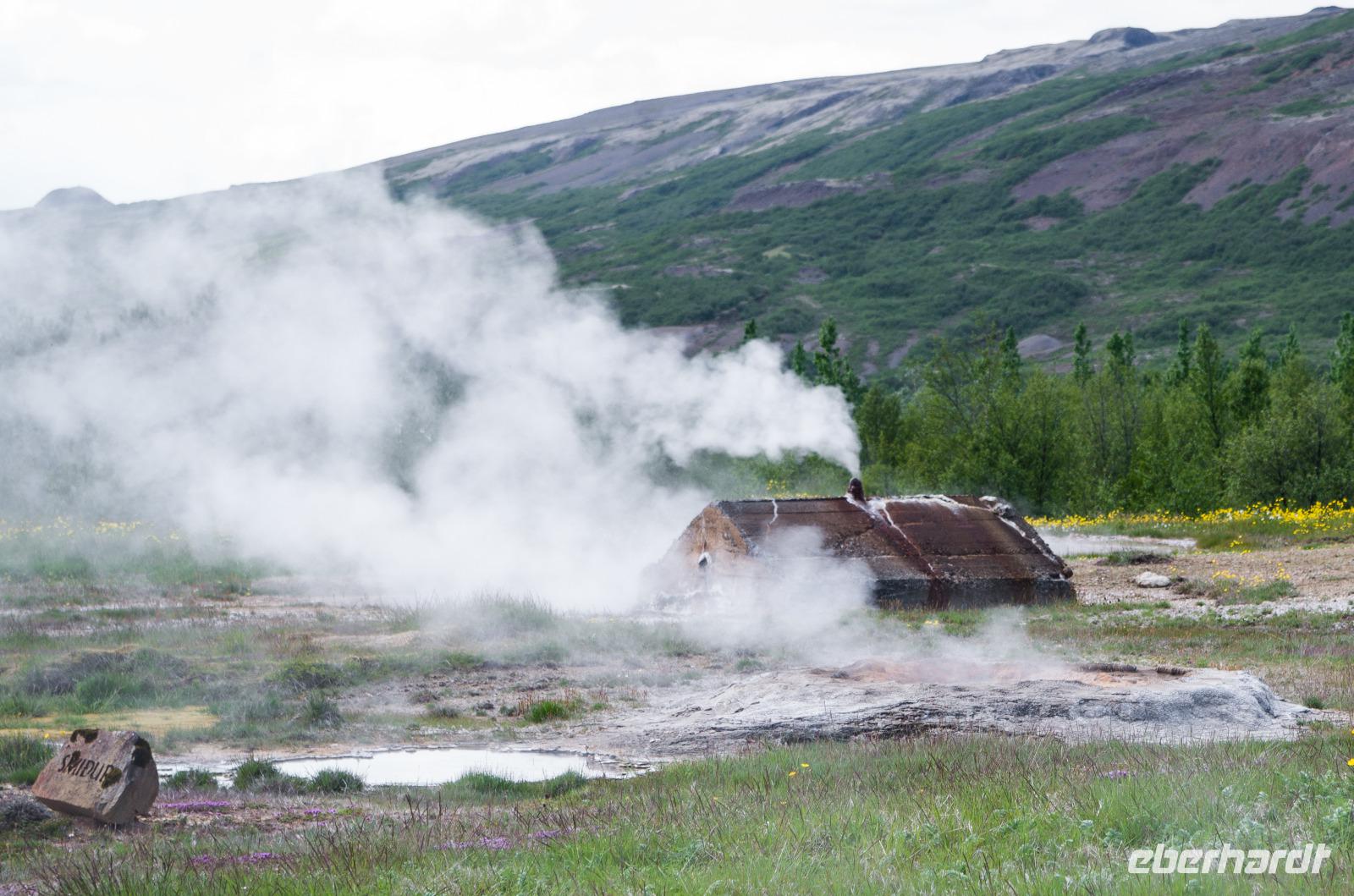 Auf dem Weg zu den heißen Schwefelquellen in Namaskard passieren wir eine kleine blaue Lagune, die man früher gern zum Baden benutzte. Heute ist dies wegen angeblicher Lebensgefahr untersagt - vielleicht bezieht sich das aber eher auf die Quelle als auf die Menschen? Walter, ein ehemaliger Landwirt, berichtet viel Interessantes über Flora und Fauna und natürlich die hiesige Landwirtschaft. Und dann tauchen sie plötzlich hinter einem Bergrücken auf - die brodelnden Schlammquellen. Unverkennbar ist der starke Schwefelgeruch, an den man sich erst einmal gewöhnen muss. Auch sollte man vorsichtig mit dem Berühren der heißen Schwefelquellen sein, schon manch einer hat sich hier die Finger verbrannt. Faszinierend ist nicht nur der Geruch, sondern sind auch die Farben, die im durchblitzenden Sonnenschein herrlich glitzern und strahlen. Früher hat man den gelblich schimmernden Schwefel hier von Hand abgetragen - die Maniküre konnte man sich dann wohl sparen.