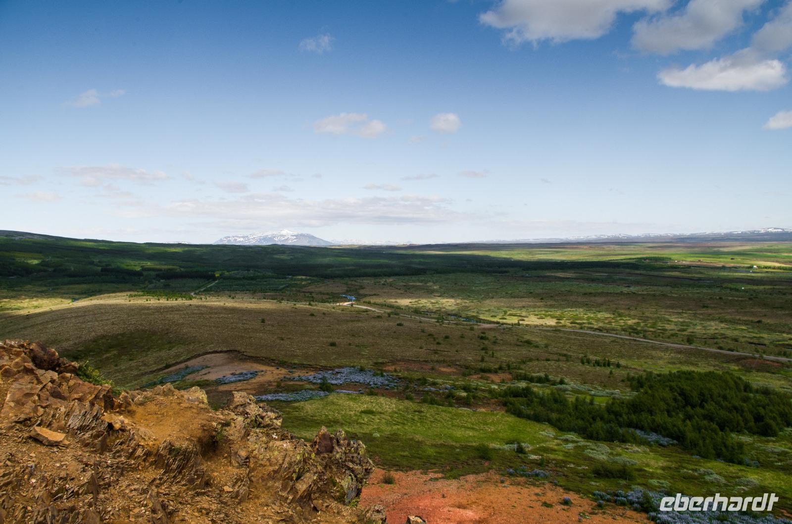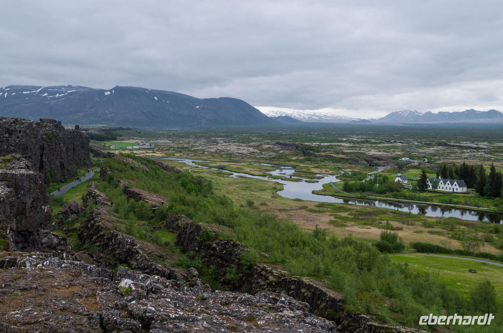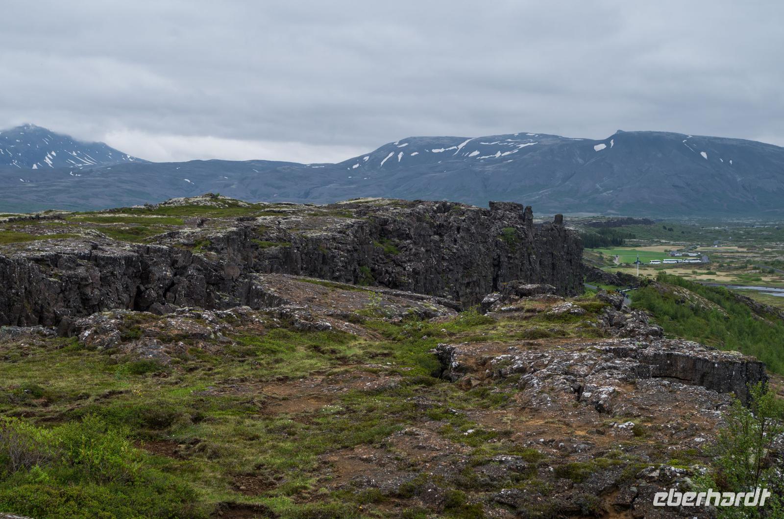 Bei Sonnenschein und warmen 14°Celsius zeigte sich die isländische Hauptstadt von ihrer besten Seite. Bis auf 4 Gäste machte sich die gesamte Eberhardt-Reisegruppe am Vormittag auf den Weg zu einer spannenden Entdeckertour in das Landesinnere. Unsere Reiseleiterin Kolfinna ist eine echte Isländerin. Die Liebe zu ihrem Heimatland lässt sie nicht los, denn obwohl sie seit einigen Jahren schon als Journalistin in Brüssel tätig ist, kommt sie doch immer wieder gern in ihre Heimat zurück und führt Gäste zu den schönsten Plätzen der Insel. So wusste sie uns viel Interessantes über die Geschichte ihres Landes, angefangen von den Wikingern bis zu den neuesten politischen, kulturellen und wirtschaftlichen Entwicklungen des Landes zu berichten. Auf dem Weg zum Thingvellir Nationalpark erfuhren wir vom ersten Parlament der Welt, Althing, welches aus Abgeordneten der verschiedenen Wikingerfamilien bestand, die sich für 2 Wochen jeden Sommer hier im heutigen Thingvellir Nationalpark trafen, um die Geschicke ihres Volkes zu besprechen und Gericht zu halten. Der Versammlungsort befindet sich im sogenannten Niemandsland, dem Gebiet zwischen der eurasischen und nordamerikanischen Erdplatte. Überhaupt ist die Insel durch diesen Umstand ein Paradies für alle Geologen, Physiker und Biologen. Denn nichts hat die Insel mehr geprägt als ihre Lage auf den beiden jährlich um 2 Zentimeter auseinanderdriftenden Erdplatten.