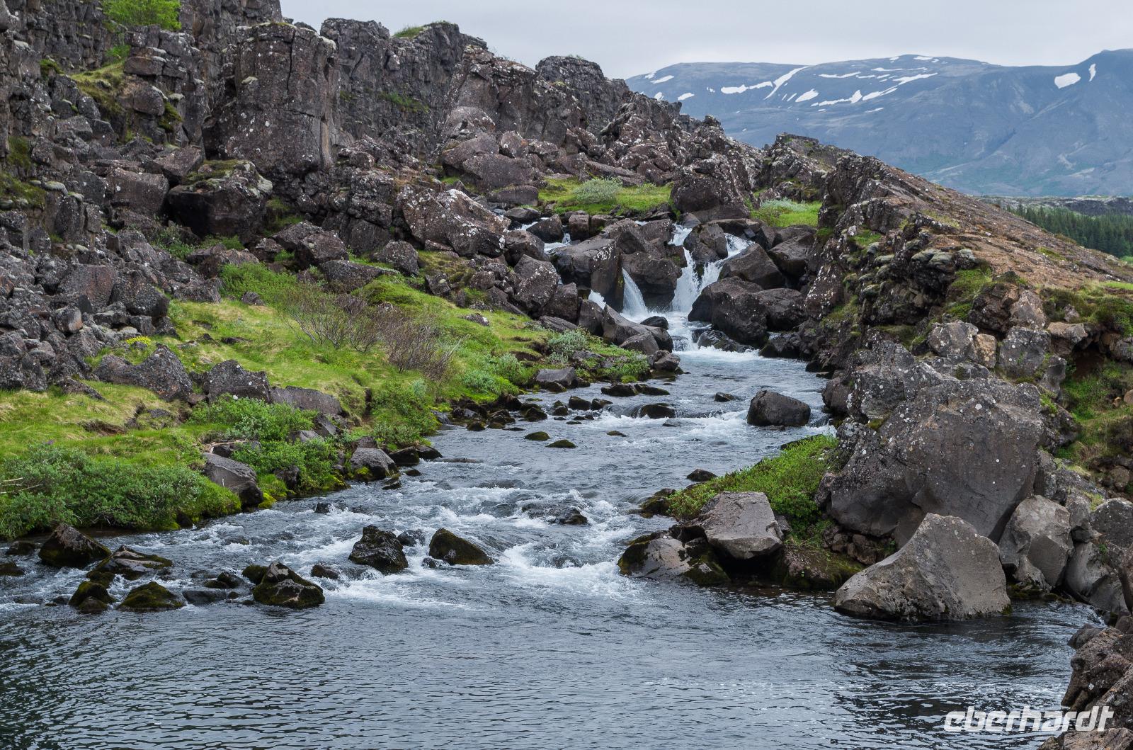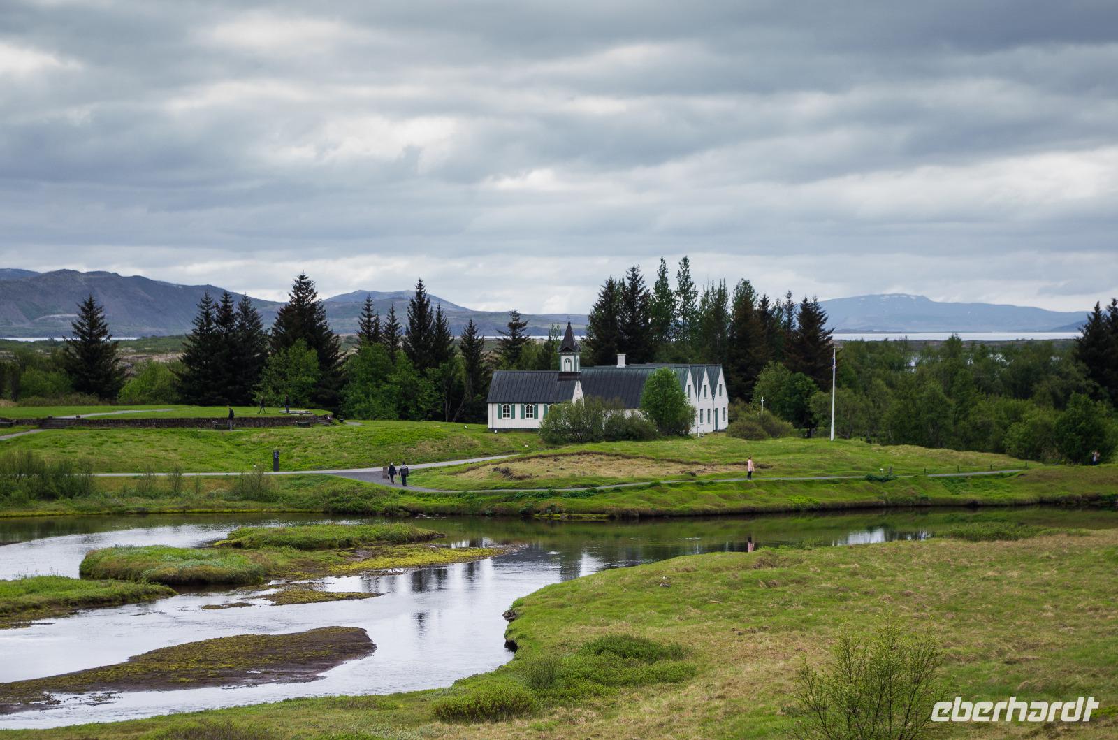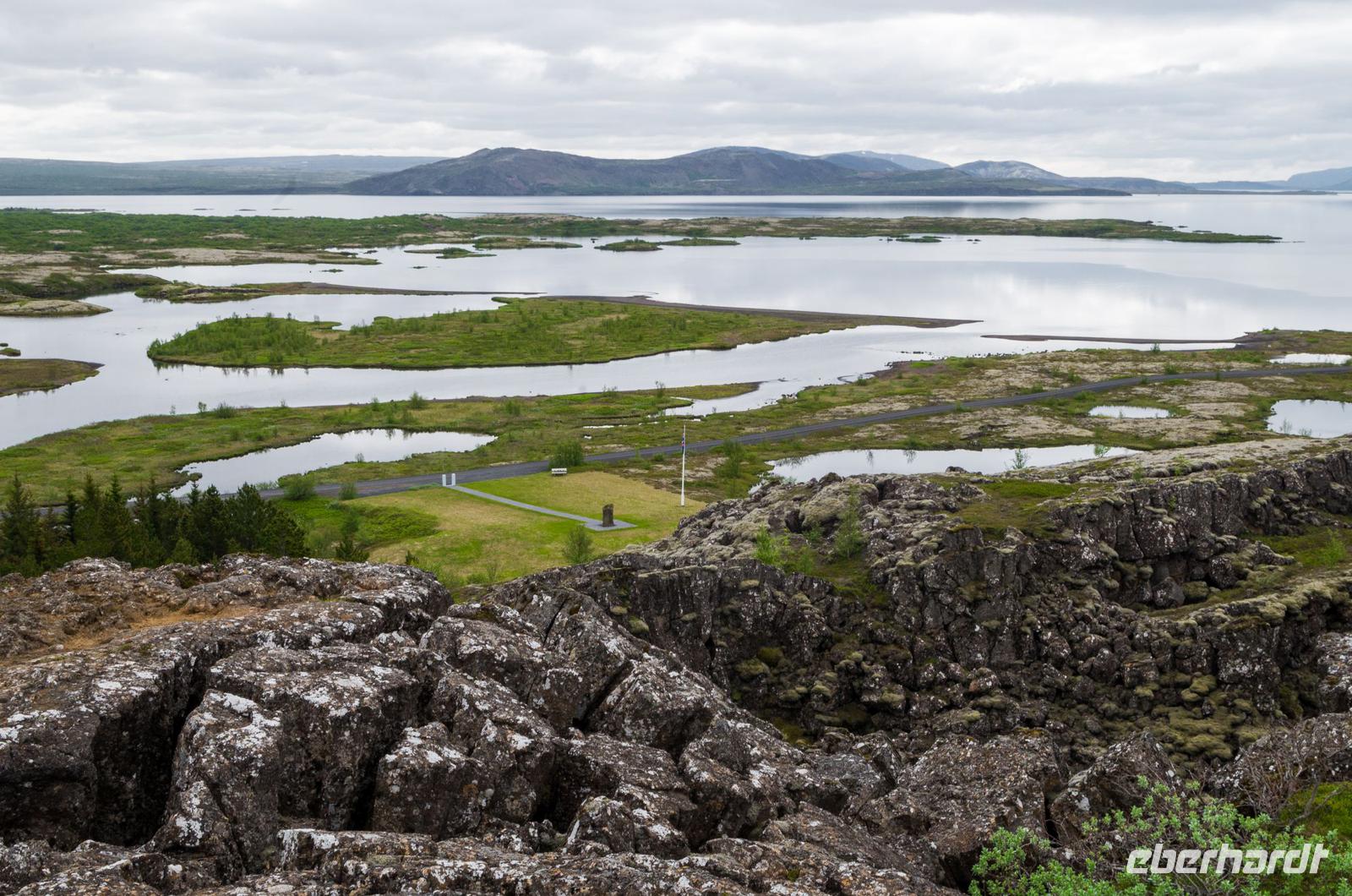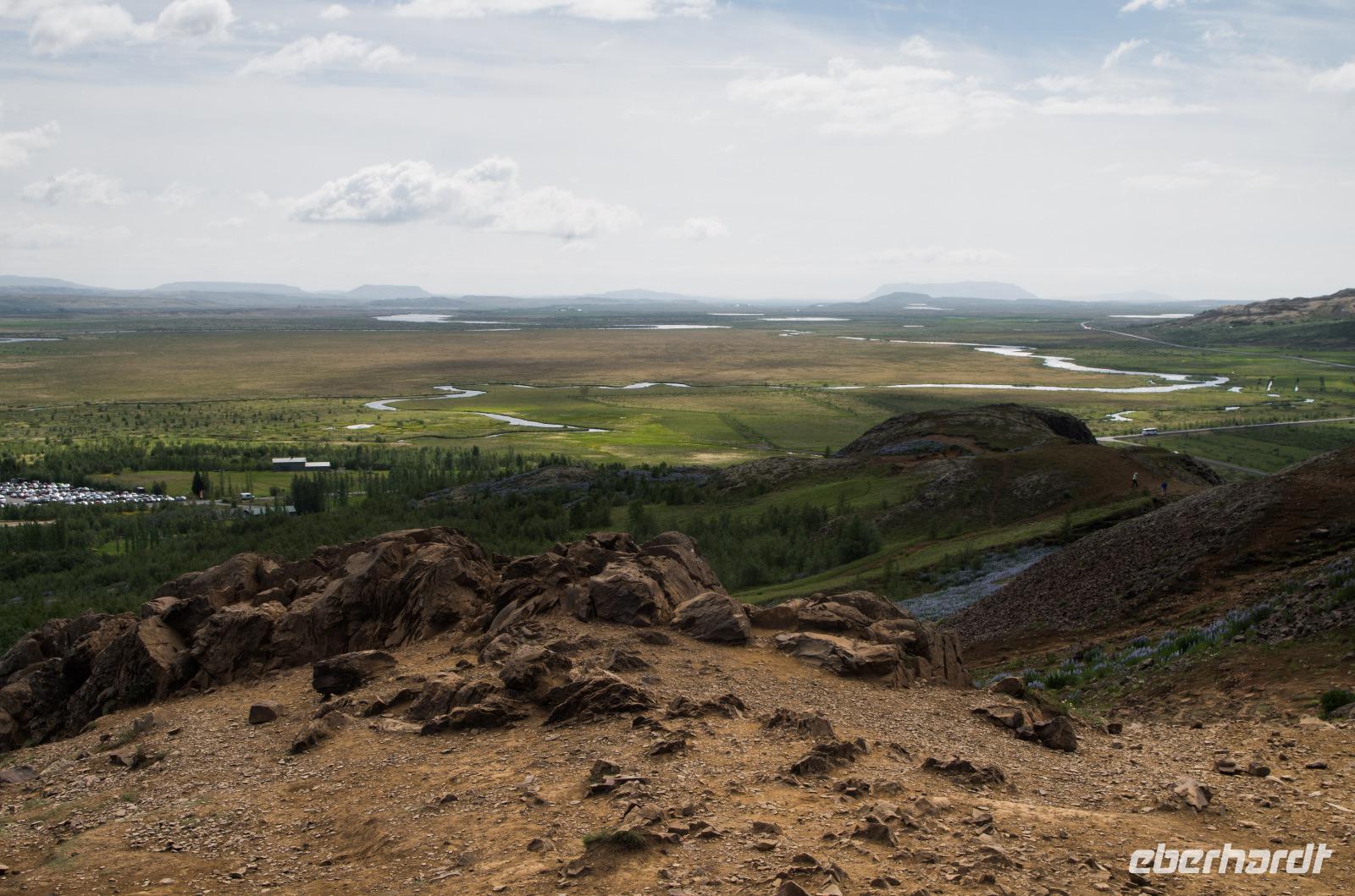 Bei Sonnenschein und warmen 14°Celsius zeigte sich die isländische Hauptstadt von ihrer besten Seite. Bis auf 4 Gäste machte sich die gesamte Eberhardt-Reisegruppe am Vormittag auf den Weg zu einer spannenden Entdeckertour in das Landesinnere. Unsere Reiseleiterin Kolfinna ist eine echte Isländerin. Die Liebe zu ihrem Heimatland lässt sie nicht los, denn obwohl sie seit einigen Jahren schon als Journalistin in Brüssel tätig ist, kommt sie doch immer wieder gern in ihre Heimat zurück und führt Gäste zu den schönsten Plätzen der Insel. So wusste sie uns viel Interessantes über die Geschichte ihres Landes, angefangen von den Wikingern bis zu den neuesten politischen, kulturellen und wirtschaftlichen Entwicklungen des Landes zu berichten. Auf dem Weg zum Thingvellir Nationalpark erfuhren wir vom ersten Parlament der Welt, Althing, welches aus Abgeordneten der verschiedenen Wikingerfamilien bestand, die sich für 2 Wochen jeden Sommer hier im heutigen Thingvellir Nationalpark trafen, um die Geschicke ihres Volkes zu besprechen und Gericht zu halten. Der Versammlungsort befindet sich im sogenannten Niemandsland, dem Gebiet zwischen der eurasischen und nordamerikanischen Erdplatte. Überhaupt ist die Insel durch diesen Umstand ein Paradies für alle Geologen, Physiker und Biologen. Denn nichts hat die Insel mehr geprägt als ihre Lage auf den beiden jährlich um 2 Zentimeter auseinanderdriftenden Erdplatten.
