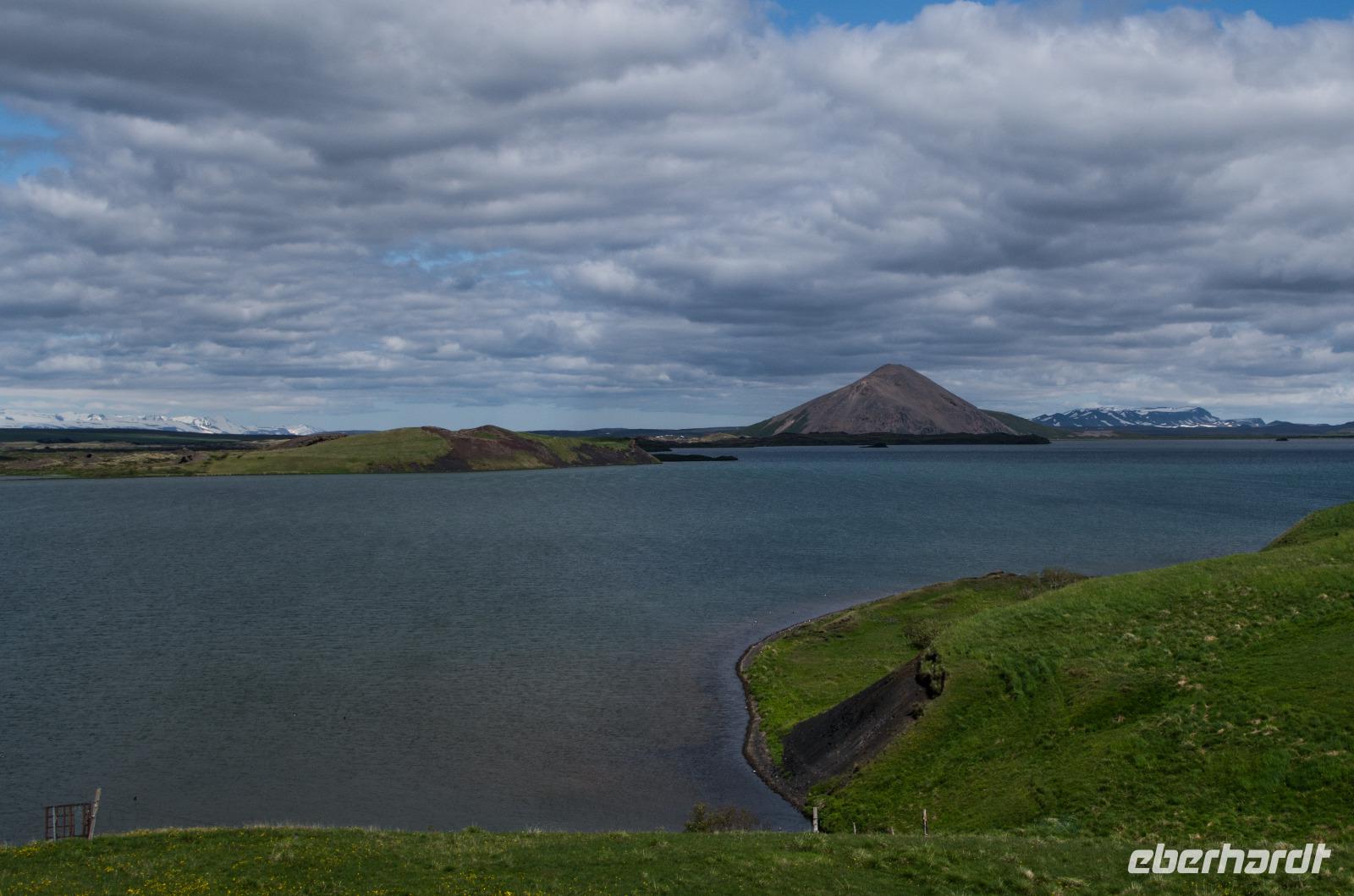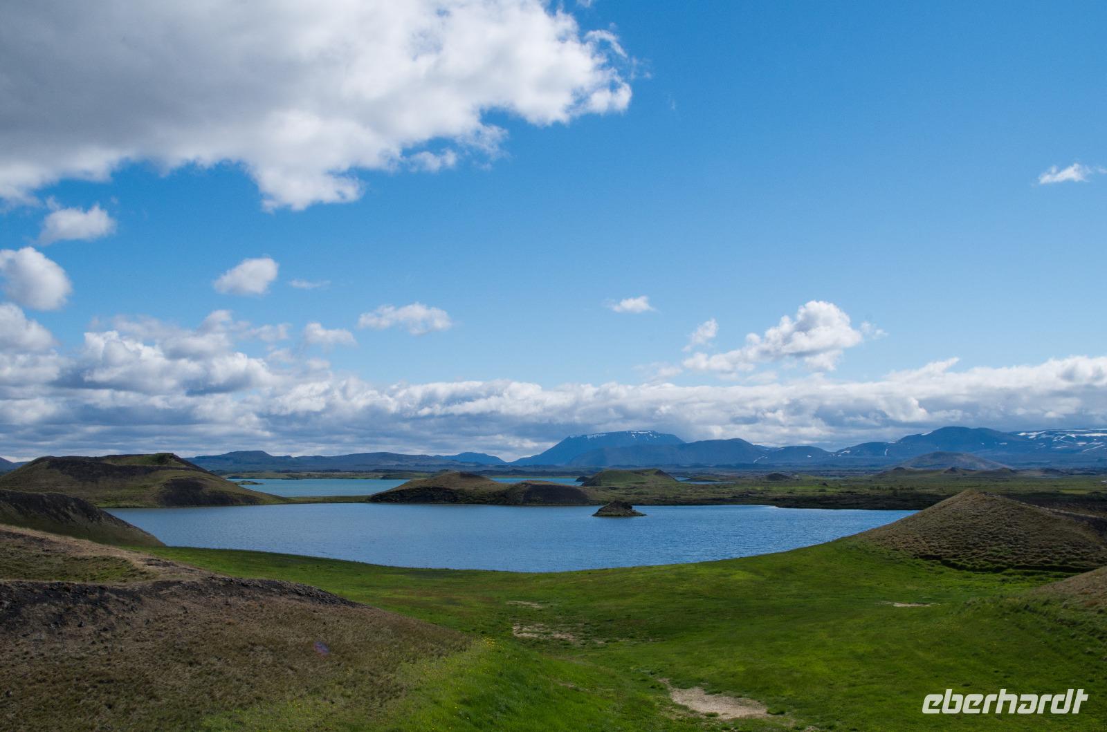 Zunächst fahren wir zum sagenumwobenen Godafoss - dem Wasserfall der Götter. Walter berichtet uns von Porgeir, einem Gode, der unter den Seinen großes Ansehen genoss und im Jahre 1000 auserwählt wurde zu entscheiden, ob die Isländer zukünftig dem christlichen Gott oder ihren heidnischen Göttern folgen sollten. Zur großen Überraschung vieler beschloss er, als Teil der alten Priesterkaste, die Übernahme des Christentums als Staatsreligion. Vielleicht fürchtete Porgeir das angedrohte Holzembargo des norwegischen Königs Olaf - sollten die Isländer Heiden bleiben - mehr als den Zorn seiner eigenen Götter? Zur Untermauerung seiner Entscheidung warf er alle seine heidnischen Götterbilder den Wasserfall hinunter, der seit dieser Zeit den Namen Godafoss, der Götterwasserfall, trägt. Obgleich nur 12 Meter hoch, beeindruckt der Götterwasserfall durch seine gewaltigen Wassermassen, die am Rande des Lavastromes Frambruni, welcher sich vor rund 8000 Jahren aus dem Vulkan Trölladyngja ergoss, in die Tiefe stürzen. Nach einem kurzen Spaziergang fahren wir weiter durch eine faszinierende Landschaft von vielfarbigen Lavafeldern. Auf dem Weg erklärt uns Walter das Phänomen der Pseudokrater, die eben keine Vulkankrater sind, sondern durch phreatische Explosionen, die beim Aufeinandertreffen der strömenden Lava mit dem hohen Wassergehalt des sumpfigen Bodens ausgelöst wurden - eine wahrhaft außerirdische Vorstellung. Besonders beeindruckende Exemplare bewundern wir beim Örtchen Skutustadir am Myvatn See. Trotz des Namens plagen uns keine Mückenschwärme und wir können ungestört die beeindruckende Landschaft in unser fotografisches Gedächtnis aufnehmen.