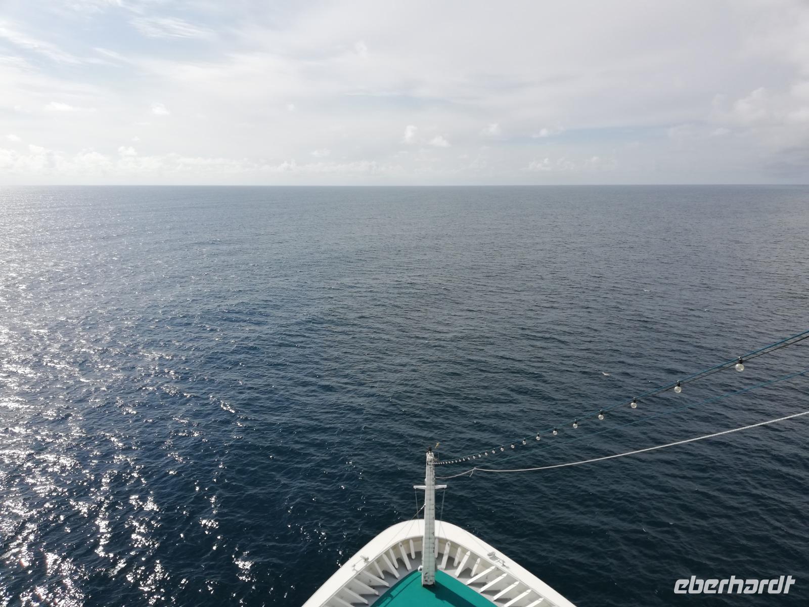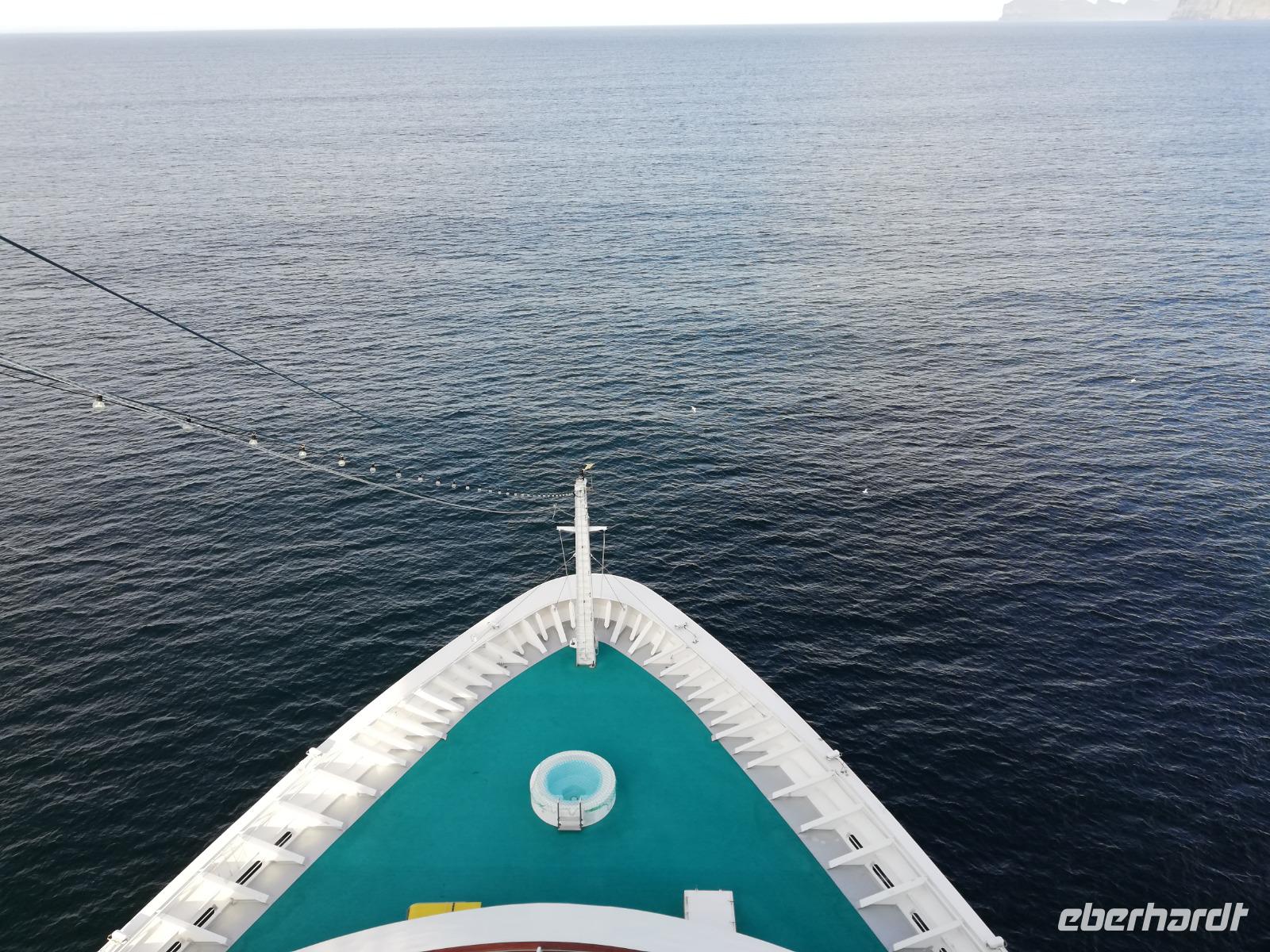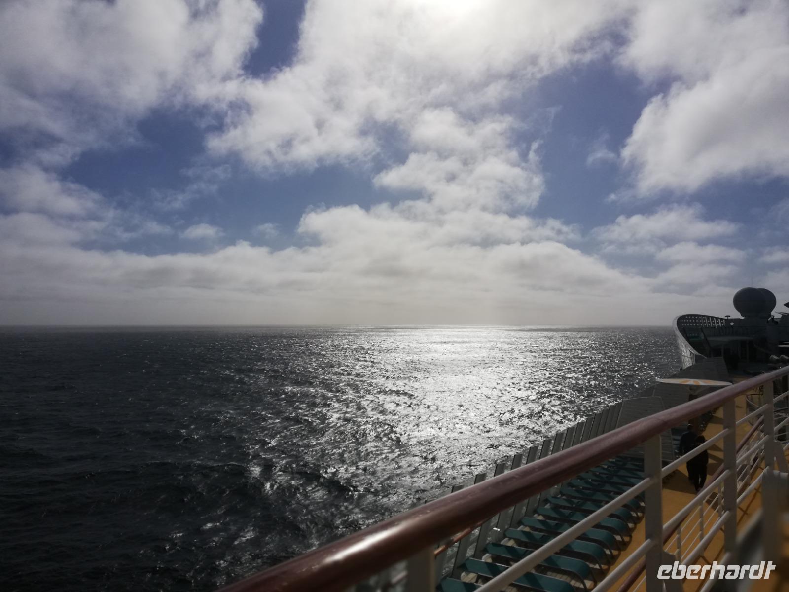 Der 2. See Tag empfängt uns mit ca. 3 Meter hohen Wellen. Leicht schwankend sind wir am Morgen unterwegs. Gegen Mittag beruhigt sich die See und wir genießen das Bordleben. Verschiedene Workshops, Vorträge und Spaziergänge an Deck warten auf uns.