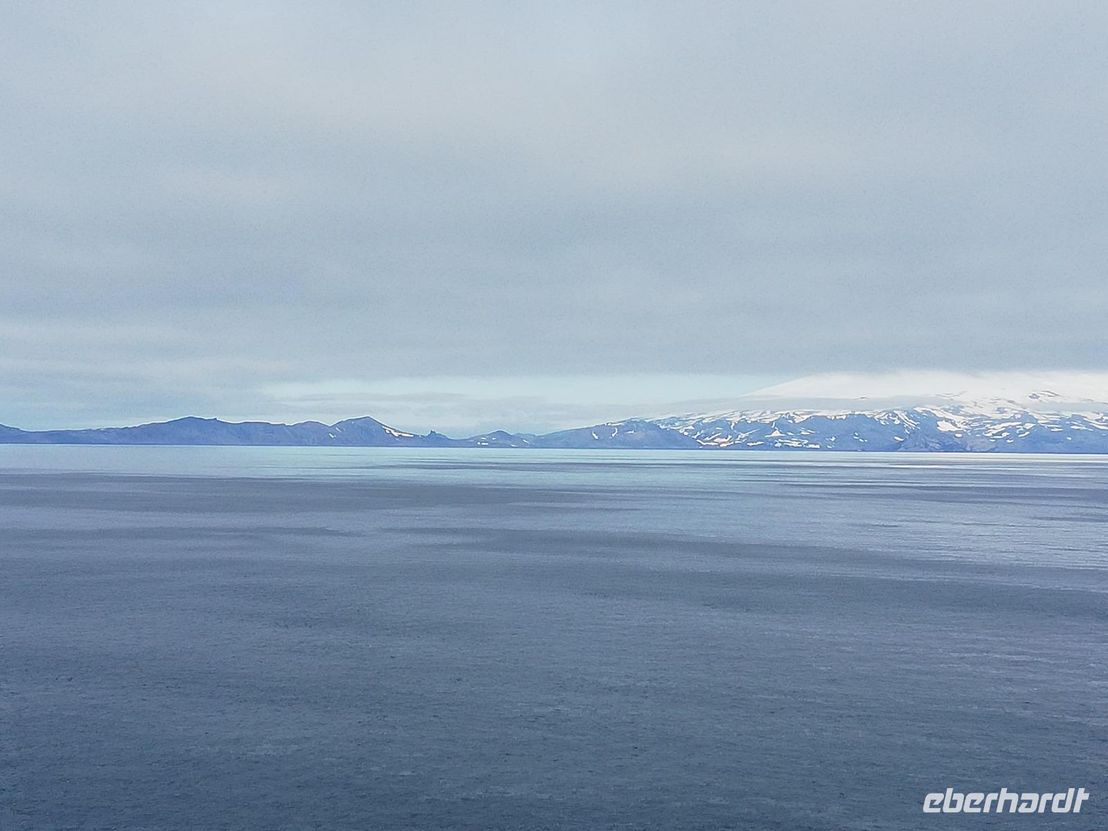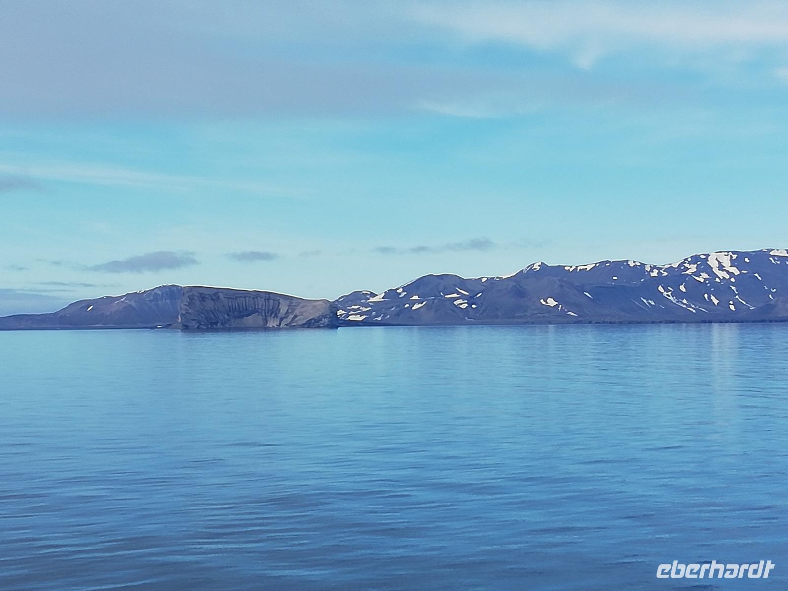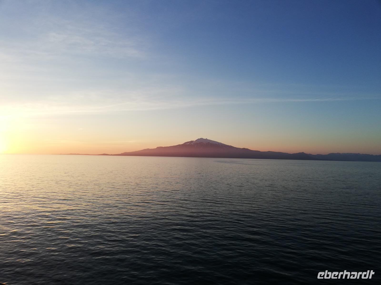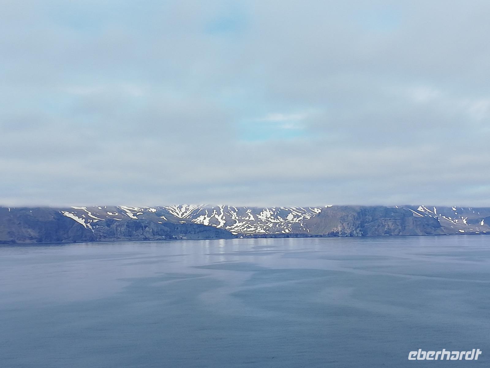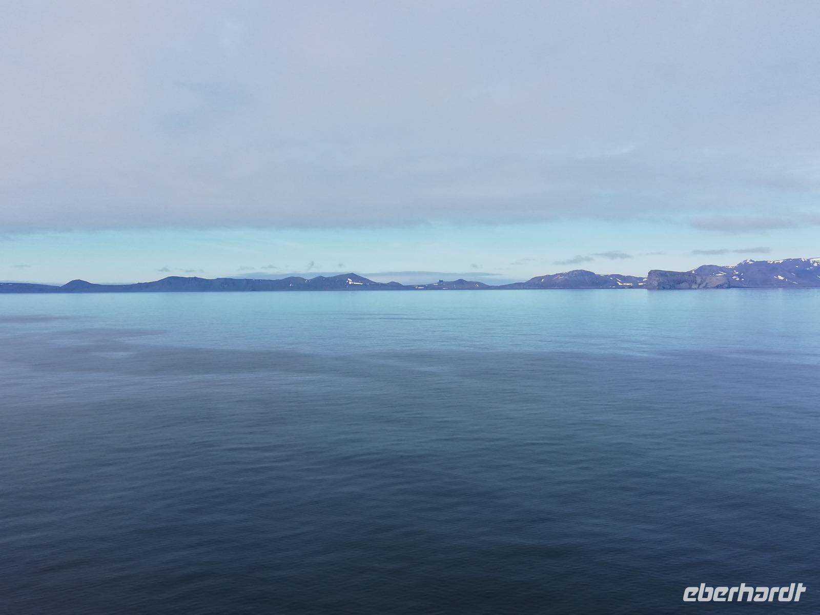 Nach so vielen Erlebnissen kommen die folgenden 2 See-Tage genau richtig. Nach dem Frühstück schauen wir hinter die Kulissen. Während einer Küchenführung erfahren wir viele Dinge über die Abläufe in den Küchen. Ab nun wissen wir es noch mehr zu schätzen, wenn wir uns zu den Mahlzeiten verwöhnen lassen. Bei ca. null Grad Celsius stecken wir die Nasen in den Wind und halten das Gesicht in die Sonne. Herrlich. Sogar die Insel „Jan Mayen" liegt auf unserem Weg und wir können dies bei bester Sicht beobachten. Wir vertreiben uns den Tag mit dem Angebot des Bordlebens, natürlich immer mit dem Blick auf das Meer um einen Wal zu erspähen. Einigen ist dies sogar gelungen.