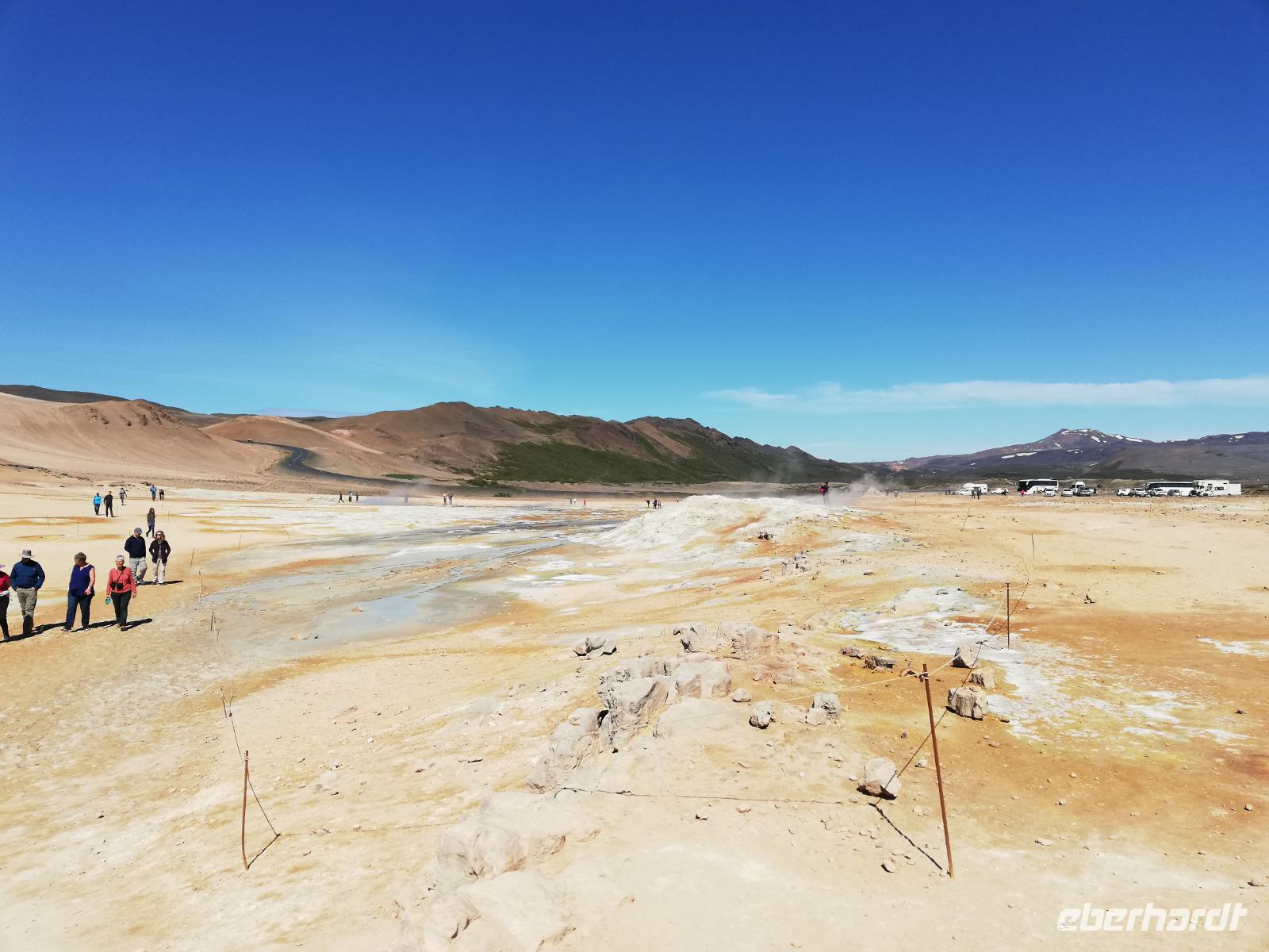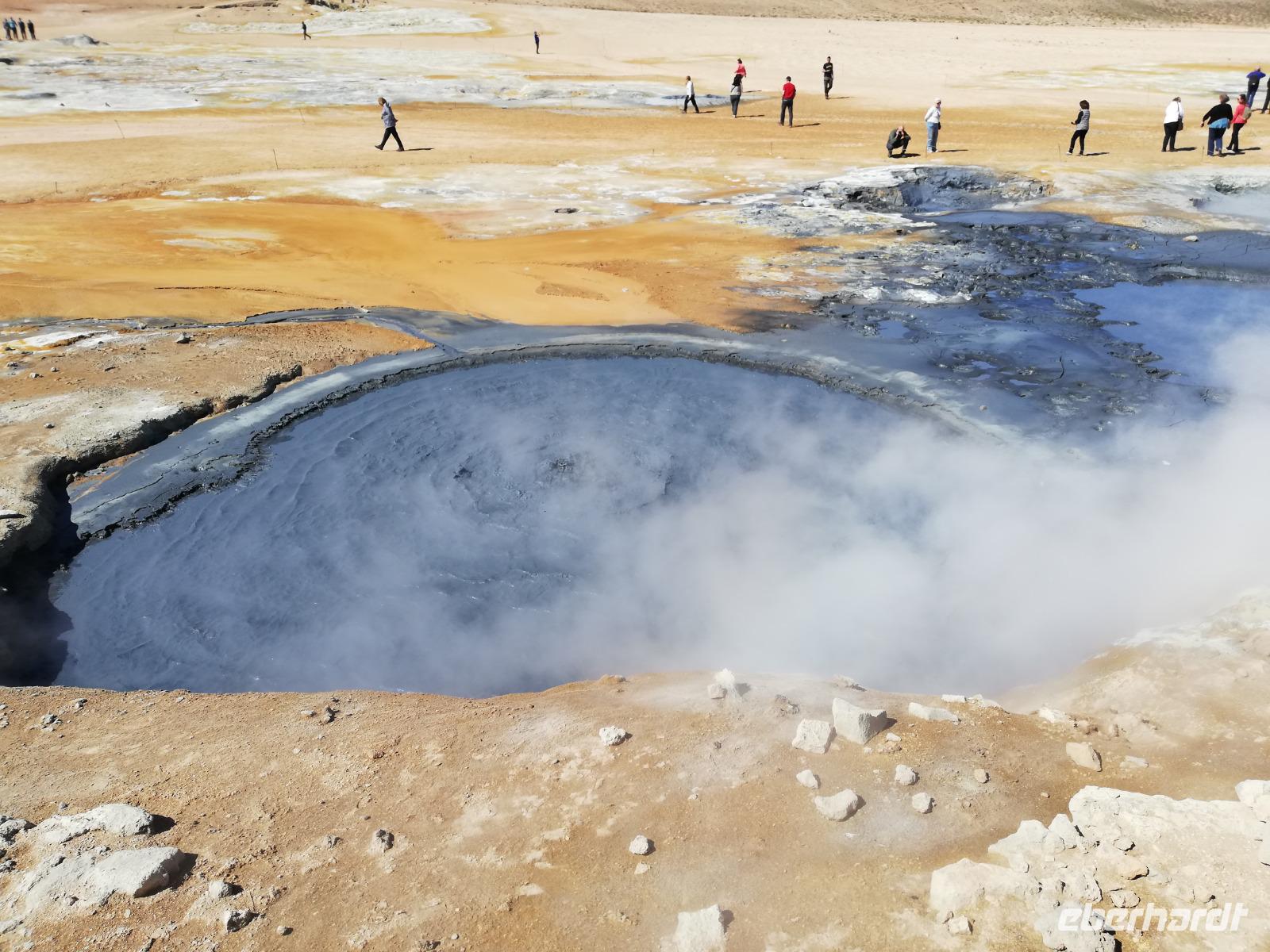 Bevor es weitere 977 Seemeilen (1.809 Kilometer) bis Longyearbyen (Spitzbergen) geht, legen wir in der zweitgrößten Stadt Islands an. Akureyri ist die viertgrößte Stadt des Nordens und gilt demnach auch als die „Perle des Nordens". Die bezaubernde Lage in einer imposanten Berglandschaft und am malerischen Eyafjördur, kann dies nur bestätigen. Bei unserem Ausflug fahren wir zunächst zum sagenumwobenen Götterwasserfall „Godafoss". Wieder lässt uns das Wetter nicht im Stich und er erstrahlt in voller Pracht. Unser Weg führt uns zum See „Myvatn", dessen östliches Ufer der interaktive Vulkan Hverfell überragt, während seine nordwestliche zehntausenden Vögeln Nistplätze bietet. Bei einem kleinen Spaziergang machen wir die Bekanntschaft der dort lebenden Mücken. Sie sind zwar etwas lästig, jedoch werden wir nicht von ihnen gestochen. Im Lava-Labyrinth in Dimmuborgier entdecken wir bizarre Landschaften und sogar sich küssende Trolle. Eine kleine Mittagspause sei uns auch heute gegönnt. Anschließend geht es zum Geothermalgebiet. Hier begegnet uns der Duft von Island. Die vor sich hin köchelnden Schlammquellen geben einen stark schwefligen Geruch ab. Die Farben dieser Region sind besonders beeindruckend. Am Nachmittag erreichen wir wieder Akureyri. Bevor es jedoch wieder an Bord geht, besuchen wir den Botanischen Garten. Diese Vielfalt hätten wir auf Island nicht erwartet. Noch ein Bild von der Herz-Ampel, welche es nur in Akureyri gibt schon sind wir wieder an Bord. Wir nehmen uns Zeit um das Auslaufen aus diesem wunderschönen Hafen zu betrachten. Es dauert jedoch nicht lang und wir bemerken schnell, dass wir nun in Richtung Polarkreis unterwegs sind. Das Wetter schlägt schlagartig um und von der Sonne ist nichts mehr zu sehen. Um 20:30 Uhr springen wir gemeinsam über den Polarkreis und sind schon gespannt was uns erwartet. Prost heißt es bei Glühwein oder heißer Schokolade auf Deck 11.