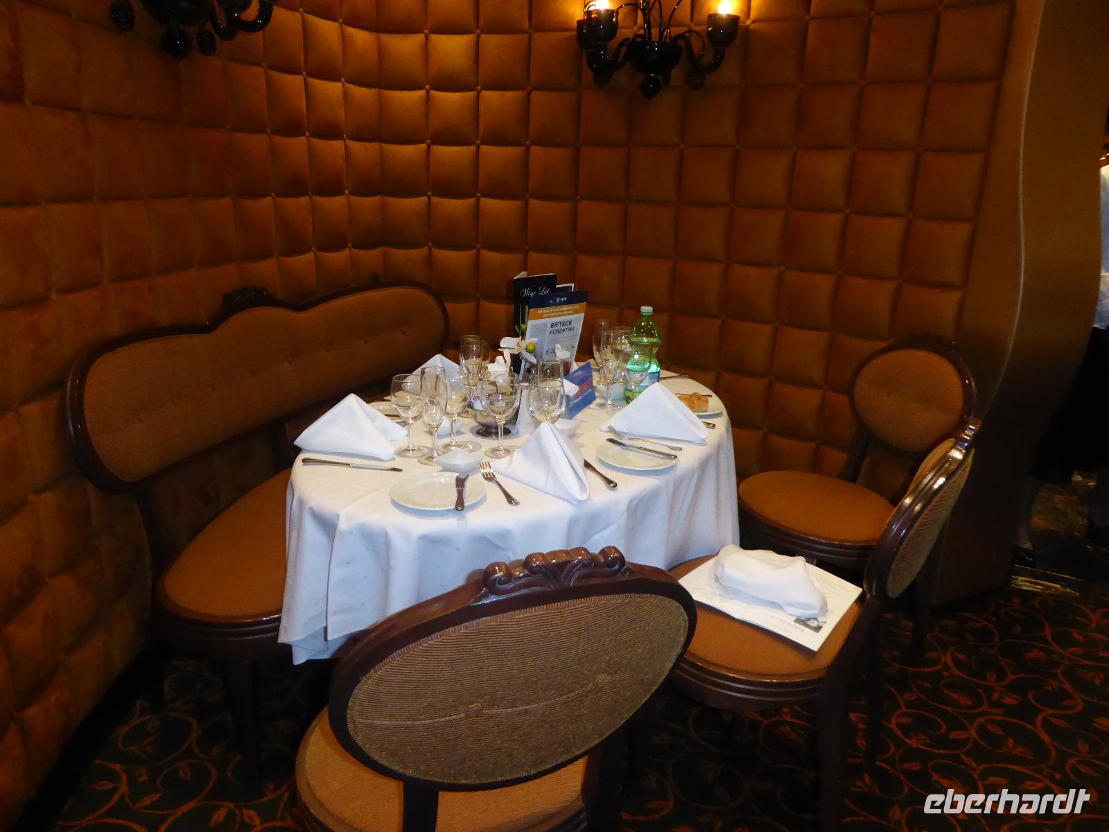 Wer will, kann ausschlafen. Nichts drängt. Frühstück gibt es für Frühaufsteher ab sechs und für die anderen bis halb elf. Wir können uns entweder bedienen lassen (dafür benötigt man allerdings Geduld wie Kaugummi) oder uns am Buffet Deck 14 selbst bedienen. Es ist voll, aber irgendwo findet sich immer ein Plätzchen. Im Tagesprogramm stehen die Aktivitäten an Bord. Auch wann es wo etwas zu essen gibt, ist dem Tagesprogramm zu entnehmen. Unser erster gemeinsamer Termin ist 14.00 Uhr im Club 33 bzw. der Disco. Diesen Raum ausfindig zu machen, ist bereits eine Herausforderung. Doch wer will, meistert auch diese. In lockerer Runde sitzen wir zusammen und besprechen was es zu besprechen gibt. Waren alle zur Gesichtskontrolle? Diese ist erforderlich, weil wir den Schengen-Raum verlassen. Jeder, aber auch jeder, muss sich im Tex Mex Restaurant mit Cruisecard und Ausweis oder Pass der Einreisebehörde vorstellen. Viertel vier holt uns Angela, die deutsche Hostess, zur Schiffsbesichtigung ab. Interessant ist diese vor allem deshalb, weil Angela uns nicht nur verschiedene Bereiche des Schiffes zeigt, sondern auch viele Hintergrundinformationen gibt. Seit dreihundert Jahren sind die Eigner der MSC im Schifffahrtsgeschäft. 1300 Mitarbeiter sind an Bord. Sie arbeiten 6 Monate, 7 Tage am Stück, 11 Stunden am Tag. Der Admiralsclub ist für ca. 200 Gäste, die diesen Komfort extra bezahlen. Am Theater endet die Führung. Heute ist Gala angesagt. Ab 17.15 Uhr gibt es in allen Bars auf Deck 5,6 und 7 Cocktails. Das Abendessen im Restaurant beginnt 17.45 Uhr. Ab 20.15 Uhr kann, wer will, dem Kapitän die Hand schütteln und sich mit ihm fotografieren lassen. Anschließend werden die Offiziere im Theater vorgestellt und es gibt eine wunderbare Eröffnungsshow.