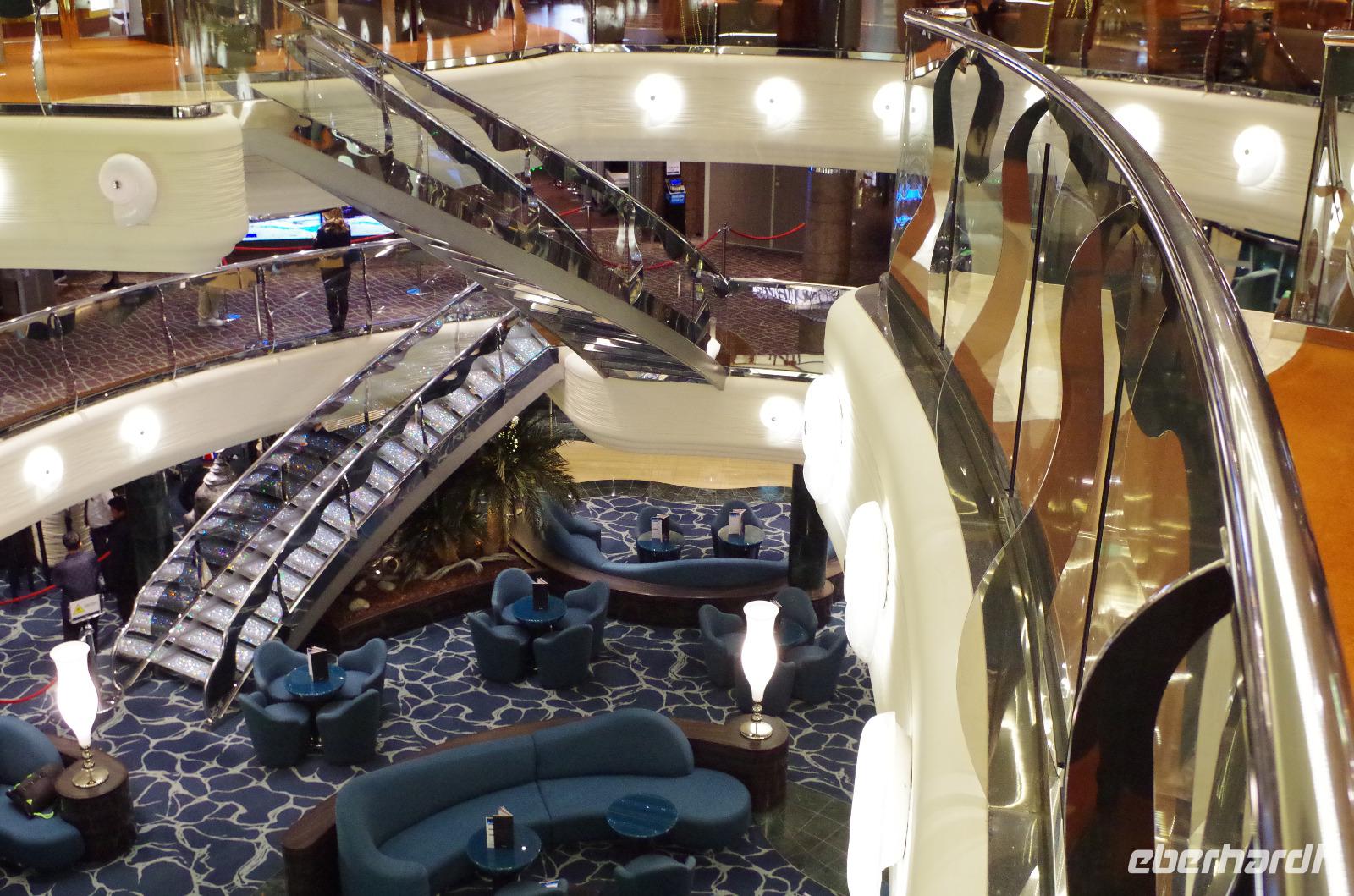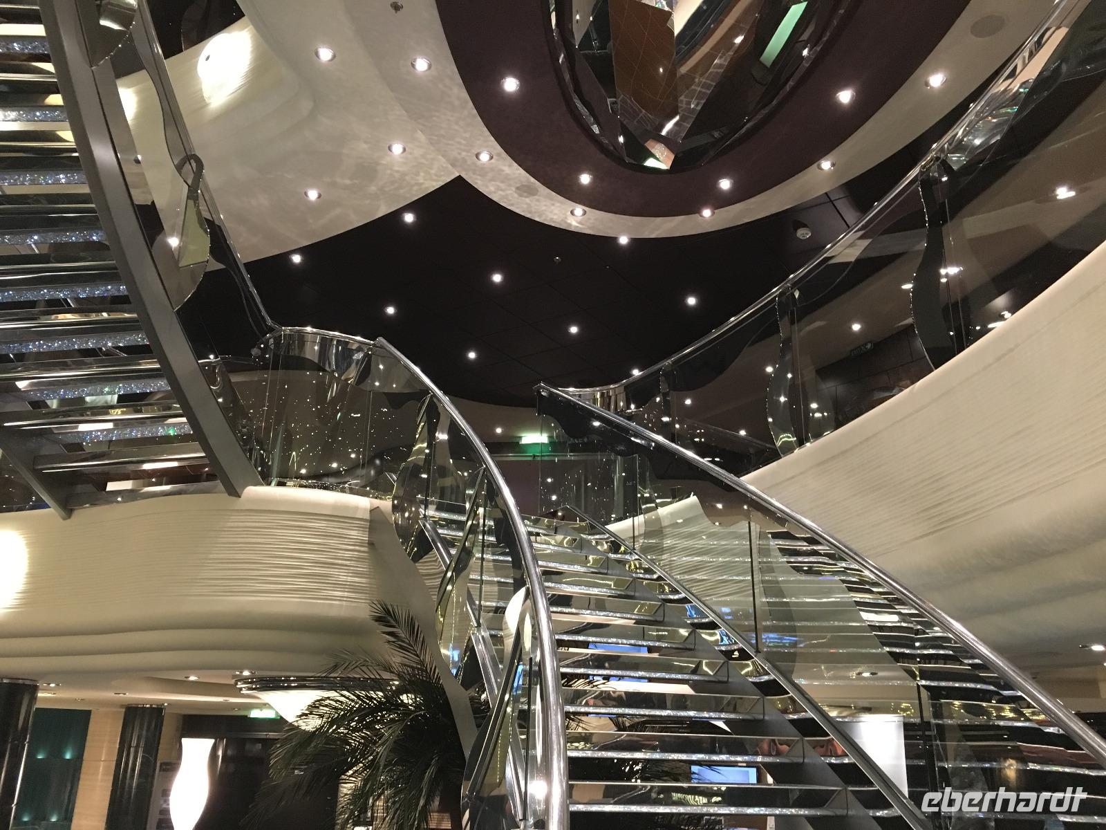 Heute genießen wir einen letzten entspannten Tag auf See, bevor es morgen schon "Auf Wiedersehen" heißt. Es ist leicht bewölkt bei 9 bis 15 Grad. In der Nacht sind abermals unsere Uhren um eine Stunde vorzustellen. Ab 06.00 Uhr besteht bereits die Möglichkeit, ein leckeres Frühstück im Buffet-Restaurant "Inca & Maya" einzunehmen. Im Hauptrestaurant "The Golden Lobster" ist dies ab 07.30 Uhr möglich. Auf dem Weg nach Kirkwall ist das Frühshoppen mit bayrischen Köstlichkeiten aufgrund der stürmischen See abgesagt worden. Dies wird heute nachgeholt. Es findet um 11.00 Uhr mit Musik von Duo 2 Memory im La Playa Preciosa auf Deck 14 statt. Anschließend können sich die Gäste um 11.30 Uhr die kulturhistorische Bildpräsentation zu "Hamburg: meine Perle" von Lektorin Christina Linger im Platinum Theatre auf Deck 6 anschauen. Zum Mittagessen ab 12.00 Uhr besteht die Wahl zwischen dem Buffet- und dem Hauptrestaurant. Für alle Kreuzfahrtgäste wird eine allgemeine Ausreiseinformation angeboten, welche für die Gäste von Eberhardt TRAVEL nicht relevant ist, da sie alle wichtigen Informationen durch die Reisebegleitung erhalten. Für diese "private" Informationsveranstaltung haben die Gäste in der vergangenen Nacht eine persönliche Einladung erhalten. Wir treffen uns um 14.00 Uhr im für uns bereits bekannten Seminarraum "Sky & Stars" auf Deck 16. Zuerst werden den Gästen die wichtigen Ausreiseinformationen sowie der Treffpunkt um 09.00 Uhr im Theater mitgeteilt. Jeder Gast erhält zudem ein blaues Kofferband, auf denen die Kabinennummer, der Name, eine Telefonnummer und die persönliche Anschrift zu hinterlegen sind. Morgen sind wir also die "BLAUEN" ;o) Nachdem alle notwendigen Formalitäten besprochen sind, wartet eine Überraschung auf alle Gäste. Eberhardt TRAVEL hat für die Gäste einen Abschiedstrunk organisiert. Wir stoßen zusammen mit Sekt oder Saft auf eine wunderschöne Reise an. Dazu werden uns Salzgebäck und Nüsse gereicht. Als "köstliche" kleine Erinnerung an eine tolle Reise überreicht die Reisebegleitung zudem landestypische Orangenmarmelade mit ein wenig Whiskey an die Reisegäste. Zum Schluss entsteht noch ein schönes Gruppenfoto auf einer der mit Swarovski-Kristallsteinen besetzten Treppen. Wer gern noch "einen Blick hinter die Kulissen" werfen möchte, schaut um 15.00 Uhr beim Vortrag "Die Brücke, der Maschinenraum und die Bordküche" vom International Host Nils im Platinum Theatre auf Deck 6 vorbei. Unser letztes gemeinsames Abendessen an Bord der MSC Preziosa verbringen wir zur gewohnten Uhrzeit im "The Golden Lobster". Es entstehen zudem schön Tischfotos von den Gästen und auch gemeinsame Fotos mit unseren charmanten Kellnern, von welchen wir uns an diesem Abend ebenso verabschieden müssen. Nach dem Essen findet um 21.00 Uhr die Show "Starwalker" im Platinum Theatre und um 22.30 Uhr die "Flower Glory Party" in der Safari Lounge auf Deck 7 statt. Einige Gäste verabschieden sich direkt nach dem Abendessen, um eventuell noch die letzten Kleidungsstücke in den Koffer zu verstauen. Bis spätestens 01.00 Uhr in der Nacht sind die gepackten Koffer vor die Kabinentür zu stellen. Wir wünschen eine schöne Nacht und angenehme Träume.