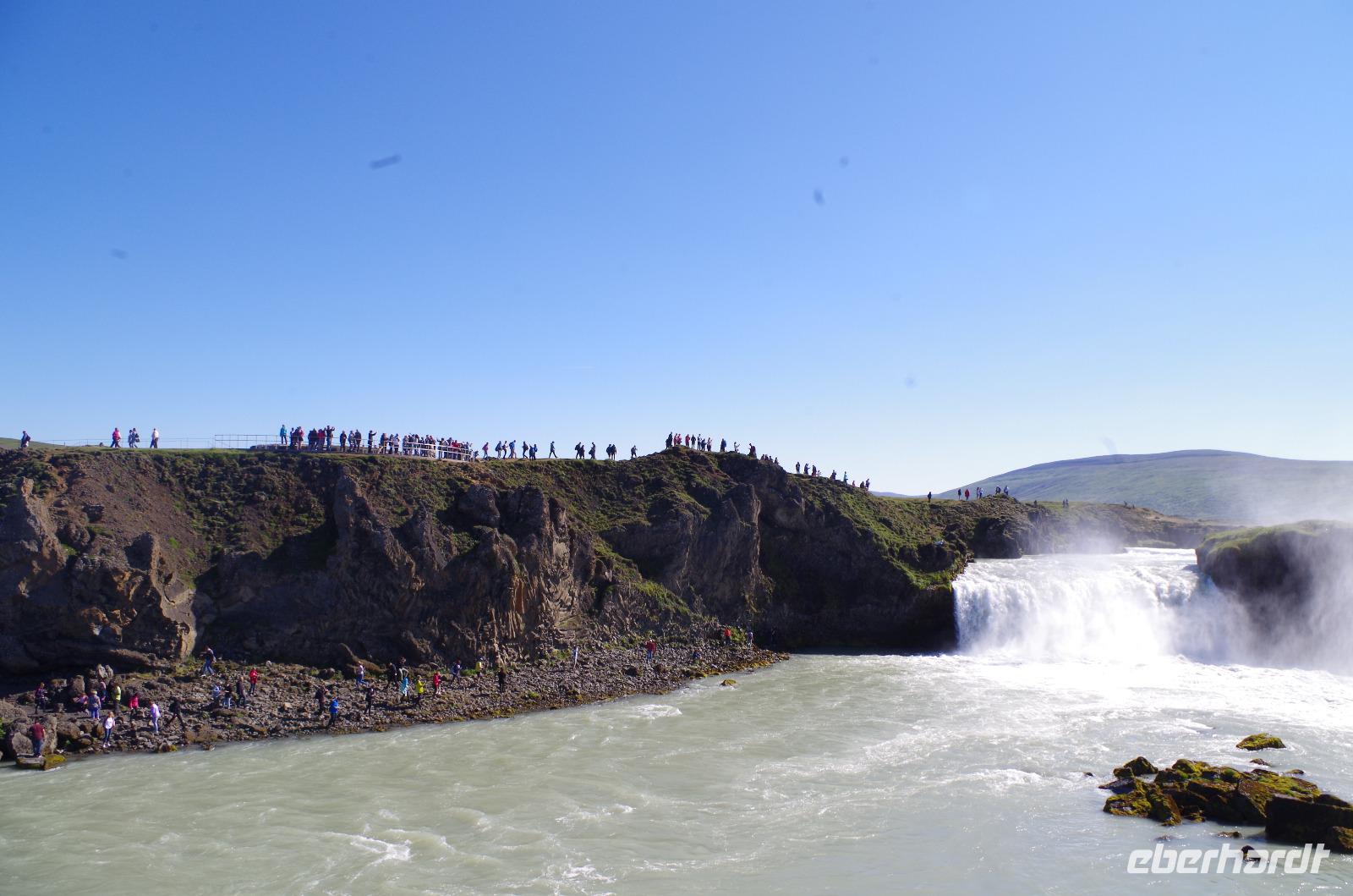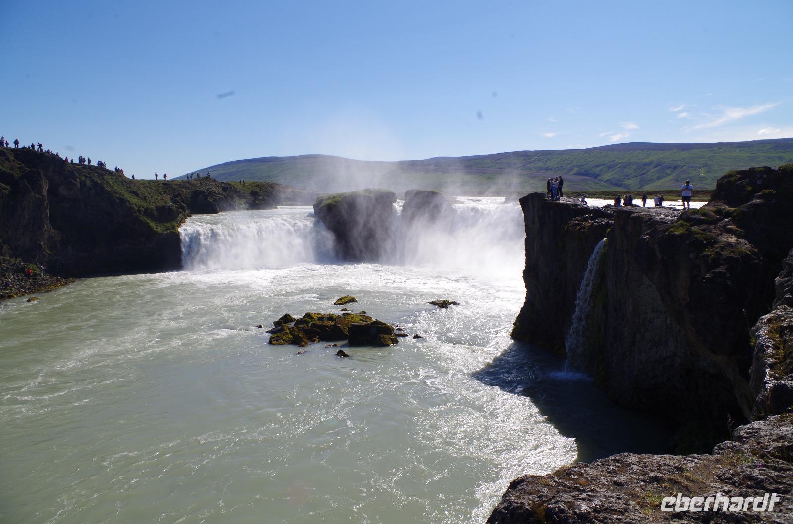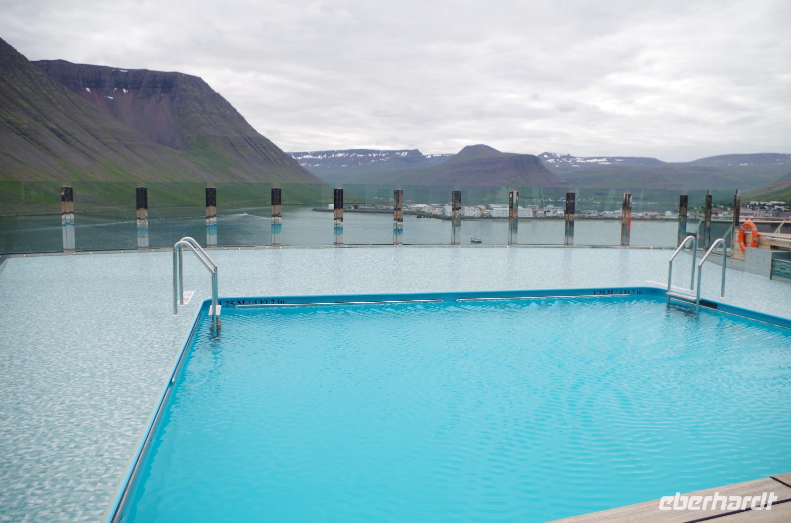 Auf einen Tag der Entspannung folgen drei spannende Ausflugstage in Island. Heute erreichen wir Akureyri, die "Hauptstadt von Nordisland" mit rund 17.304 Einwohnern. Sie ist nach Reykjavík die zweitgrößte Stadt Islands und wichtiges Fischereizentrum. Bereits ab 06.00 Uhr besteht die Möglichkeit, im Buffet-Restaurant zu frühstücken, um 07.30 Uhr dann auch im "The Golden Lobster". Wir haben wunderbaren Sonnenschein und blauen Himmel. Mit 15 bis 19 Grad ist es für isländische Verhältnisse schon sehr warm. Für den Landgang ist die Mitnahme der Bordkarte ausreichend. In Island wird (fast) überall die Kreditkarte akzeptiert, vereinzelt kann auch mit Euro bezahlt werden, das Rückgabegeld ist dann in der Landeswährung Isländische Kronen ISK. Der aktuelle Kurs liegt bei 1 Euro zu 115 ISK. Um 10.00 Uhr erreichen wir Akureyri. Zu den interessanten Unternehmungen in Akureyri und Umgebung zählt unter anderem der Besuch des Godafoss. Der "Götterwasserfall" besteht aus zwei Wasserfällen mit einer Höhe von sechs beziehungsweise zwölf Metern. Im Fischerstädtchen Húsavik befindet sich ein tolles Walmuseum mit vielen aufschlussreichen Auskünften zu den unterschiedlichen Walarten sowie auch eine kleine idyllische Holzkirche. Die Halbinsel Tjörnes ist ein Nationalpark mit der auffälligen Felsenschlucht Àsbyrgi. Das Besondere ist die Hufeisen-Form der Felsen, zu denen es mehrere Sagen gibt. Nicht weit von Akureyri entfernt liegt der See Mývatn sowie der Pseudokrater in Skútustaðir, welcher lediglich das Aussehen mit einem echten Krater gemeinsam hat. Empfehlenswert ist vielleicht auch der Besuch des Lava-Labyrinths in Dimmuborgir. Mithilfe der Wegweiser besteht keine Gefahr, sich im Labyrinth zu verlaufen. Beim Spaziergang können die verschiedenen Felsformationen bestaunt werden, welche mit viel Fantasie auch bestimmten Figuren ähneln sollen. Zudem ist das "Loch des 21. Dezembers" zu sehen. Seinen Namen hat dieses große Loch in einer Felswand daher erhalten, dass die Sonne nur am 21. Dezember komplett das ganze Loch ausfüllt. Für Entspannung und Erholung dient die kleinen Badelandschaft Jardbödin mit einem entspannten Bad im bis zu 40 Grad heißem Wasser. Spannend ist sicherlich auch das Hochtemperaturgebiet Námaskard mit seinen 70 bis 80 Grad kochenden Schlammquellen und Solfataren. Der nächstgelegene bekannte Wasserfall ist neben dem Godafoss der Dettifoss, dessen Größe und enorme Wasserkraft wirklich überwältigend ist. Unsere Gäste haben abermals unterschiedliche Ausflüge gebucht. Zu empfehlen sind AKU01 "Wasserfall der Götter und Laufas Museum", AKU02 "Godafoss Wasserfall und Besichtigung von Akureyri", AKU03 "Landschaftliche Reize im Norden", AKU04 "Myvatn Naturbäder" und AKU07 "Walsafari Húsavík". Für diejenigen Gäste, welche nicht die Möglichkeit gehabt haben, einen Ausflug in Akureyri an Bord zu buchen, bietet die Reisebegleitung an, individuell die Stadt zu besichtigen und eventuell mit einem örtlichen Reiseveranstalter zum Wasserfall Godafoss zu fahren. Wir treffen uns um 11.00 Uhr an der Rezeption auf Deck 5. Im Hafen angekommen warten bereits kleine Busse und Großraumtaxis auf die Touristen, der Preis für die Fahrt ist verhandelbar und kann auch in Euro bezahlt werden. Für einen Besuch am Morgen sind wir zu spät dran, so dass wir uns um 14.00 Uhr für eine Fahrt zum Godafoss verabreden. Die Stadt Akureyri ähnelt eher einer Kleinstadt im Vergleich zu deutschen Städten. Das Zentrum ist schnell erreicht. Wir besichtigen unter anderem die zwei Kirchen und spazieren durch den botanischen Garten. Das Mittagessen gönnen wir uns dann an Bord der MSC Preziosa. Gegen 14.00 Uhr treffen sich vier Reisegäste und eine Reisebegleitung im Hafen, um zum Godafoss zu fahren. Wir sind die einzigen Gäste am Nachmittag, also eine private Fahrt mit englischsprachigen Fahrer und zugleich Reiseführer ;-) Die Übersetzung erfolgt vorrangig durch die Reisebegleitung. Unterstützt wird sie netterweise durch einen Reisegast, welcher seine Englischkenntnisse verbessern möchte. Wir fahren rund 30 bis 45 Minuten zum Wasserfall. Am Godafoss angekommen haben wir rund 45 Minuten Zeit für eine individuelle Besichtigung dieses großartigen Wasserfalls. Wir können sogar einen kleinen Regebogen sehen. Danach fahren wir wieder zum Hafen zurück. Wer möchte, kann das kostenfreie WLAN direkt am Hafen nutzen. Die Gäste müssen sich lediglich mit ihrer E-Mail-Adresse anmelden. Am Abend treffen wir uns zur gewohnten Uhrzeit mit den anderen Reisegästen zum Essen und auch zum Austausch unserer spannenden Erlebnisse. Um 21.00 Uhr starten wir von Akureyri Richtung Ísafjörður. Am späten Abend findet die Show "Wonderland" im Theater statt. In der Safari Lounge um 22.45 Uhr können sich die Gäste den Tanzprofis MSC Preziosa International Dancers anschließen und beim Stardust-Wettbewerb ihre Tanzkünste vorführen. Wir freuen uns aber auch schon auf morgen, wenn wir die tolle Kleinstadt Ísafjörður besuchen werden. Nun liegt aber noch eine Fahrt von rund 186 Seemeilen vor uns.