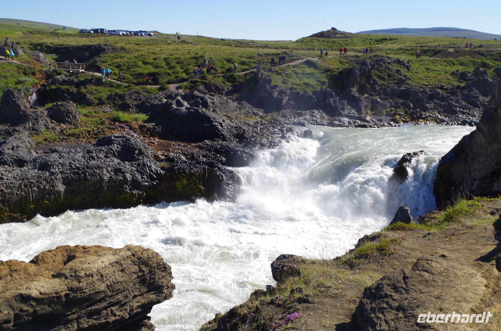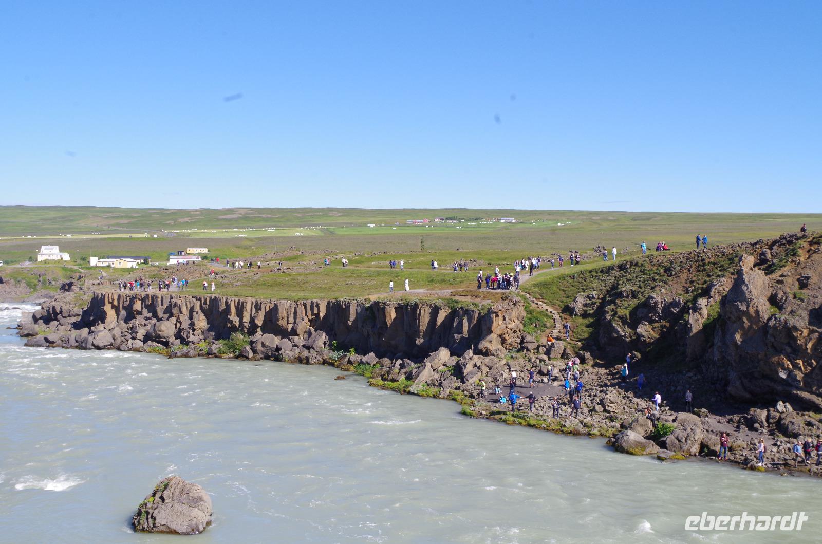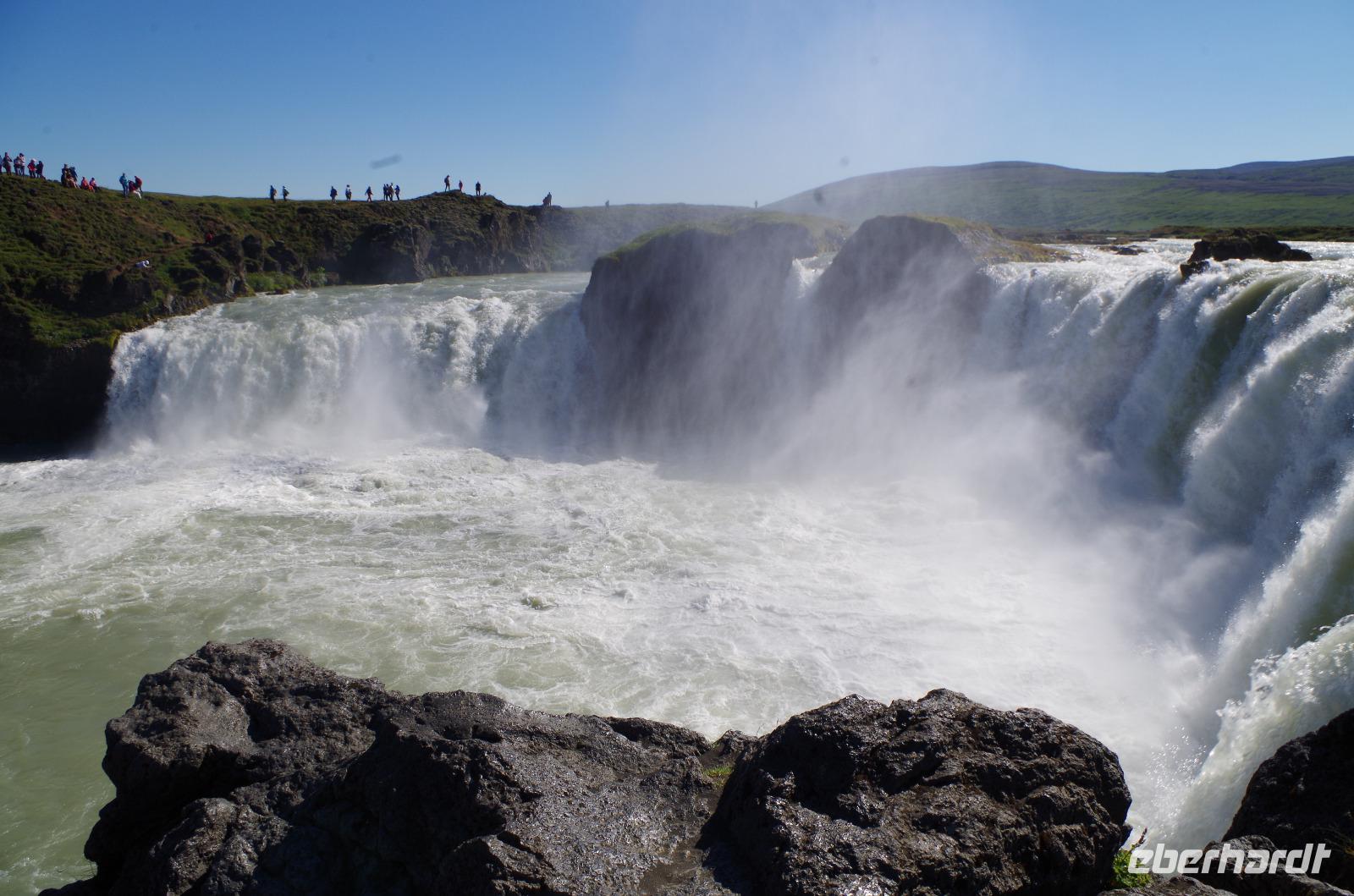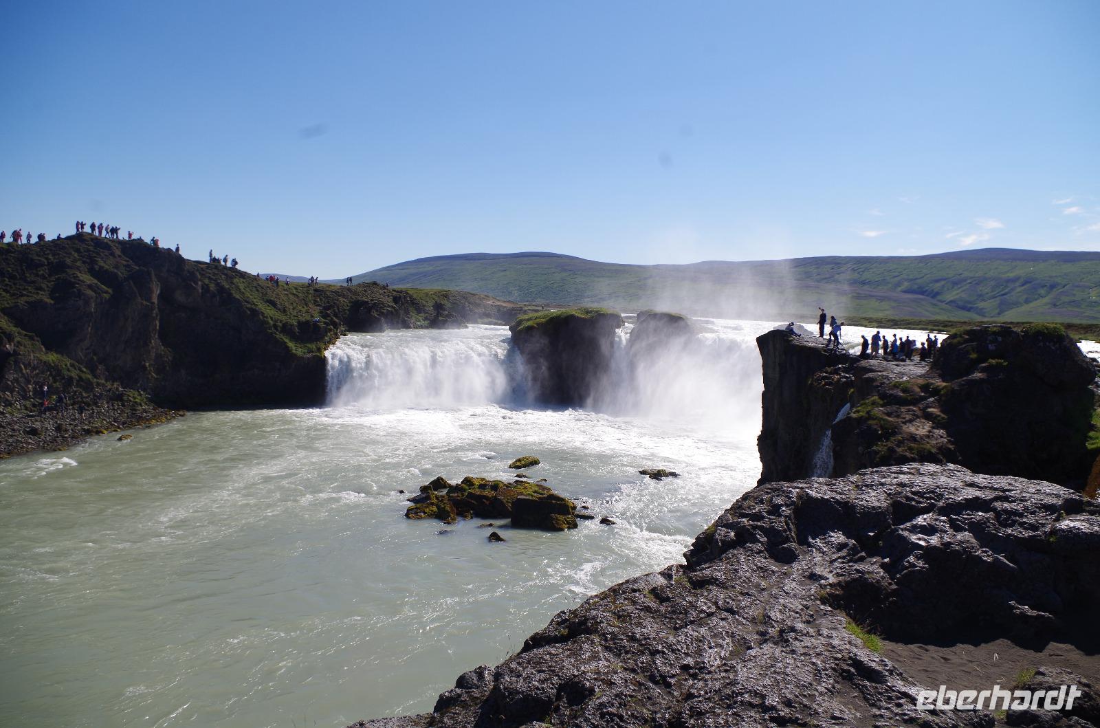 Auf einen Tag der Entspannung folgen drei spannende Ausflugstage in Island. Heute erreichen wir Akureyri, die "Hauptstadt von Nordisland" mit rund 17.304 Einwohnern. Sie ist nach Reykjavík die zweitgrößte Stadt Islands und wichtiges Fischereizentrum. Bereits ab 06.00 Uhr besteht die Möglichkeit, im Buffet-Restaurant zu frühstücken, um 07.30 Uhr dann auch im "The Golden Lobster". Wir haben wunderbaren Sonnenschein und blauen Himmel. Mit 15 bis 19 Grad ist es für isländische Verhältnisse schon sehr warm. Für den Landgang ist die Mitnahme der Bordkarte ausreichend. In Island wird (fast) überall die Kreditkarte akzeptiert, vereinzelt kann auch mit Euro bezahlt werden, das Rückgabegeld ist dann in der Landeswährung Isländische Kronen ISK. Der aktuelle Kurs liegt bei 1 Euro zu 115 ISK. Um 10.00 Uhr erreichen wir Akureyri. Zu den interessanten Unternehmungen in Akureyri und Umgebung zählt unter anderem der Besuch des Godafoss. Der "Götterwasserfall" besteht aus zwei Wasserfällen mit einer Höhe von sechs beziehungsweise zwölf Metern. Im Fischerstädtchen Húsavik befindet sich ein tolles Walmuseum mit vielen aufschlussreichen Auskünften zu den unterschiedlichen Walarten sowie auch eine kleine idyllische Holzkirche. Die Halbinsel Tjörnes ist ein Nationalpark mit der auffälligen Felsenschlucht Àsbyrgi. Das Besondere ist die Hufeisen-Form der Felsen, zu denen es mehrere Sagen gibt. Nicht weit von Akureyri entfernt liegt der See Mývatn sowie der Pseudokrater in Skútustaðir, welcher lediglich das Aussehen mit einem echten Krater gemeinsam hat. Empfehlenswert ist vielleicht auch der Besuch des Lava-Labyrinths in Dimmuborgir. Mithilfe der Wegweiser besteht keine Gefahr, sich im Labyrinth zu verlaufen. Beim Spaziergang können die verschiedenen Felsformationen bestaunt werden, welche mit viel Fantasie auch bestimmten Figuren ähneln sollen. Zudem ist das "Loch des 21. Dezembers" zu sehen. Seinen Namen hat dieses große Loch in einer Felswand daher erhalten, dass die Sonne nur am 21. Dezember komplett das ganze Loch ausfüllt. Für Entspannung und Erholung dient die kleinen Badelandschaft Jardbödin mit einem entspannten Bad im bis zu 40 Grad heißem Wasser. Spannend ist sicherlich auch das Hochtemperaturgebiet Námaskard mit seinen 70 bis 80 Grad kochenden Schlammquellen und Solfataren. Der nächstgelegene bekannte Wasserfall ist neben dem Godafoss der Dettifoss, dessen Größe und enorme Wasserkraft wirklich überwältigend ist. Unsere Gäste haben abermals unterschiedliche Ausflüge gebucht. Zu empfehlen sind AKU01 "Wasserfall der Götter und Laufas Museum", AKU02 "Godafoss Wasserfall und Besichtigung von Akureyri", AKU03 "Landschaftliche Reize im Norden", AKU04 "Myvatn Naturbäder" und AKU07 "Walsafari Húsavík". Für diejenigen Gäste, welche nicht die Möglichkeit gehabt haben, einen Ausflug in Akureyri an Bord zu buchen, bietet die Reisebegleitung an, individuell die Stadt zu besichtigen und eventuell mit einem örtlichen Reiseveranstalter zum Wasserfall Godafoss zu fahren. Wir treffen uns um 11.00 Uhr an der Rezeption auf Deck 5. Im Hafen angekommen warten bereits kleine Busse und Großraumtaxis auf die Touristen, der Preis für die Fahrt ist verhandelbar und kann auch in Euro bezahlt werden. Für einen Besuch am Morgen sind wir zu spät dran, so dass wir uns um 14.00 Uhr für eine Fahrt zum Godafoss verabreden. Die Stadt Akureyri ähnelt eher einer Kleinstadt im Vergleich zu deutschen Städten. Das Zentrum ist schnell erreicht. Wir besichtigen unter anderem die zwei Kirchen und spazieren durch den botanischen Garten. Das Mittagessen gönnen wir uns dann an Bord der MSC Preziosa. Gegen 14.00 Uhr treffen sich vier Reisegäste und eine Reisebegleitung im Hafen, um zum Godafoss zu fahren. Wir sind die einzigen Gäste am Nachmittag, also eine private Fahrt mit englischsprachigen Fahrer und zugleich Reiseführer ;-) Die Übersetzung erfolgt vorrangig durch die Reisebegleitung. Unterstützt wird sie netterweise durch einen Reisegast, welcher seine Englischkenntnisse verbessern möchte. Wir fahren rund 30 bis 45 Minuten zum Wasserfall. Am Godafoss angekommen haben wir rund 45 Minuten Zeit für eine individuelle Besichtigung dieses großartigen Wasserfalls. Wir können sogar einen kleinen Regebogen sehen. Danach fahren wir wieder zum Hafen zurück. Wer möchte, kann das kostenfreie WLAN direkt am Hafen nutzen. Die Gäste müssen sich lediglich mit ihrer E-Mail-Adresse anmelden. Am Abend treffen wir uns zur gewohnten Uhrzeit mit den anderen Reisegästen zum Essen und auch zum Austausch unserer spannenden Erlebnisse. Um 21.00 Uhr starten wir von Akureyri Richtung Ísafjörður. Am späten Abend findet die Show "Wonderland" im Theater statt. In der Safari Lounge um 22.45 Uhr können sich die Gäste den Tanzprofis MSC Preziosa International Dancers anschließen und beim Stardust-Wettbewerb ihre Tanzkünste vorführen. Wir freuen uns aber auch schon auf morgen, wenn wir die tolle Kleinstadt Ísafjörður besuchen werden. Nun liegt aber noch eine Fahrt von rund 186 Seemeilen vor uns.
