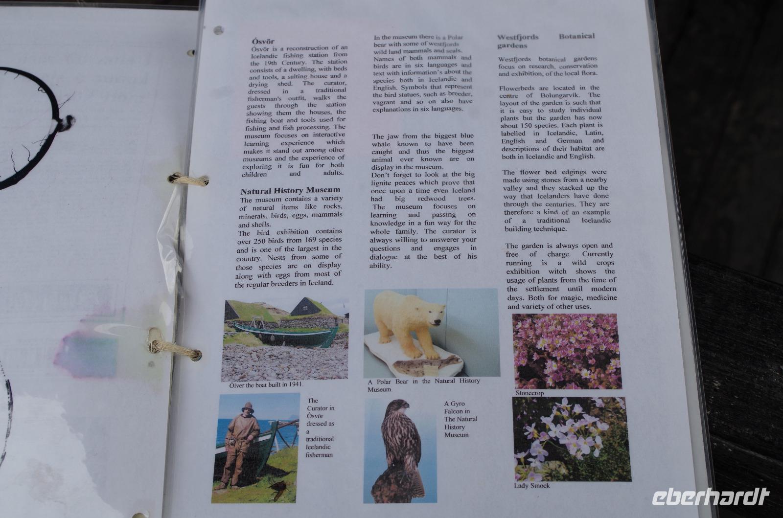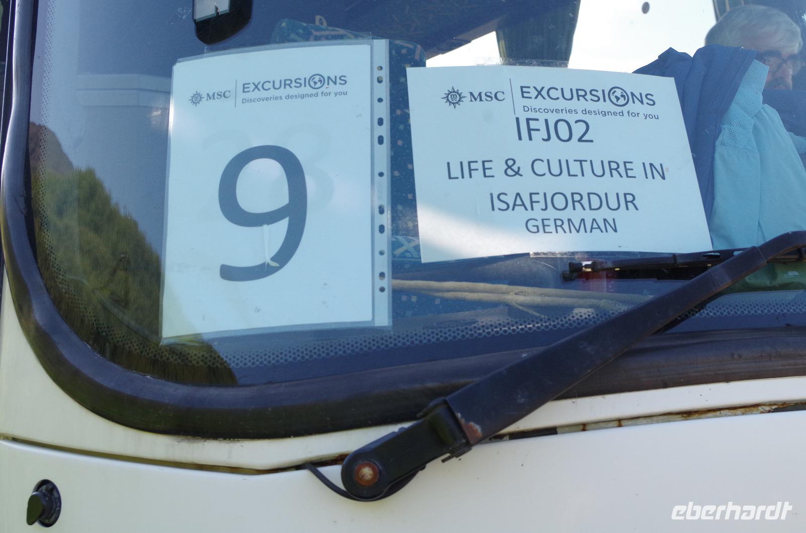 Ein neuer Tag beginnt, ein neues Abenteuer wartet auf uns :-) Es ist bewölkt bei rund 14 bis 19 Grad, die Sonne wird aber noch für uns scheinen. Für den Landgang benötigen wir lediglich unsere Bordkarte. Pünktlich um 08.00 Uhr erreichen wir Ísafjörður. Wir werden heute Tendern, das heißt, dass das Schiff nicht direkt im Hafen anlegen kann und wir so mit den Rettungsbooten zum Hafen gefahren werden. Eine Fahrt dauert rund zehn Minuten. Der Großteil der Gäste unternimmt am Vormittag einen von MSC durchgeführten Ausflug, abermals mit deutschsprachigen Reiseleitern :-) Zu empfehlen sind IFJ01 "Bootstour zur Insel Vigur", IFJ02 "Leben und Kultur in Ísafjörður", IFJ07 "Sinnliches Sudureyri", IFJ10 "Ísafjörður-Fjorde und Blumen" und IFJ11 "Thingeyri. Alte Traditionen und Kultur der Wikinger". Alle Ausflüge sind abermals mit deutschen Reiseführern! Um 08.15 Uhr treffen sich 7 Reisegäste und eine Reisebegleitung zum Ausflug IFJ02 "Leben und Kultur in Ísafjörður" im Platinum Theatre auf Deck 6. Es wird uns eine Busnummer zugewiesen und dann geht der Ausflug auch schon los :-) Wie bereits erwähnt werden wir heute Tendern. Im Rettungsboot mit bis zu 120 Personen fahren wir rund zehn Minuten zum Hafen in Ísafjörður. Unser heutige Reiseführerin heißt Teresa. Sie ist Deutsche und studiert in Ísafjörður zusammen mit 20 weiteren Studenten an der einzigen Universität der Stadt. Sie erzählt uns gleich zu Anfang, dass dieses Örtchen mit rund 2.000 Einwohnern eine Universität besitzt, in der sage und schreibe nur 21 Studenten eingeschrieben sind. Dies können wir gar nicht glauben, denn 21 Studenten umfasst bei uns in Deutschland eine Seminargruppe und nicht gleich eine ganze Universität! Wir sind schon ganz gespannt, was uns Teresa noch alles erzählen wird ;-) Während der Fahrt erhalten wir viele Informationen zu Island sowie der Kultur und dem Leben speziell in Ísafjörður. Zuerst legen wir einen Foto-Stopp am kleinen Wasserfall "Skutulsfjörður" ein. Hier gewährt uns Terese eine Kostprobe des sehr sauberen guten Wassers. Anschließend besuchen wir das Maritime Museum mit einer weiteren Kostprobe isländischer Spezialitäten. Wir können den landestypischen Kartoffelschnaps Brennivín, Trockenfisch oder eingelegten Hai probieren. Dann fahren wir weiter zum Fischerdorf Bolungarvik, wo wir zunächst die Alte Fischerhütte "Ósvor" besichtigen. Bevor wir zum Hafen zurückfahren, halten wir noch an der Kirche des Fischerdorfes an. Wir bestaunen die Kirche von Innen und hören uns zudem eine tolle Gesangseinlage einer jungen Isländerin an. Wirklich eine gelungene und interessante Tour mit einem netten Abschluss! Danach fahren wir im Bus zurück nach Ísafjörður. Gegen 12.00 Uhr sind wir wieder im Hafen. Um zur MSC zu gelangen, ist nun abermals das Tendern angesagt. Nachdem wir wieder an Bord sind, gönnen wir uns ein leckeres Mittagessen im Hauptrestaurant oder im Buffet-Restaurant. Am Nachmittag genießen wir die Annehmlichkeiten an Bord. Zum Abendessen zur gewohnten Uhrzeit im "The Golden Lobster" können wir unsere spannenden Erzählungen und großartigen Eindrücken austauschen. Das Schiff fährt gegen 19.00 Uhr weiter Richtung Reykjavík. Die Strecke beträgt 196 Seemeilen. Am Abend werden uns verschiedene Veranstaltungen geboten. Bereits um 19.45 Uhr können die Gäste in der Safari Lounge auf Deck 7 von den Tanzprofis Erica und Strahinja den Jive erlernen. Um 19.00 Uhr oder 21.00 Uhr wird die Show "Sogno Italiano" im Platinum Theatre gezeigt. Wer immer noch nicht genug hat, kann um 22.30 Uhr in der Safari Lounge zur Wikinger Nacht vorbeischauen! Die Hälfte unserer Kreuzfahrt ist zwar schon vorbei, aber es warten weitere tolle Erlebnisse in Reykjavík und Kirkwall auf uns :-)